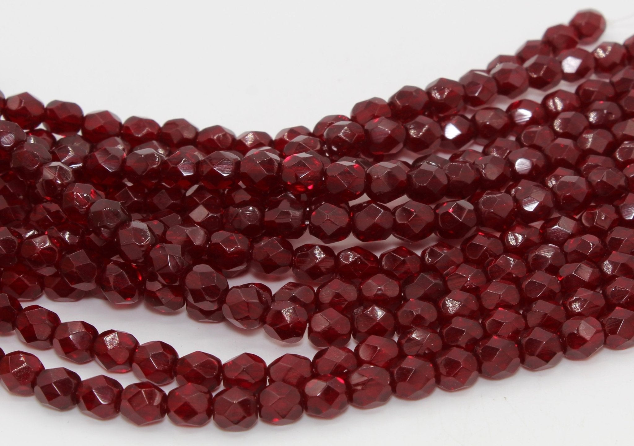 Fire polished beads are an inexpensive alternative to cut glass beads, and are used in a wide variety of projects such as strung necklaces and bracelets, in earrings and fringe.