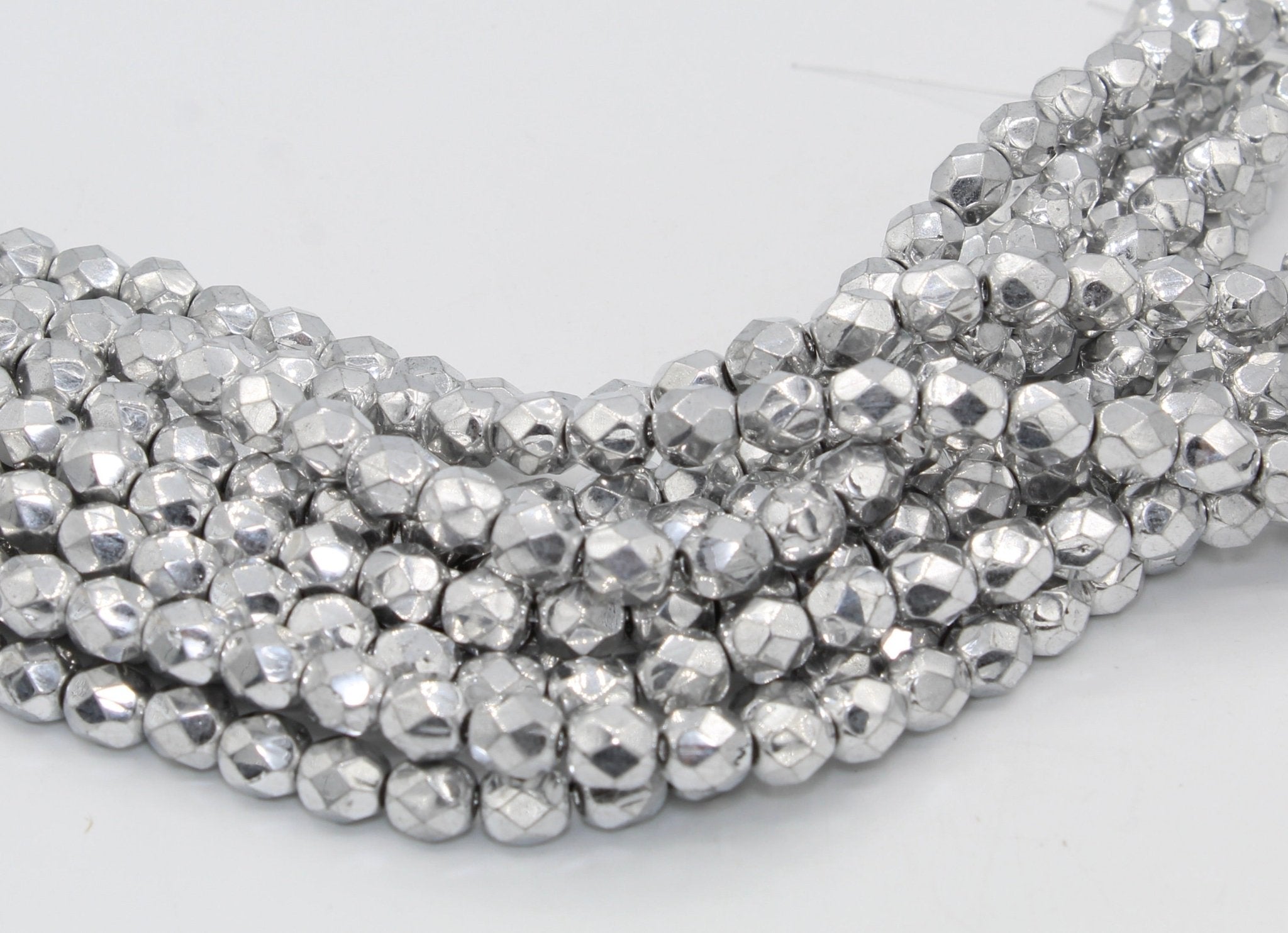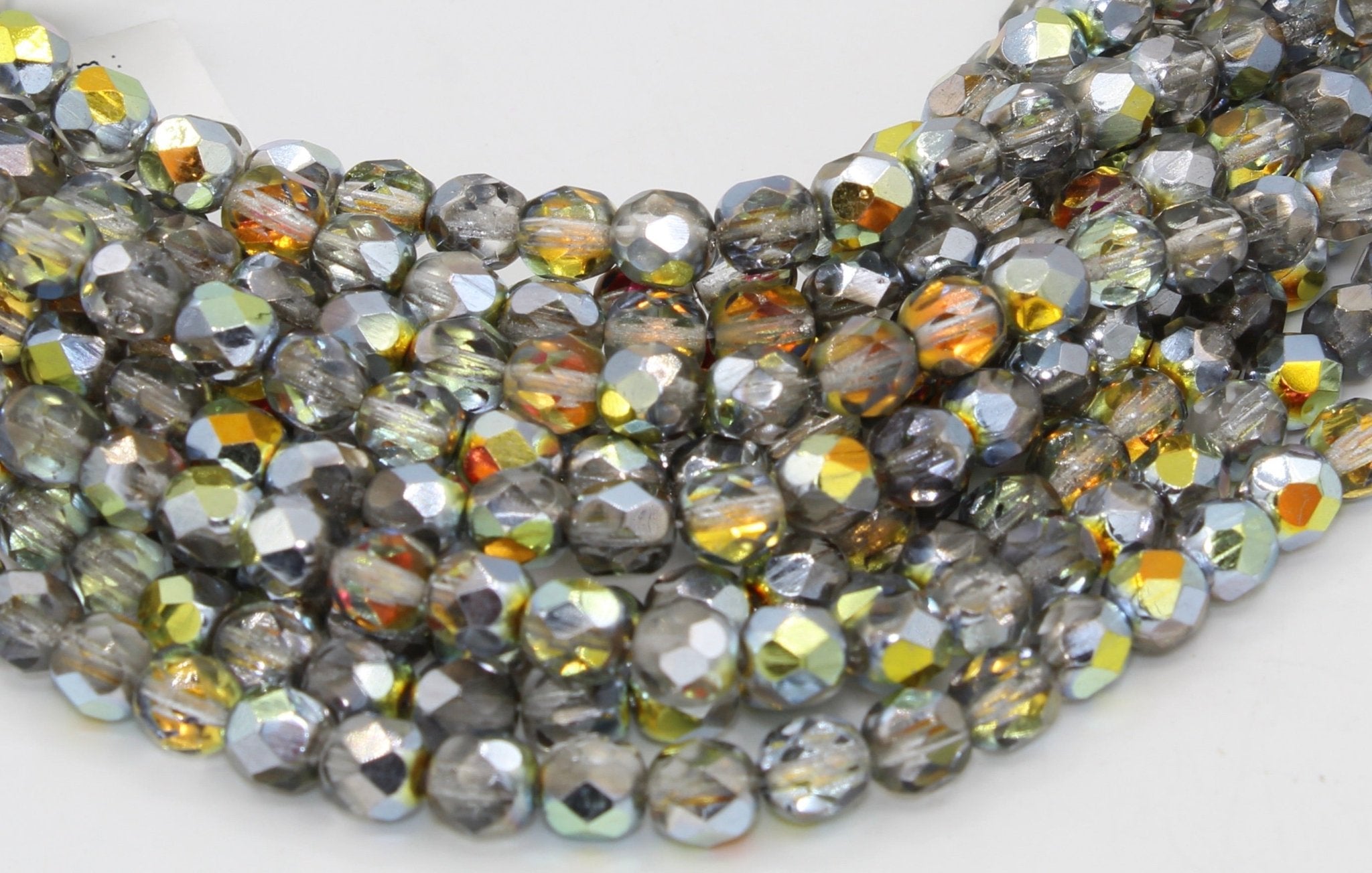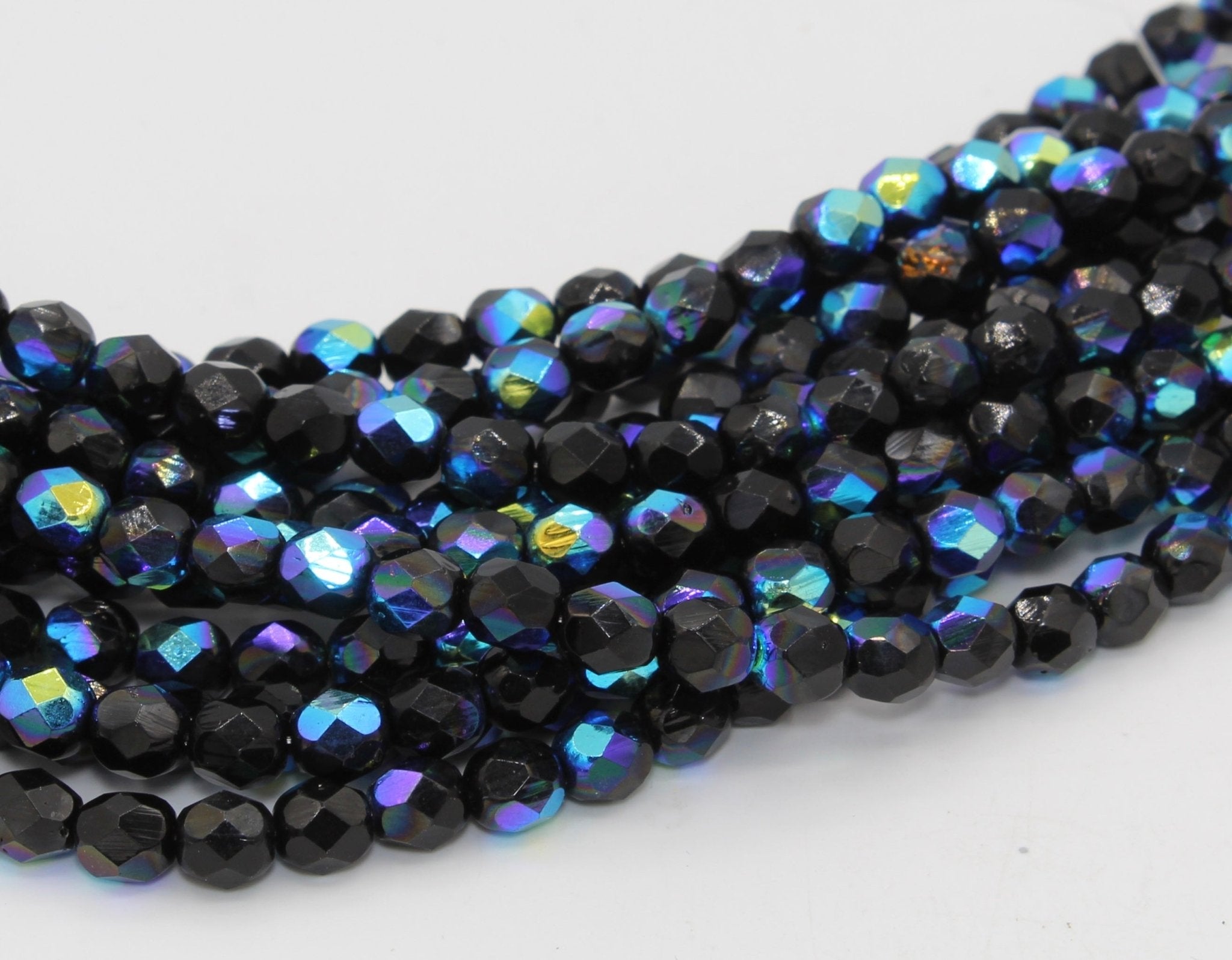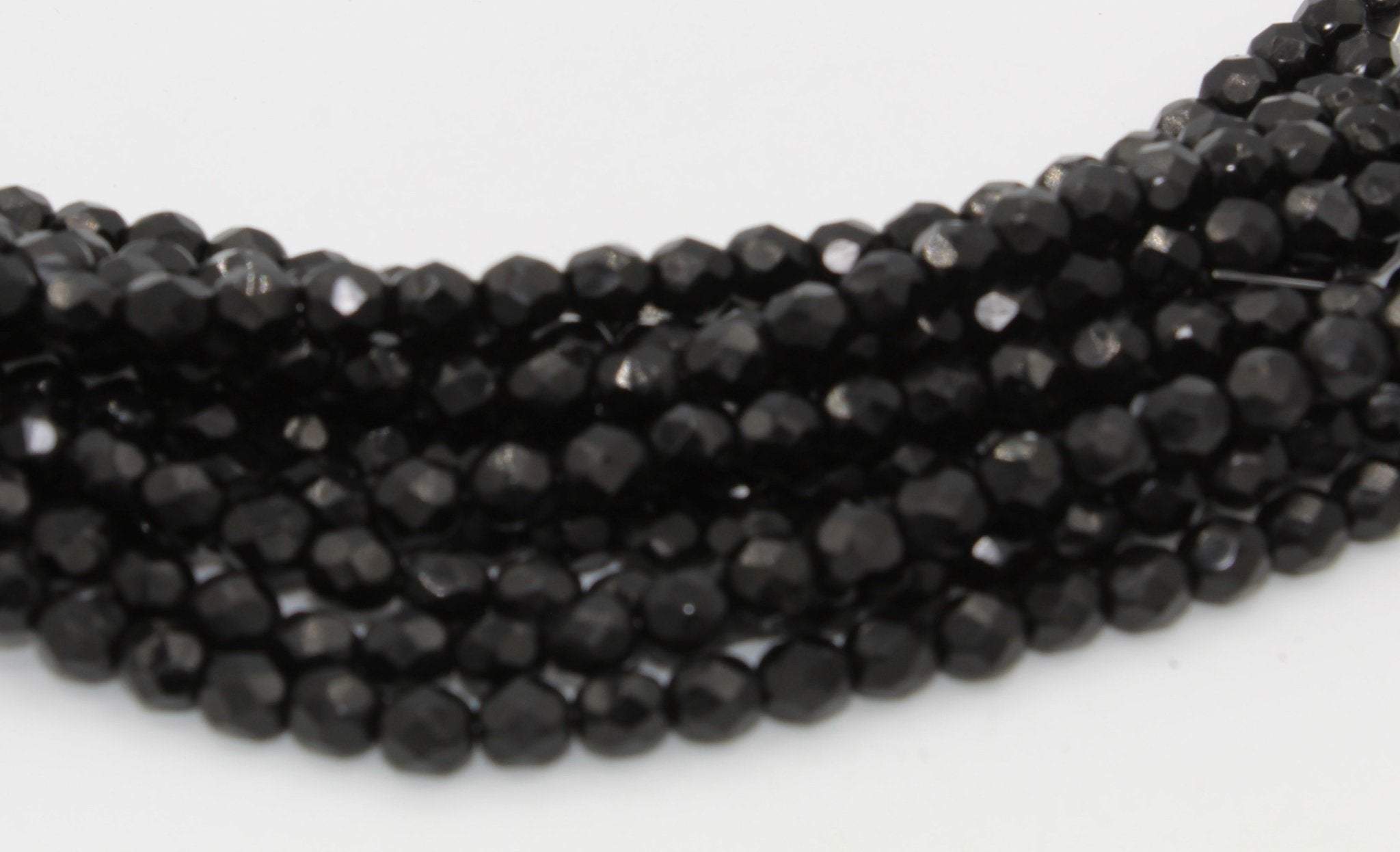 Create stunning jewelry with our extensive collection of glass Fire Polished beads, available in many finishes and colors. 6mm Fire Polished beads are relatively round faceted beads. They are sold by the 6" strand. There are approximately 25 beads per strand, with a .5mm hole.