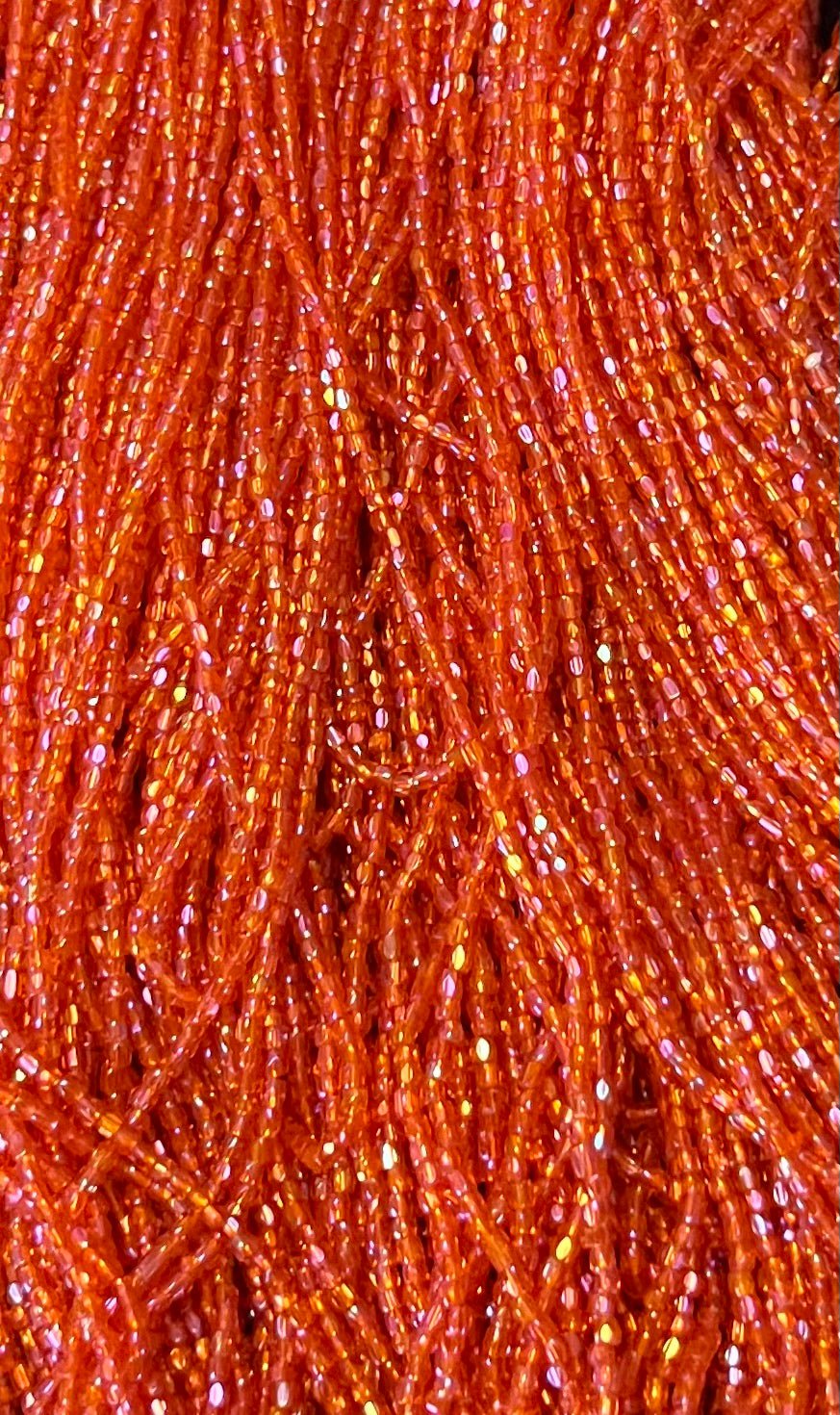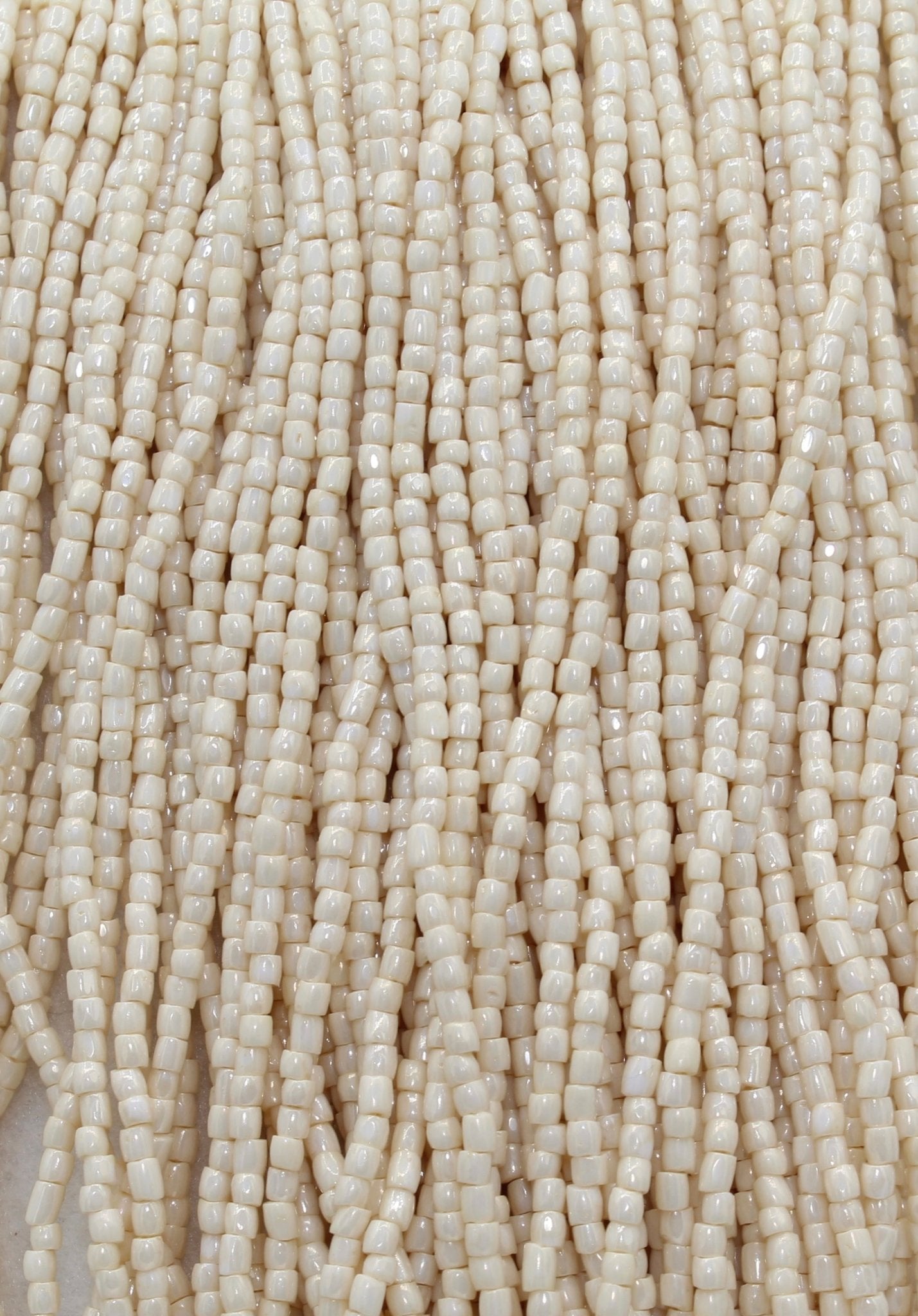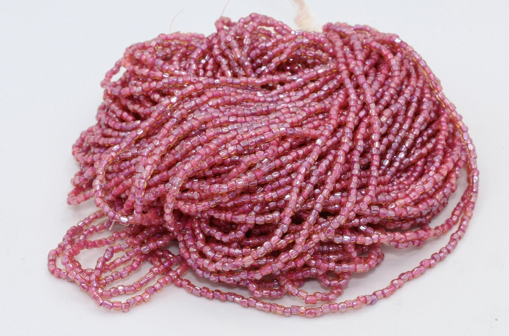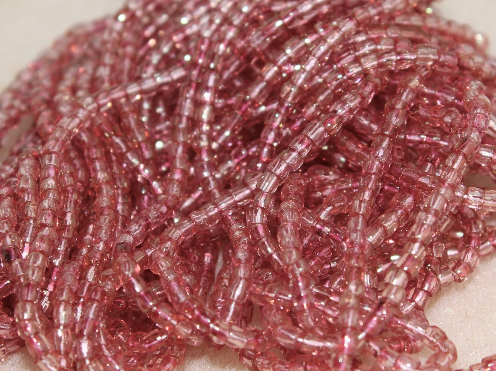 Size 9/0 Tri-Cut seed beads are slightly barreled shaped with faceting around the entire bead for a sparkly appearance. Size 9/0 is larger than size 10/0.