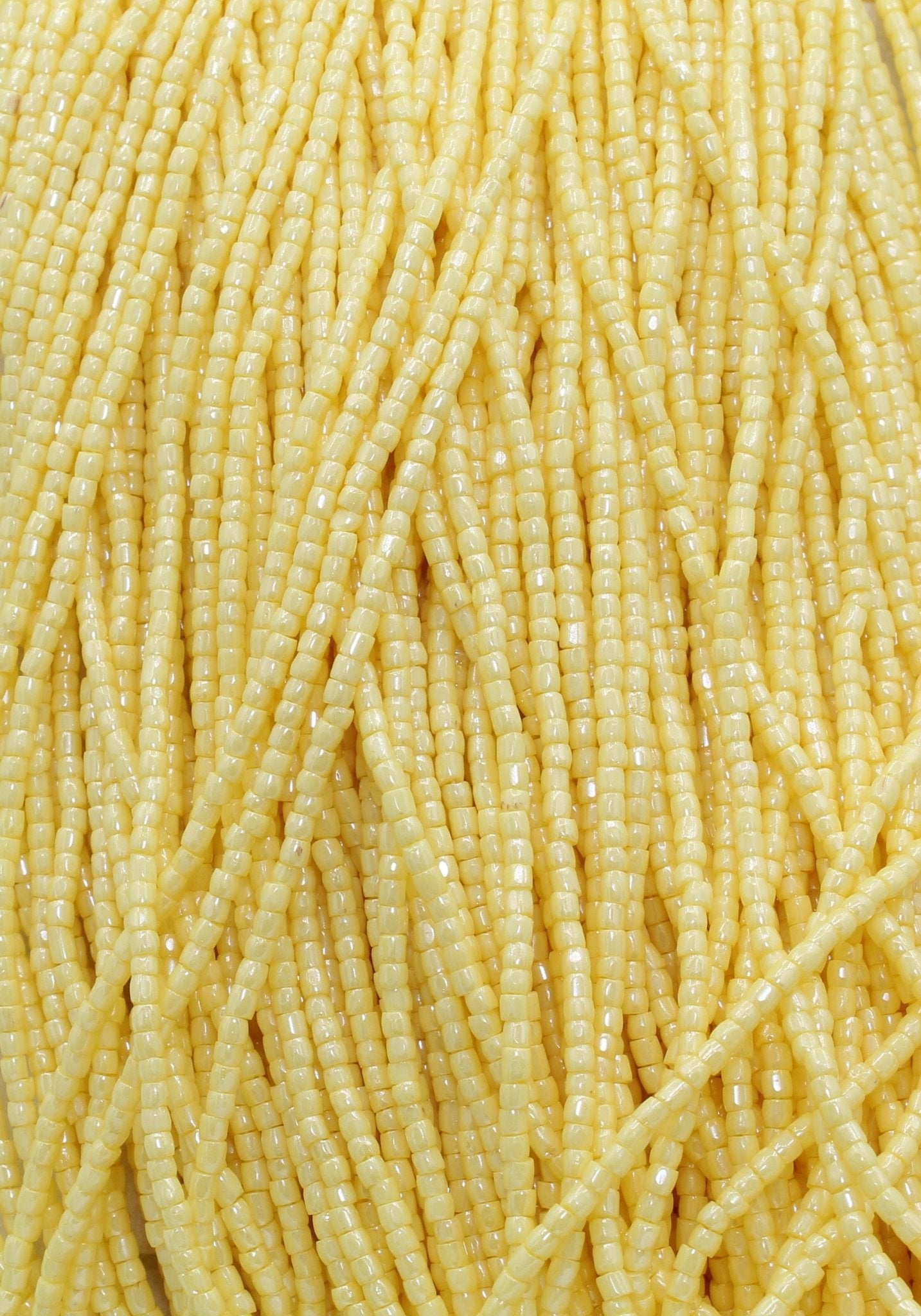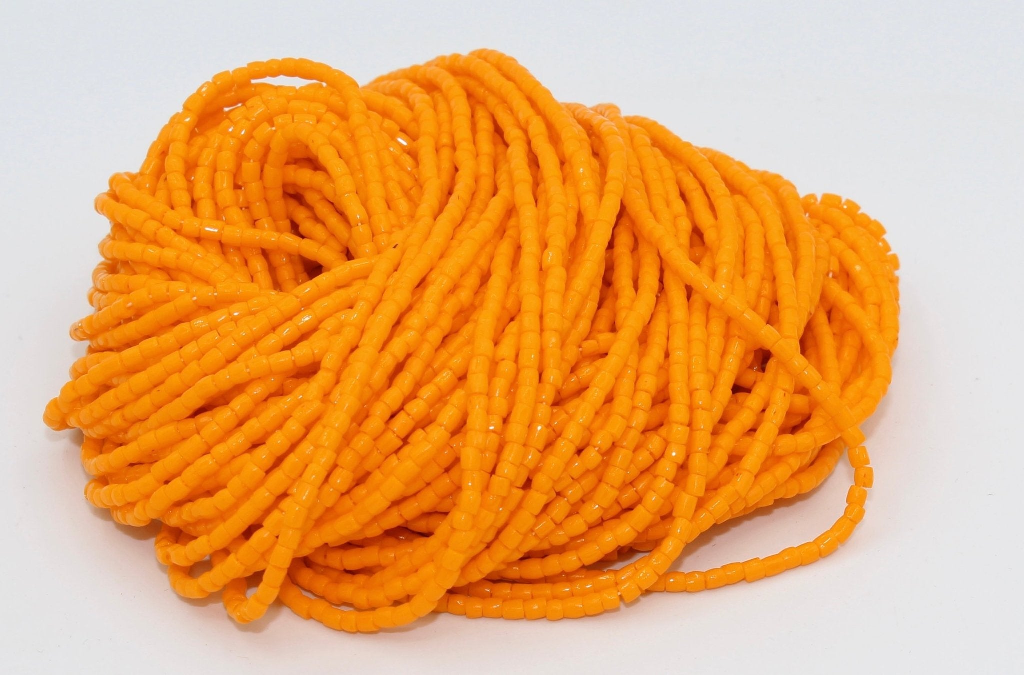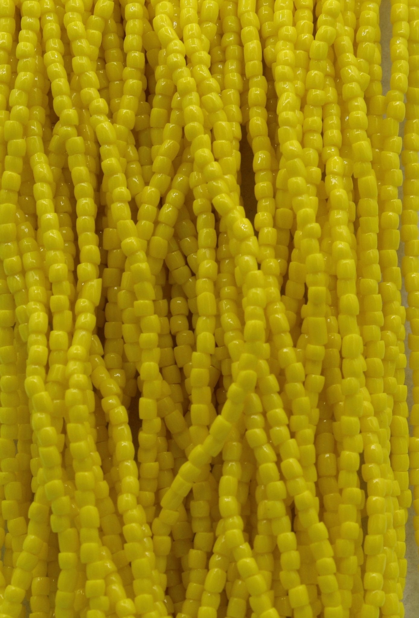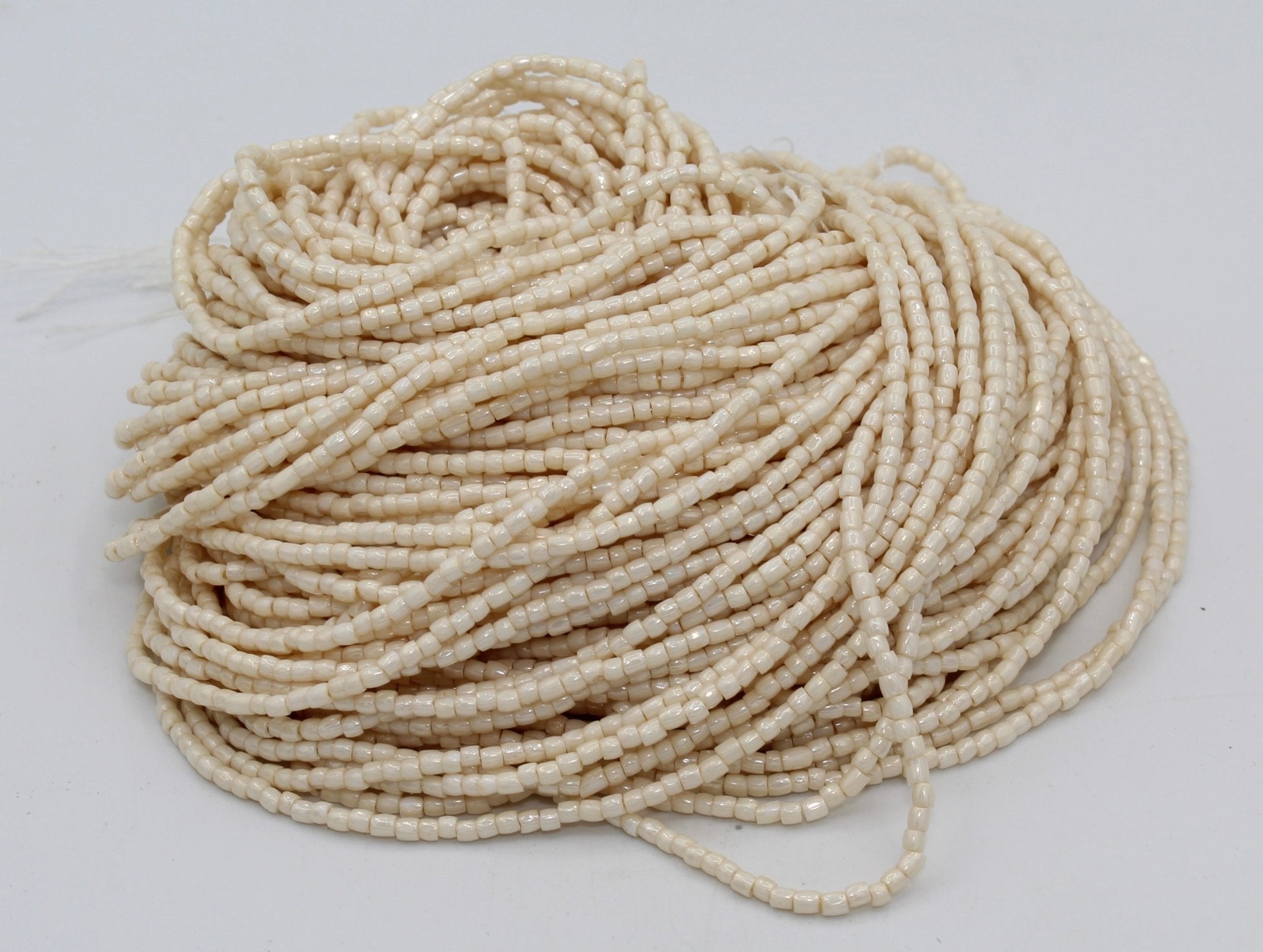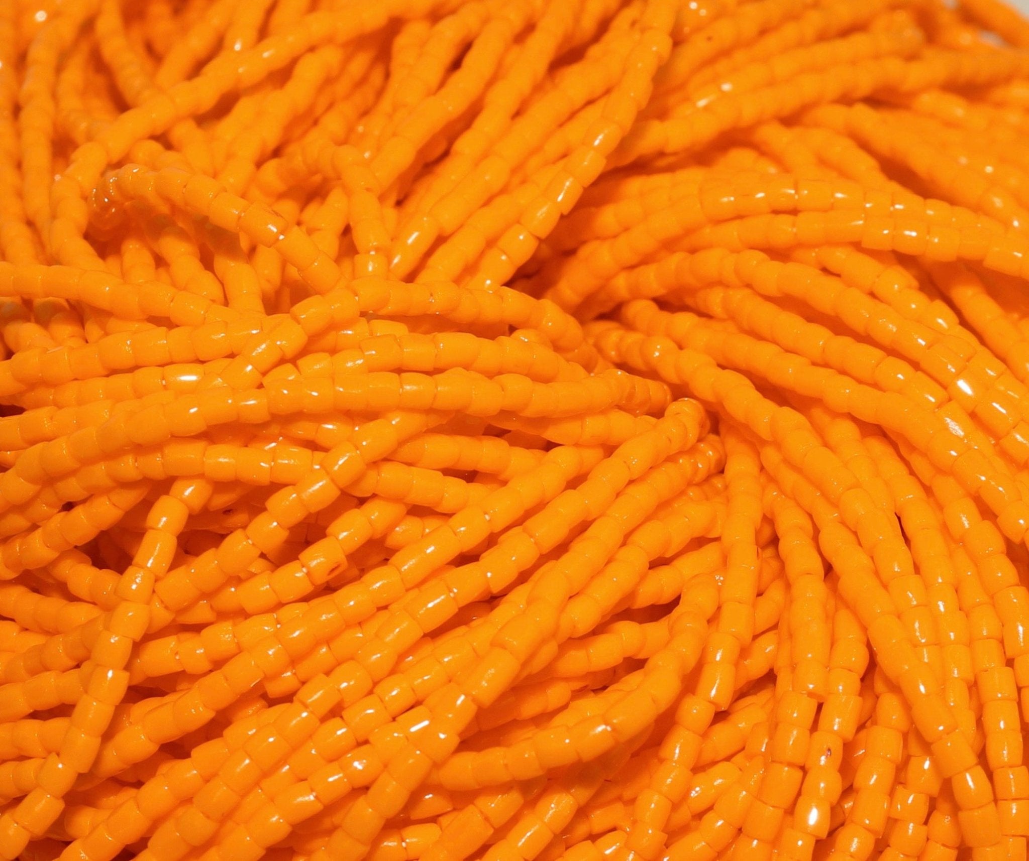 Size 9/0 Tri-Cut seed beads are slightly barreled shaped with faceting around the entire bead for a sparkly appearance. Size 9/0 is larger than size 10/0.