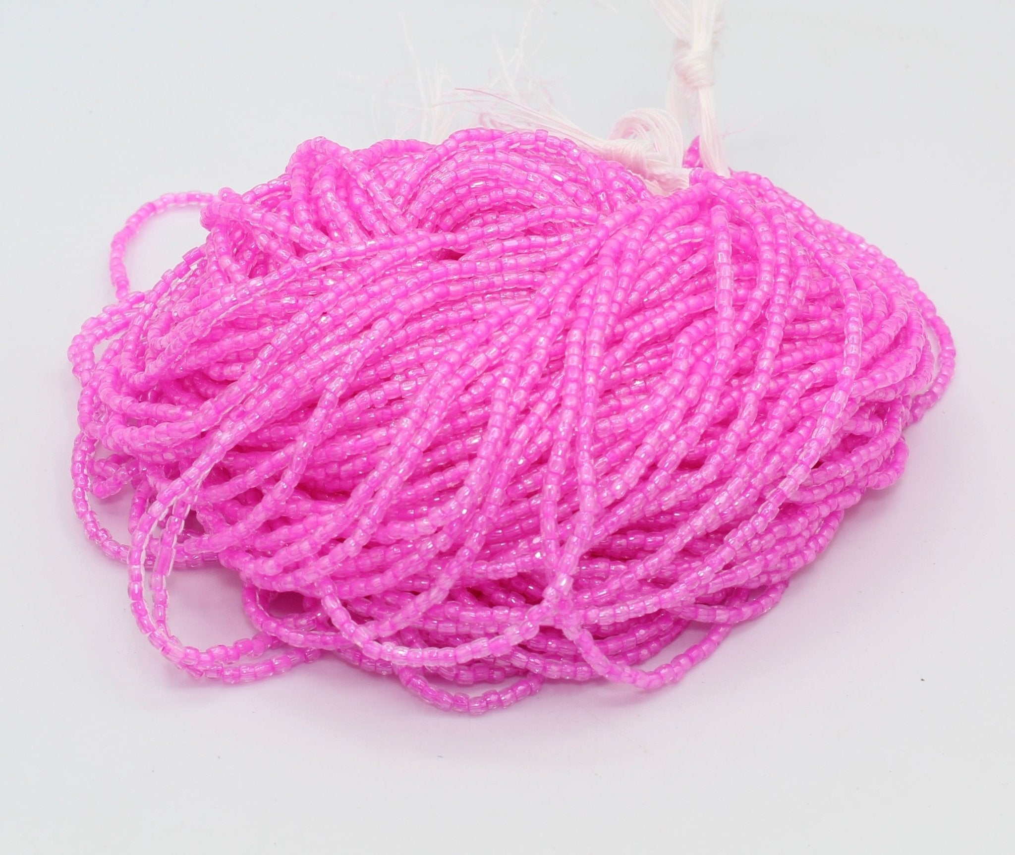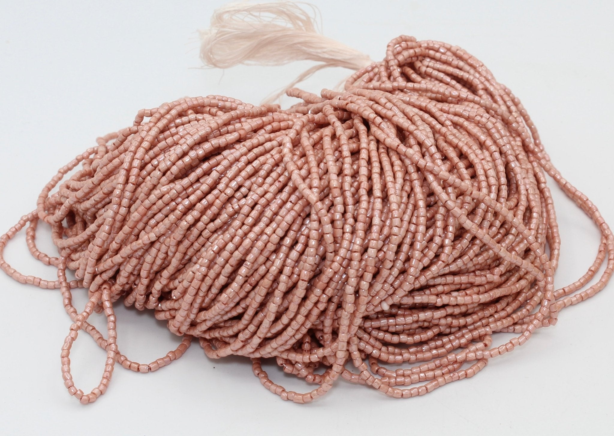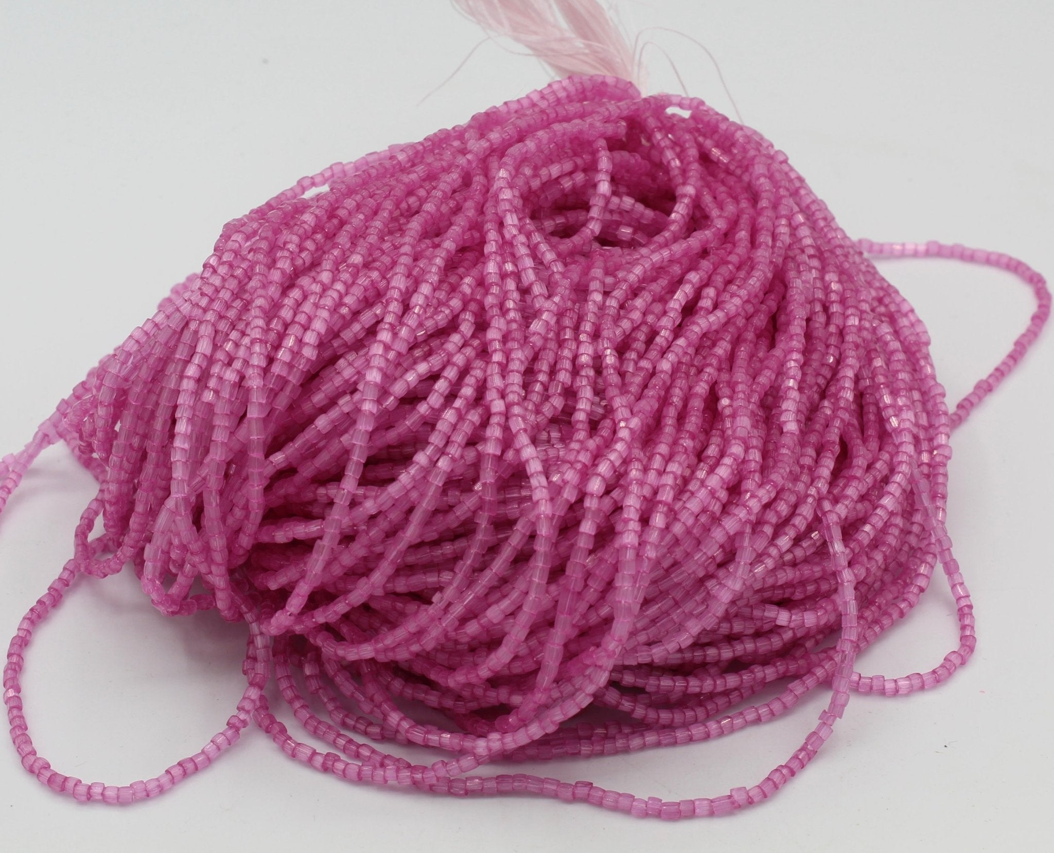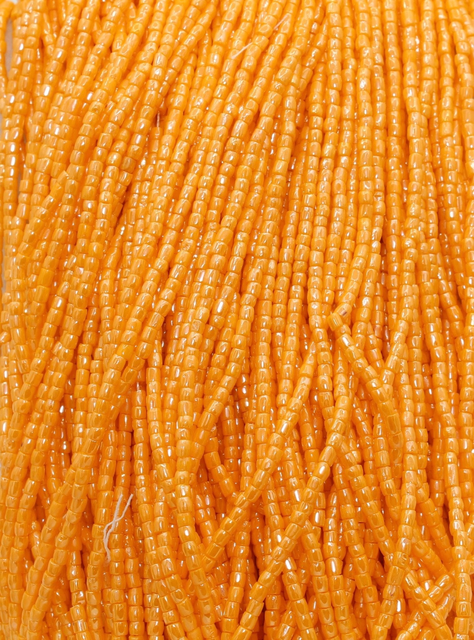 Size 9/0 Tri-Cut seed beads are slightly barreled shaped with faceting around the entire bead for a sparkly appearance. Size 9/0 is larger than size 10/0.