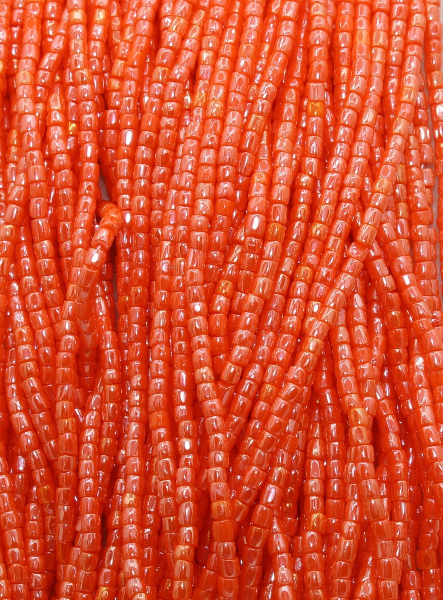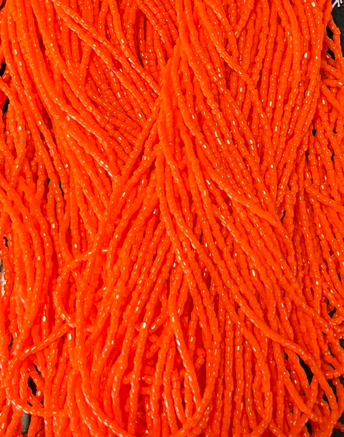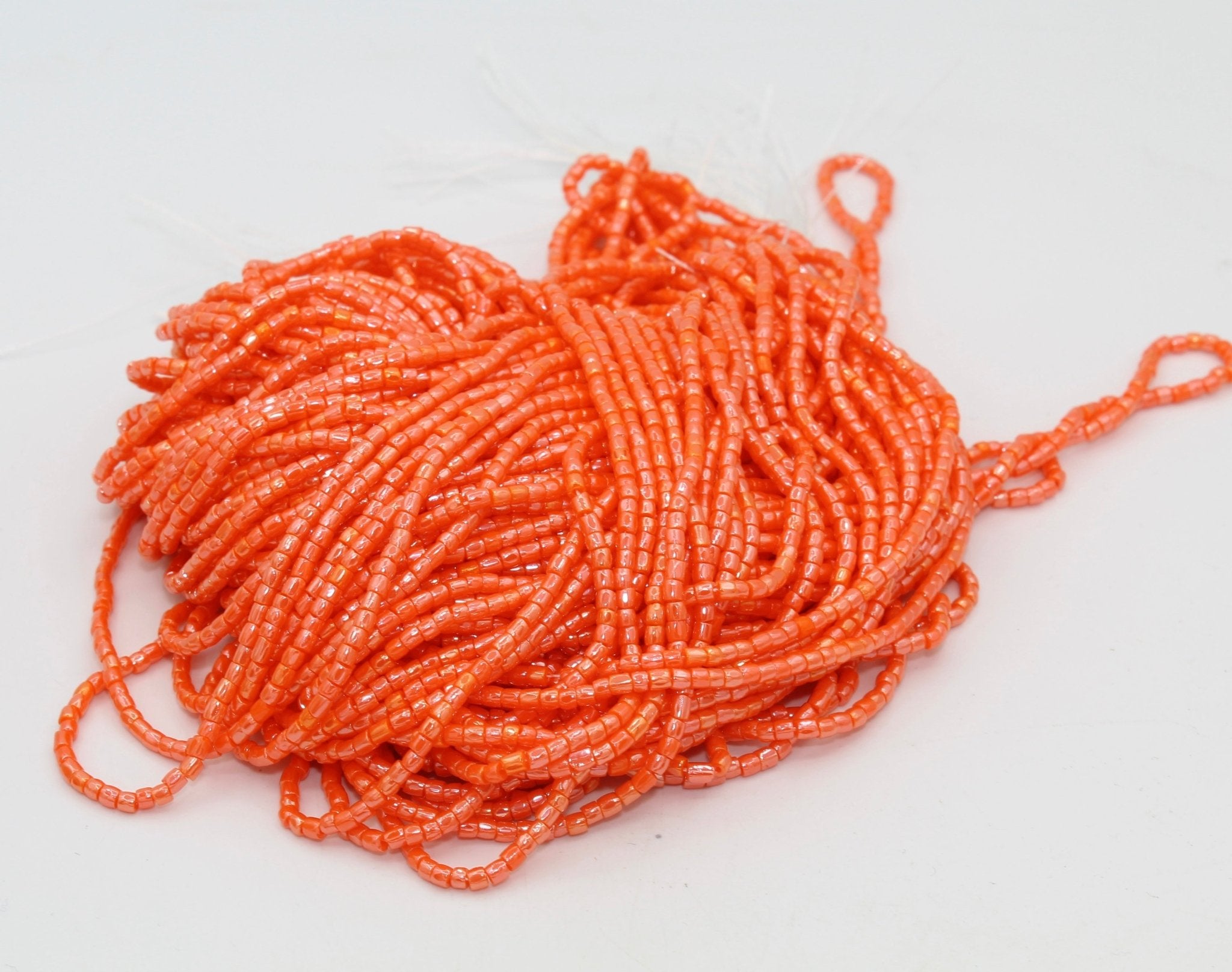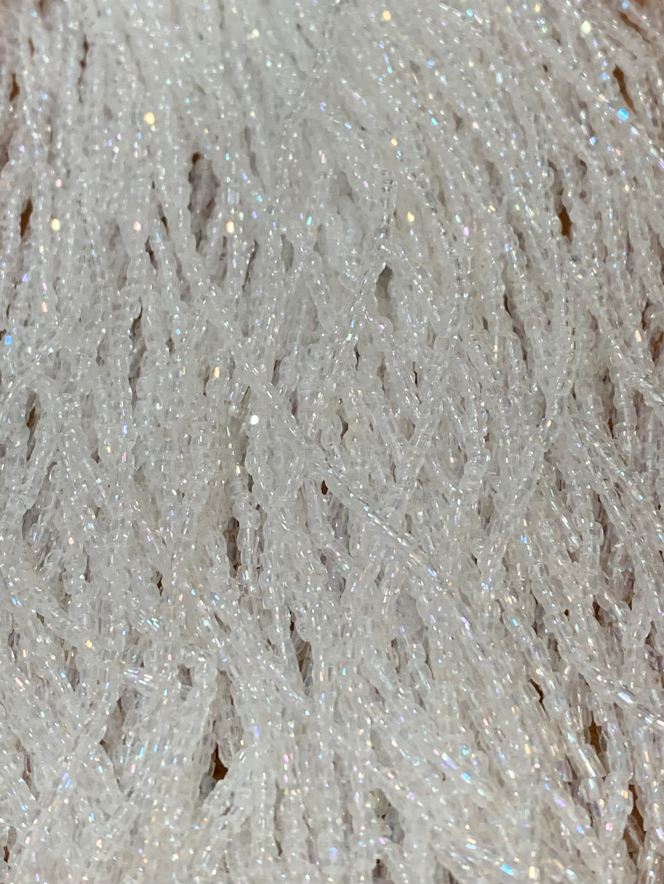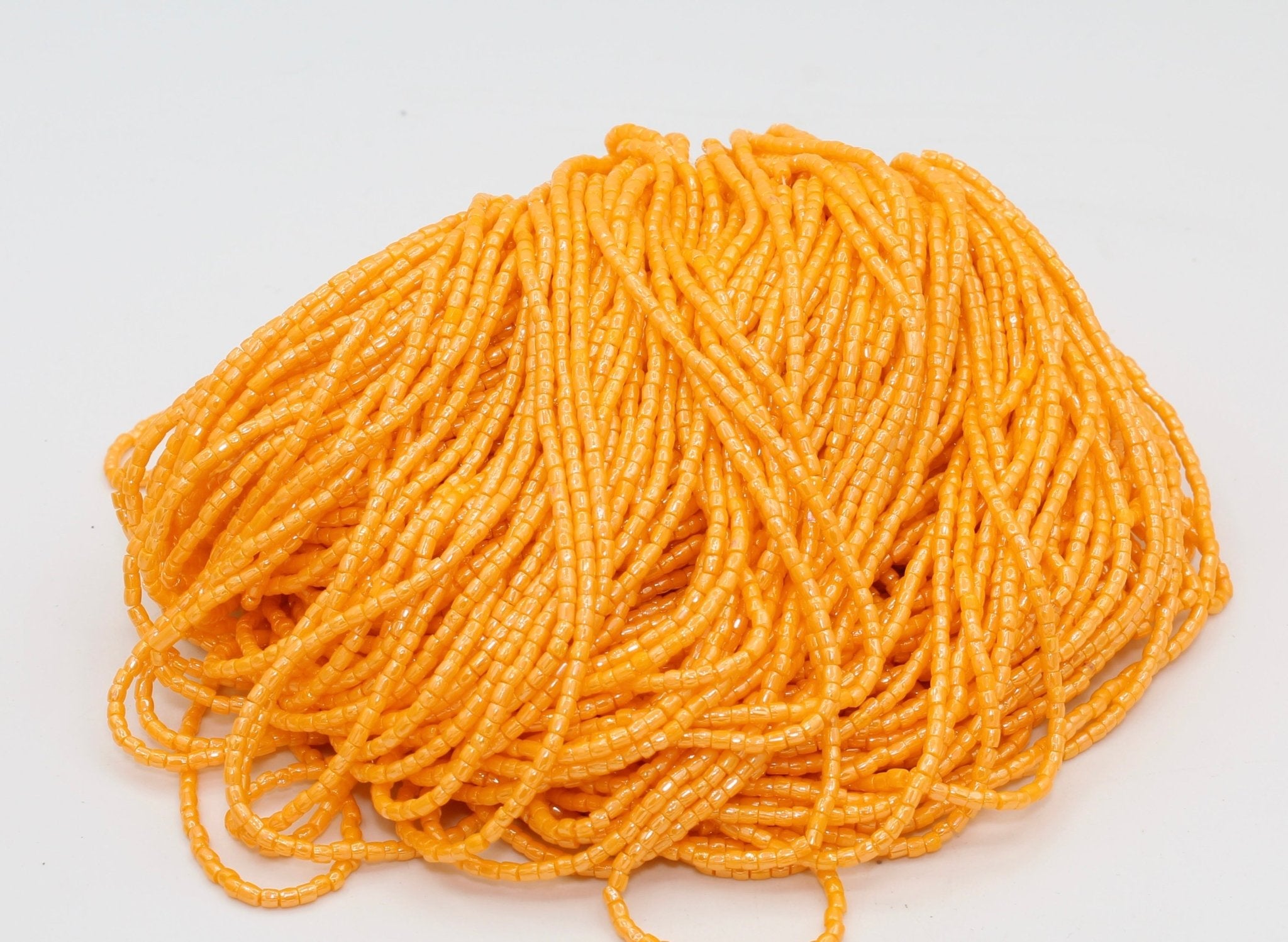 Size 9/0 Tri-Cut seed beads are slightly barreled shaped with faceting around the entire bead for a sparkly appearance. Size 9/0 is larger than size 10/0.