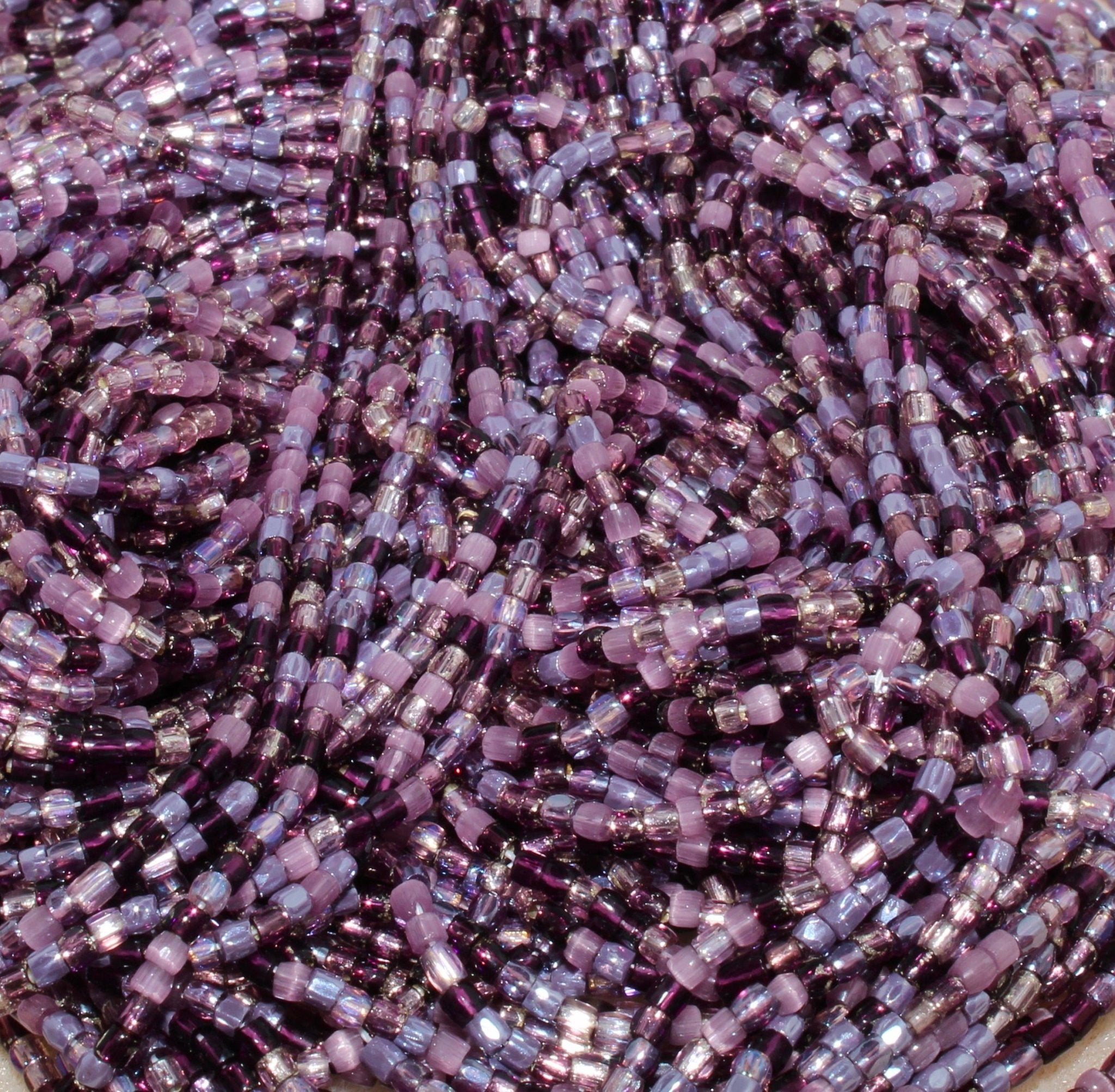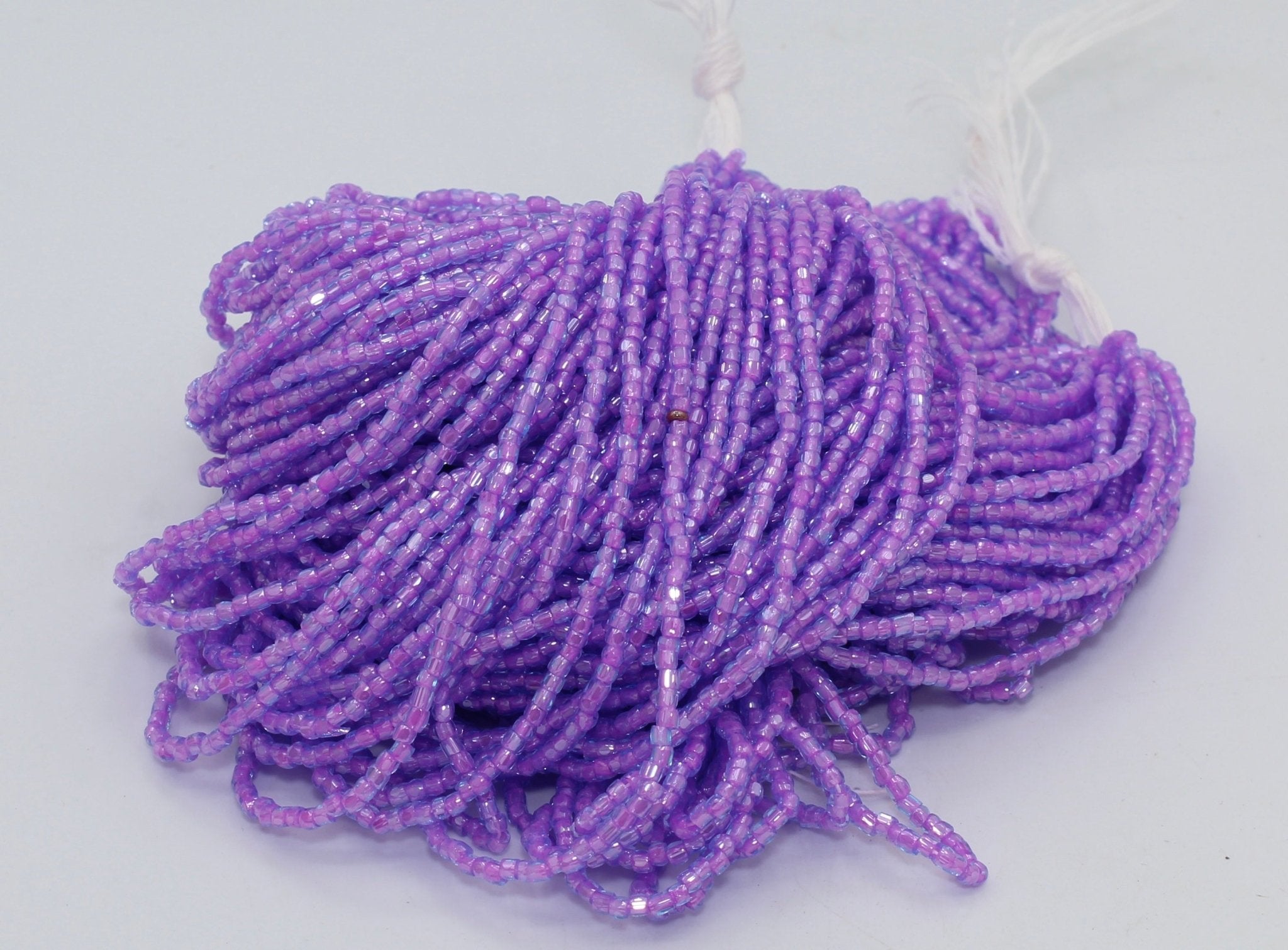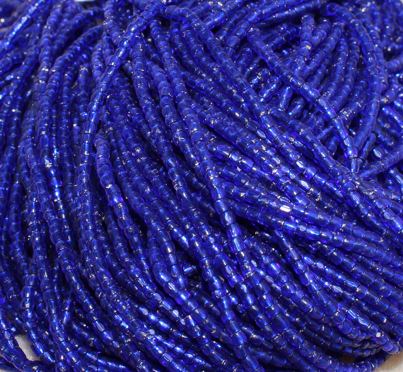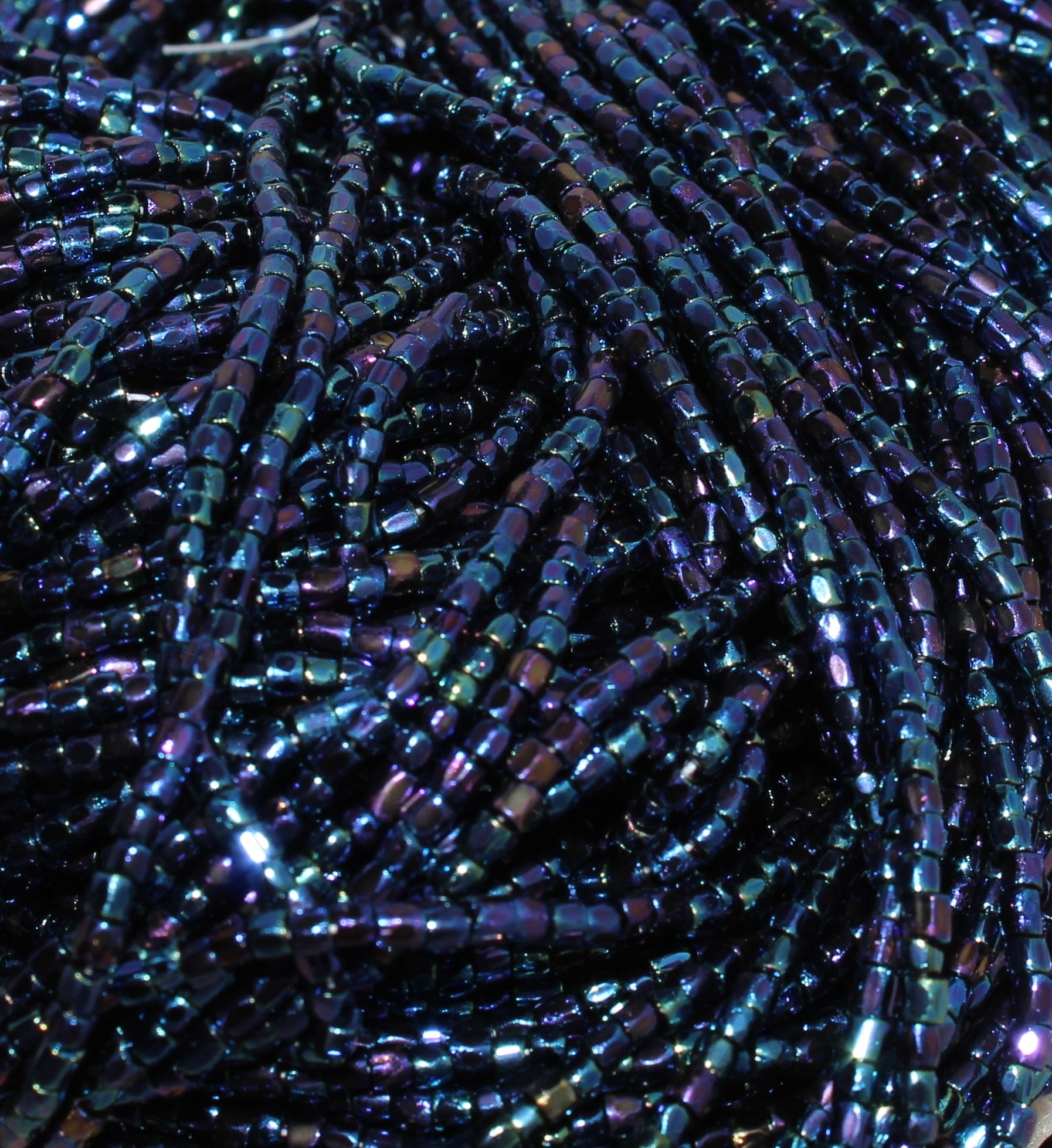 Size 9/0 Tri-Cut seed beads are slightly barreled shaped with faceting around the entire bead for a sparkly appearance. Size 9/0 is larger than size 10/0.