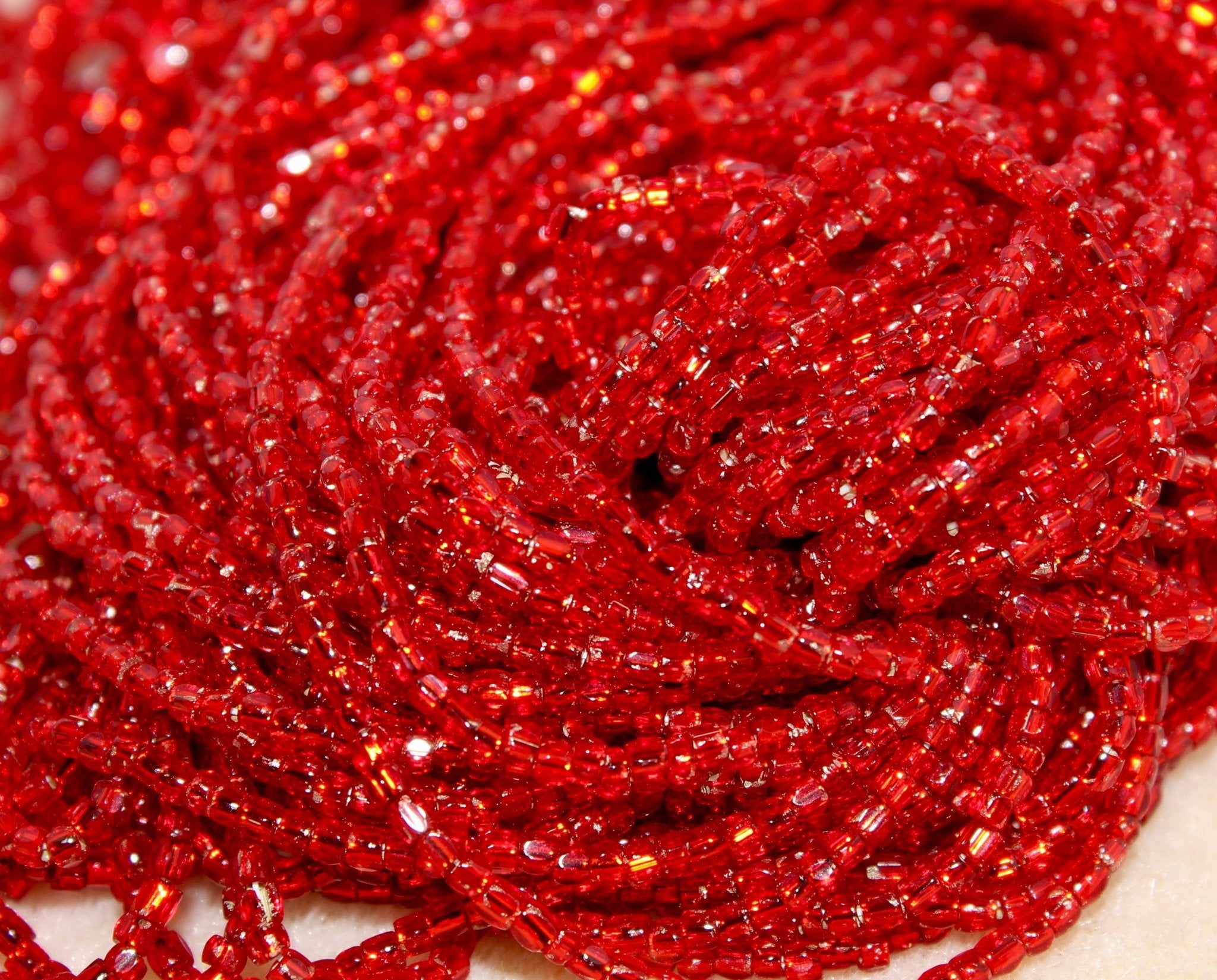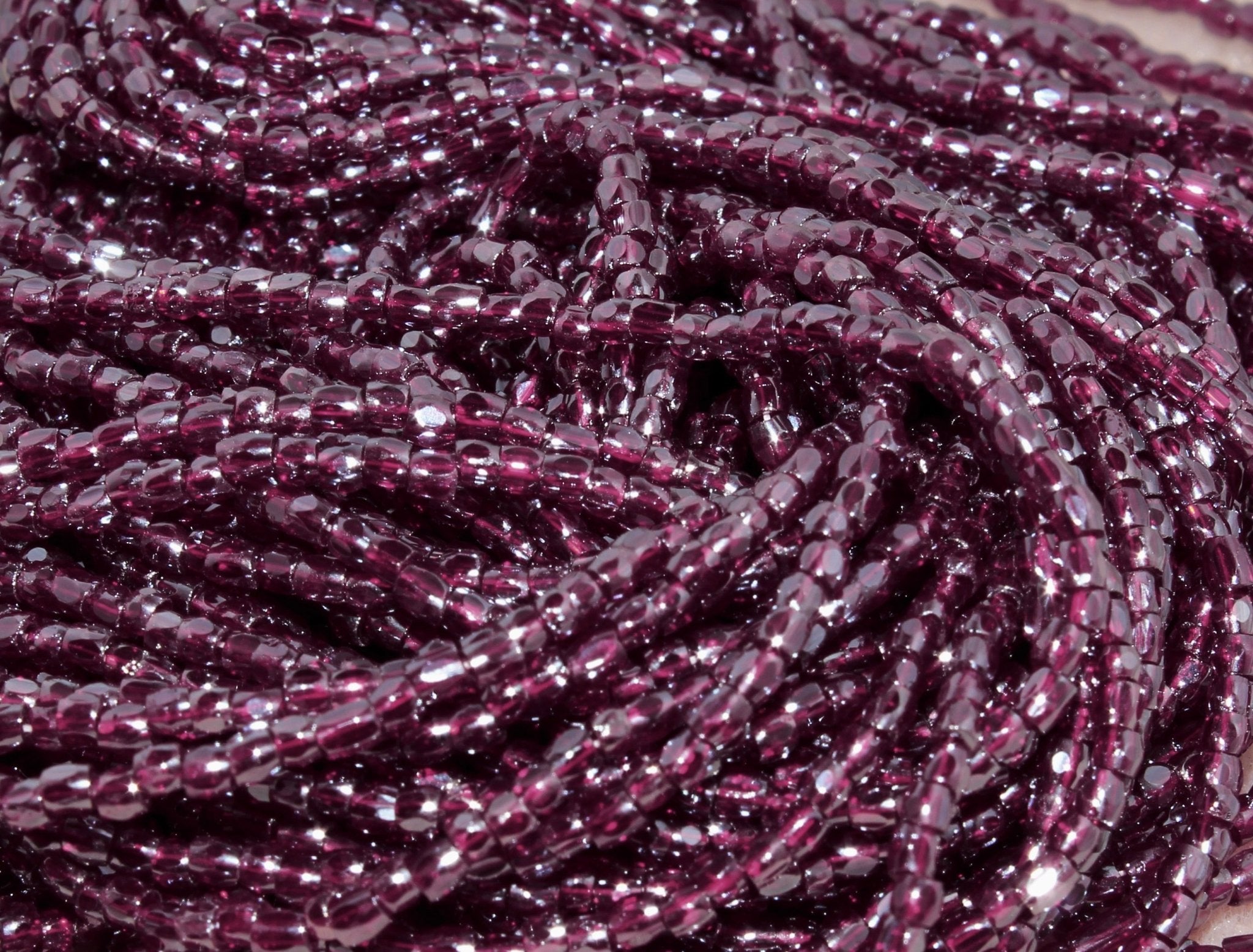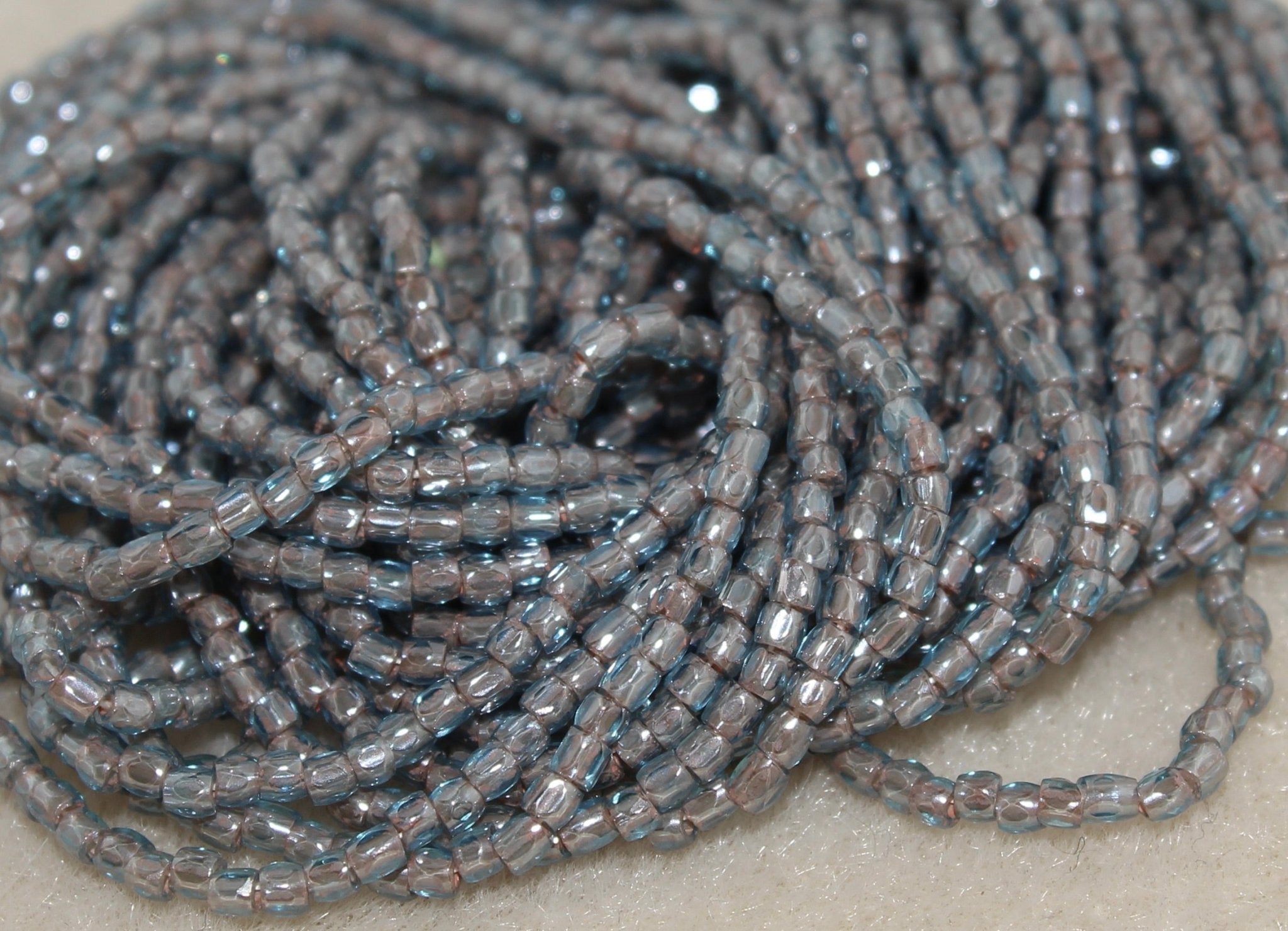 They are sold as a hank, with 10 strands. There are approximately 3,000 beads per hank. These beads are made in the Czech Republic.