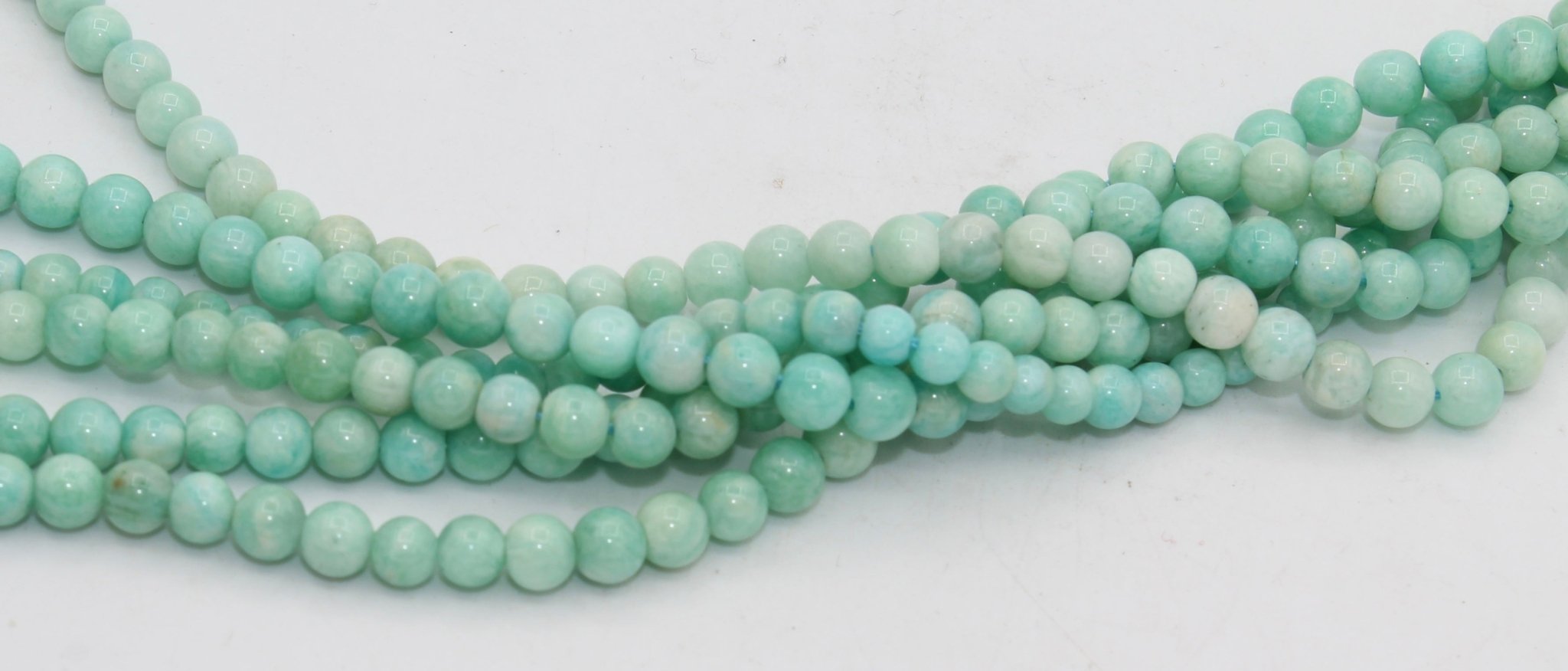 Amazonite is an opaque gemstone that ranges from sea blue to light green, often with black matrix throughout. It is named for the Amazon River, but it is found in numerous countries, such as Russia, South Africa, Libya and even the United States.
