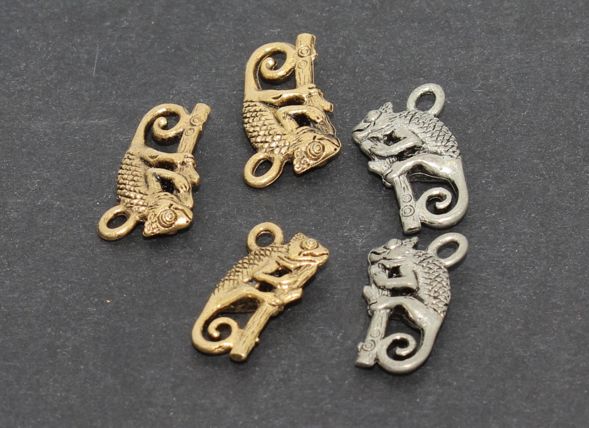These adorable lizard charms are made of pewter and double sided. There is a 2mm bail at the top of the charm for attaching it to jewelry