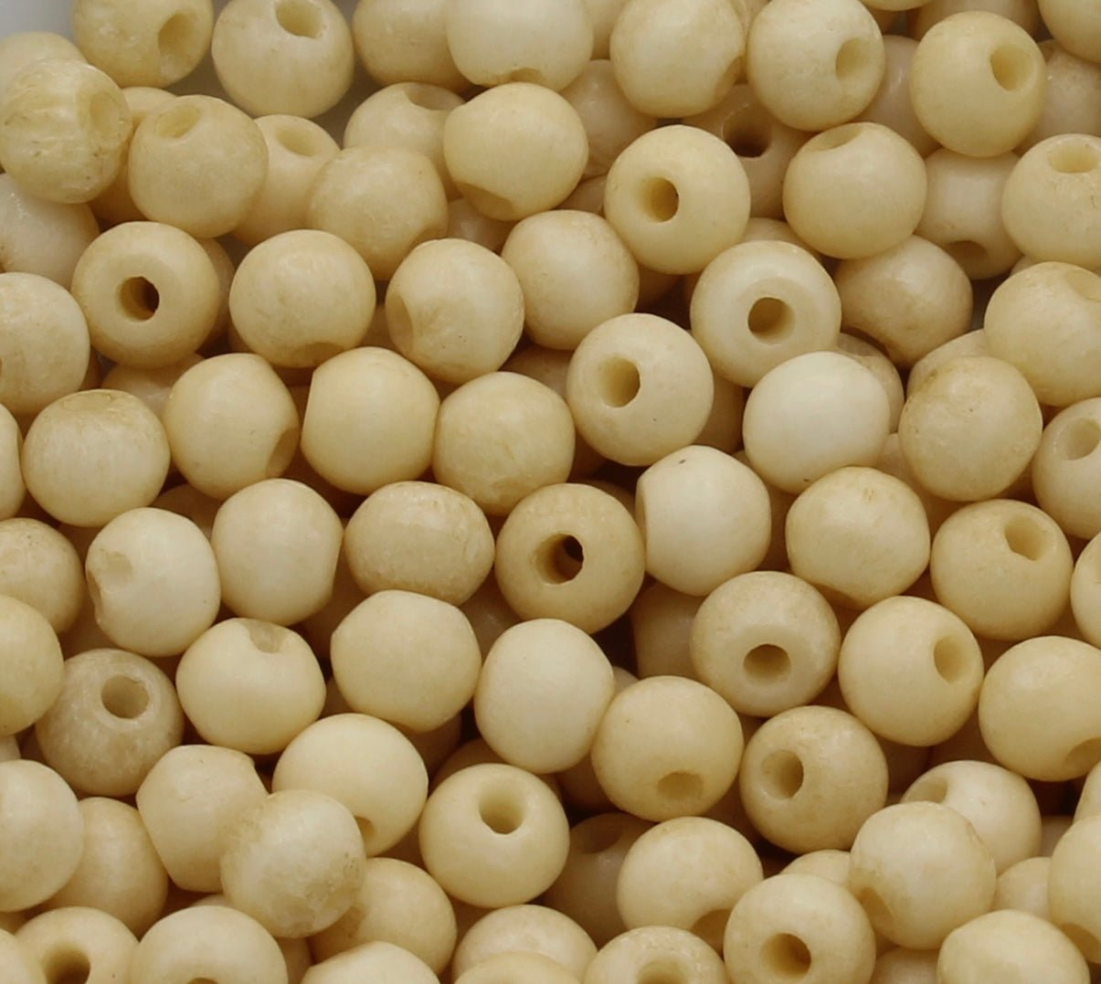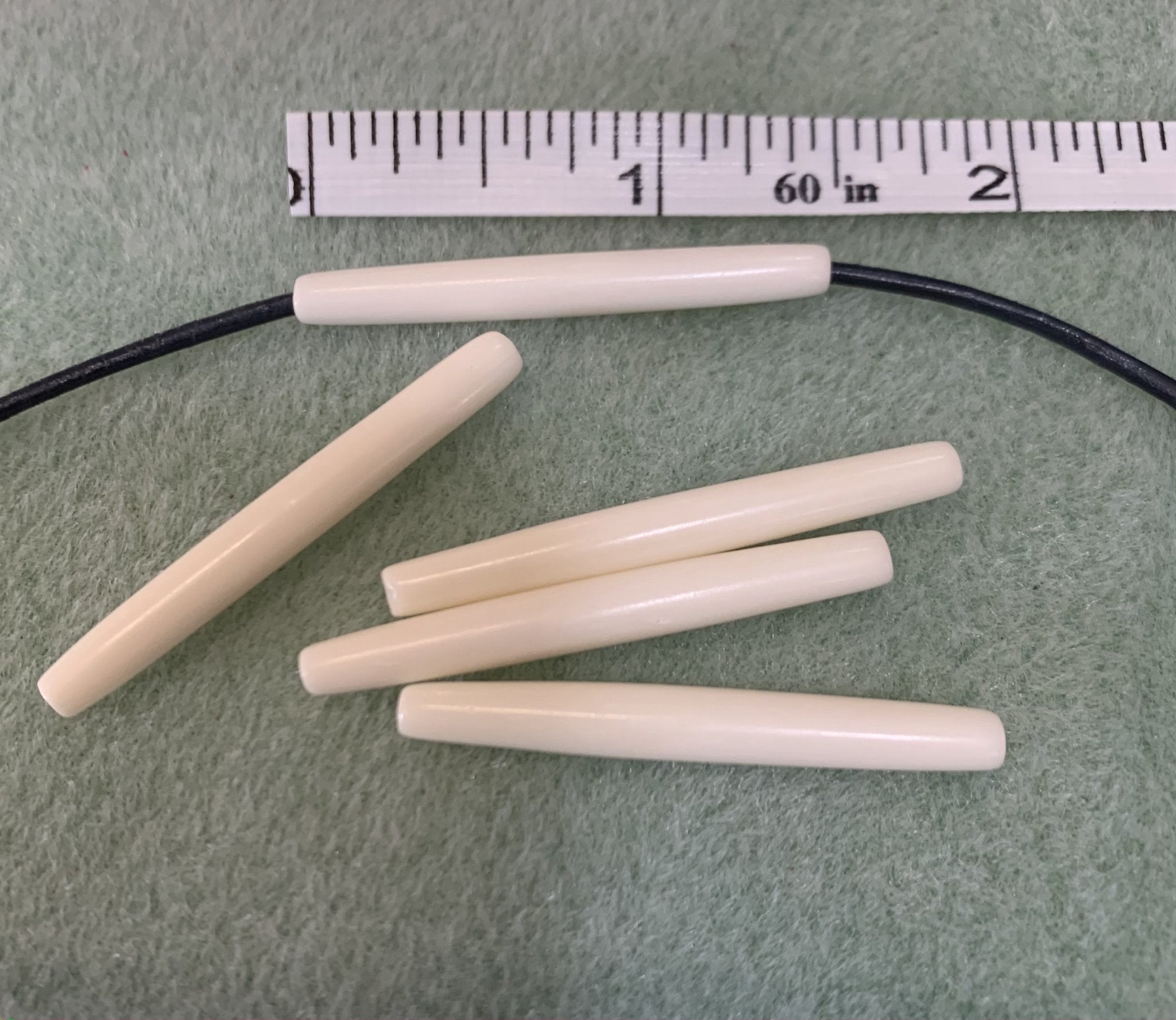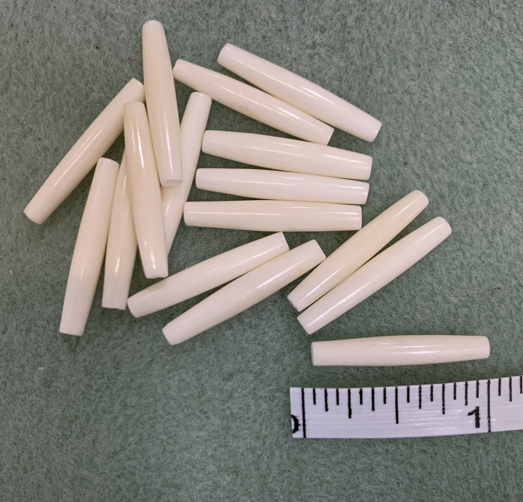 All of our bone beads and hair pipe (long tube shaped bone beads used in chokers and chest plates) are a natural material (cow bone) and a natural color unless otherwise marked.