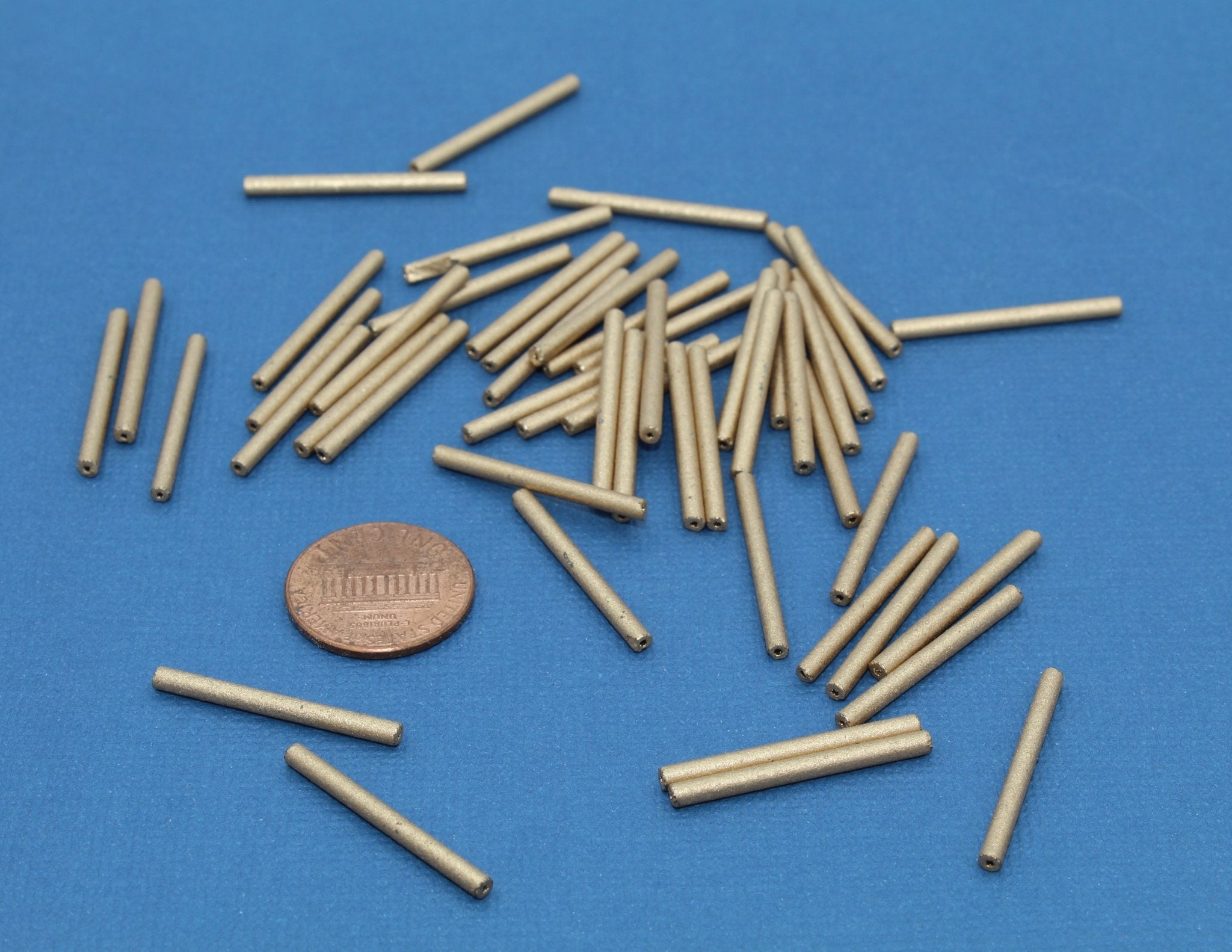 These are straight bugle beads with a matte metallic gold coating. They are 1" long (2.5cm).