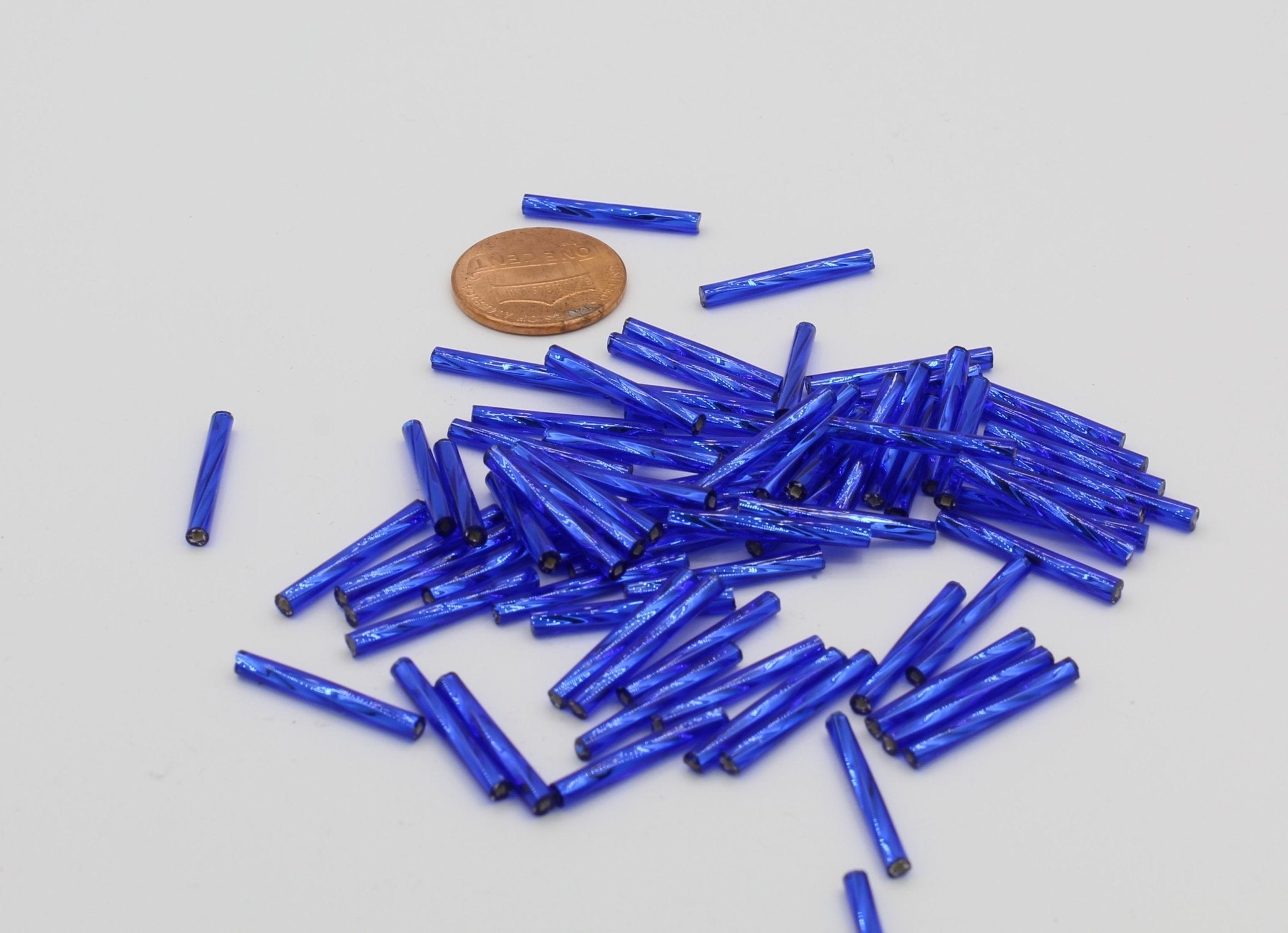 Silver Lined Blue 20mm Twist Bugle Beads - 20013