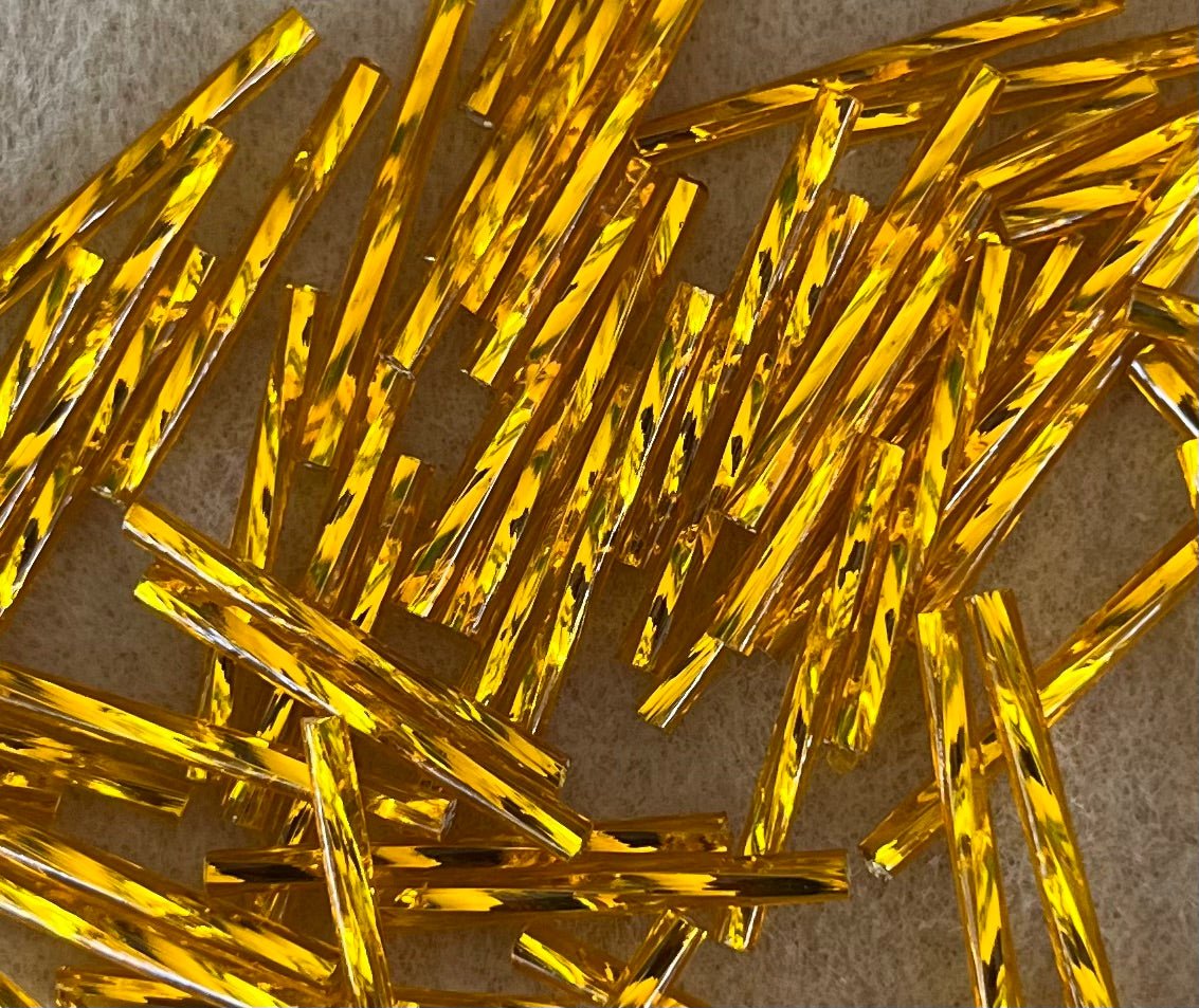 Silver Lined Dark Yellow 25mm Twist Bugle Beads - 25009