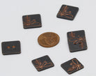 These square dragonfly buttons are made of base metal. They come in dark brown finish with copper etching..