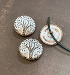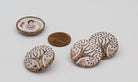 These buttons are 1” in diameter (25mm) and have a shank that fits 2mm cord (see picture).