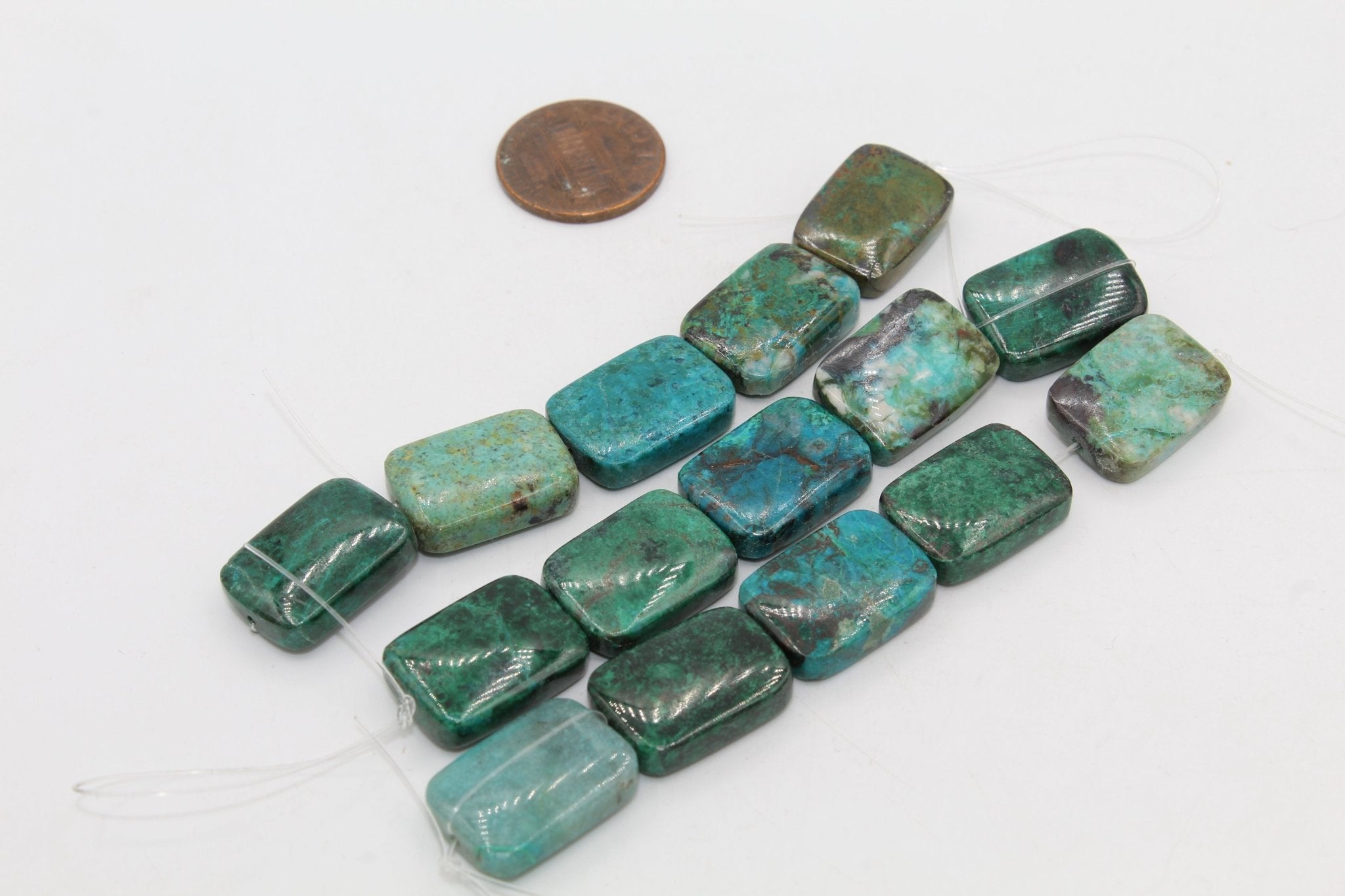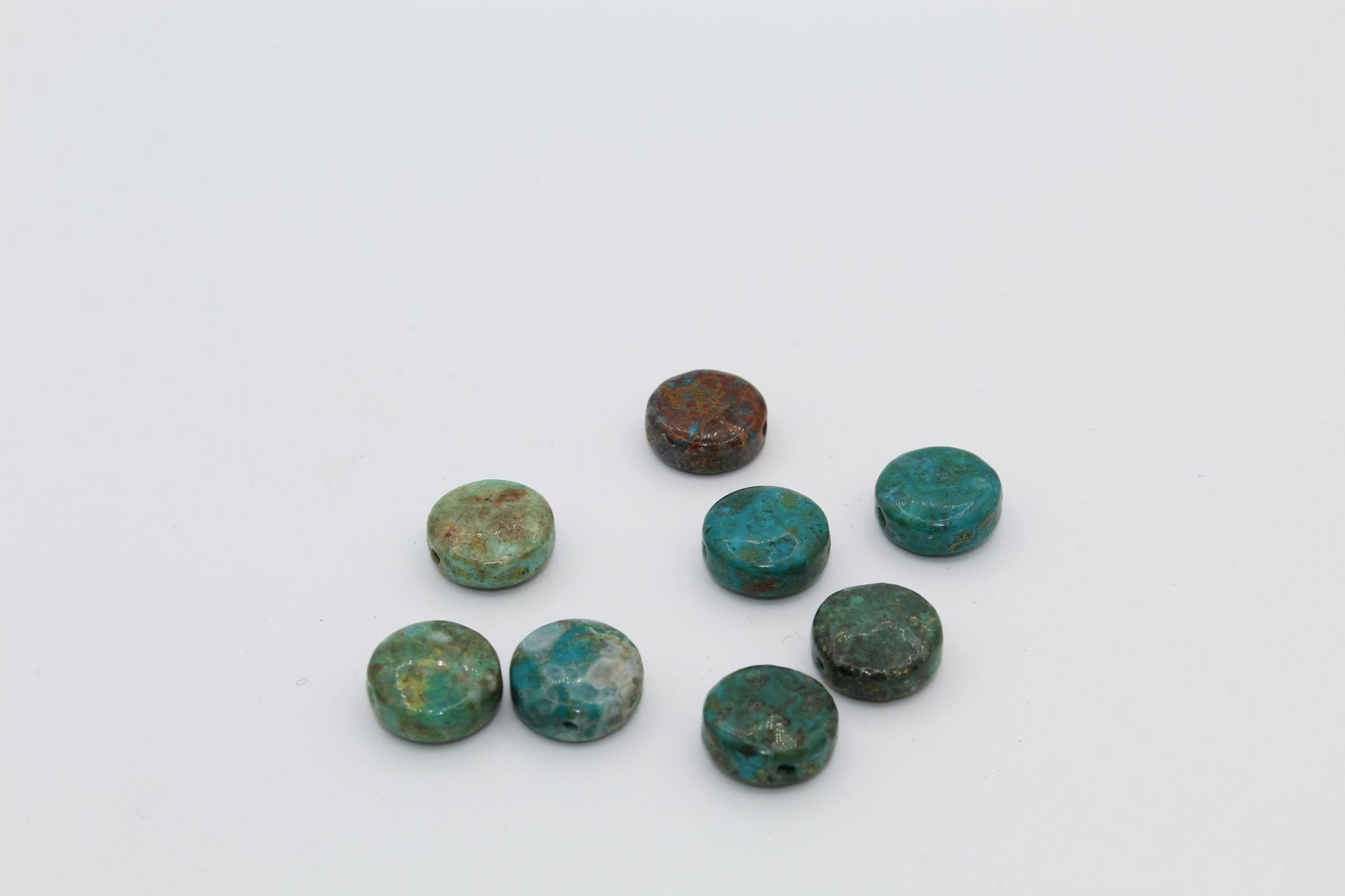 Chrysocolla has a blue green color with black and brown veins, and is the stone most similar to Turquoise in appearance. It is primarily found in copper mines in Peru and Arizona.