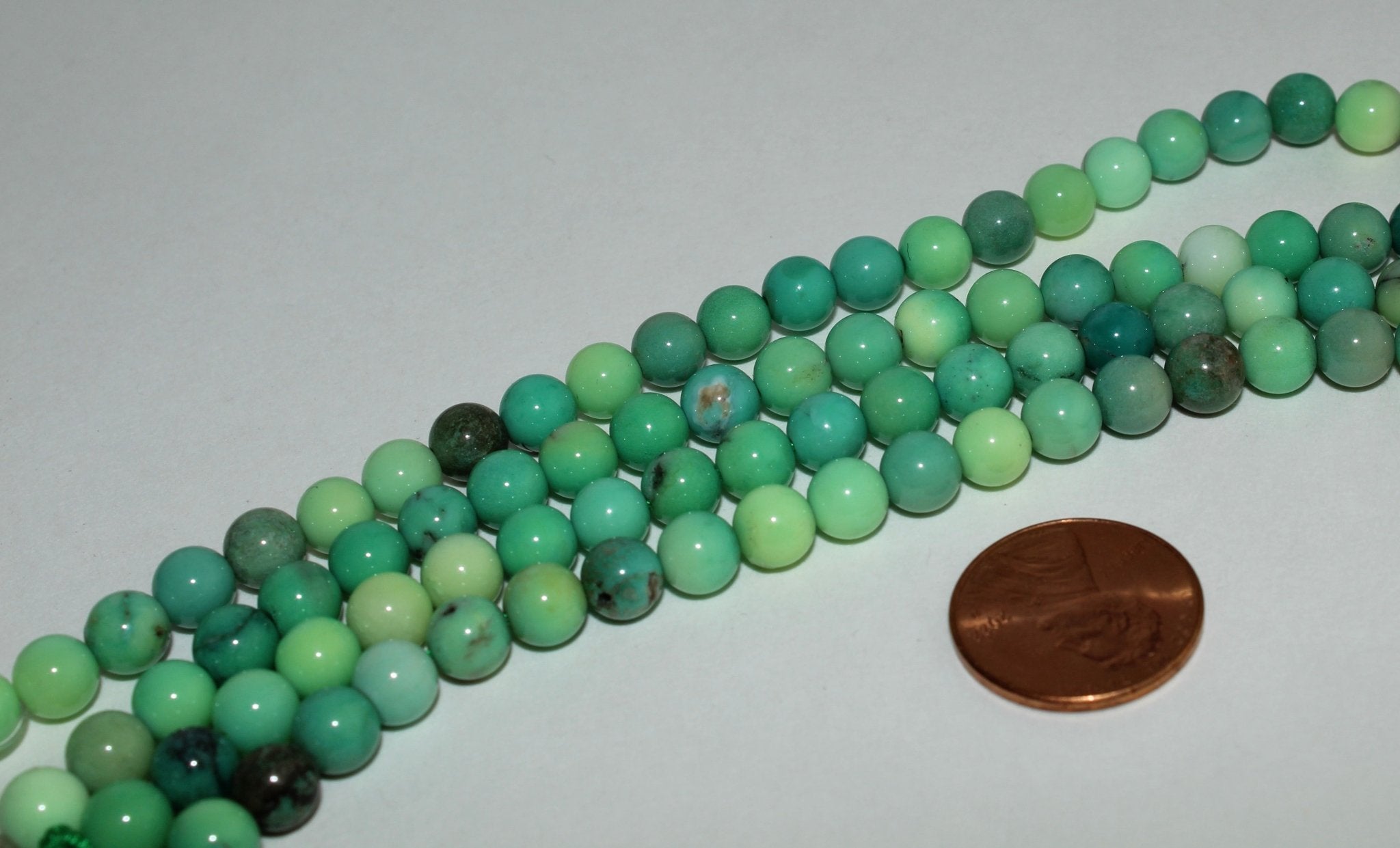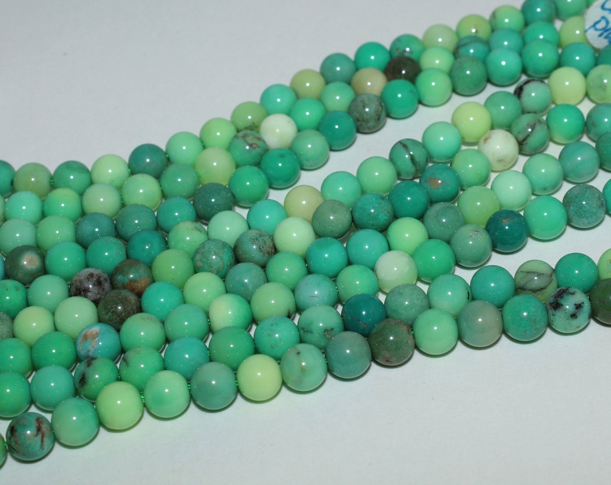 Chrysoprase is a gemstone form of Chalcedony. It is commonly apple green, but can range from dark green to olive and turquoise colors. It has a Mohs hardness range of 6-7. It is found in numerous places, including Australia, Indonesia, Europe, Brazil and California.