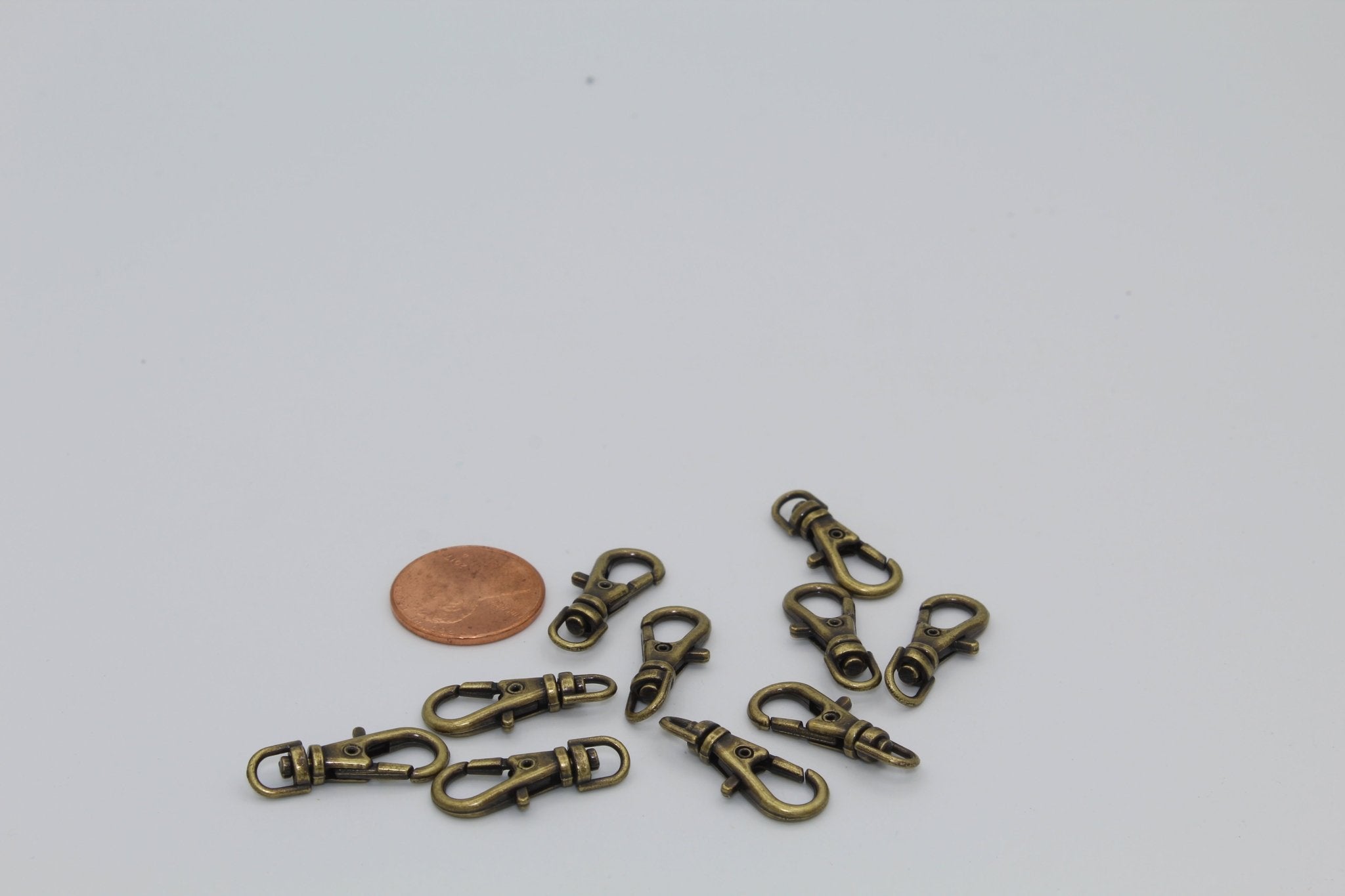 These swivel lobster clasps come in silver plate and antique brass finishes. They are sold individually.