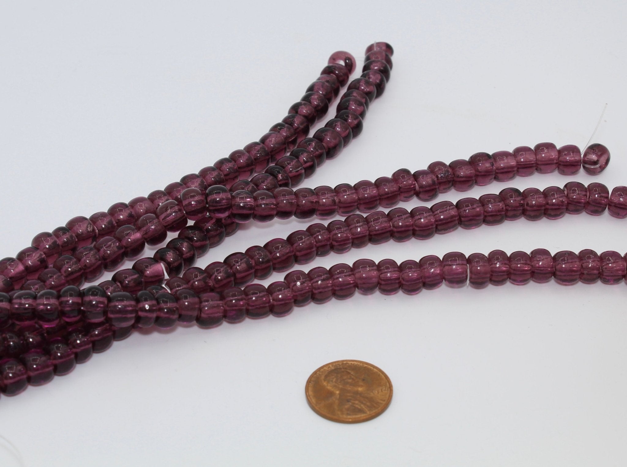 These are glass standard size Crow beads. Standard size Crow beads refer to a particular size of bead (6 x 9mm wide with a 2.5 mm hole) used in traditional Native beadwork.