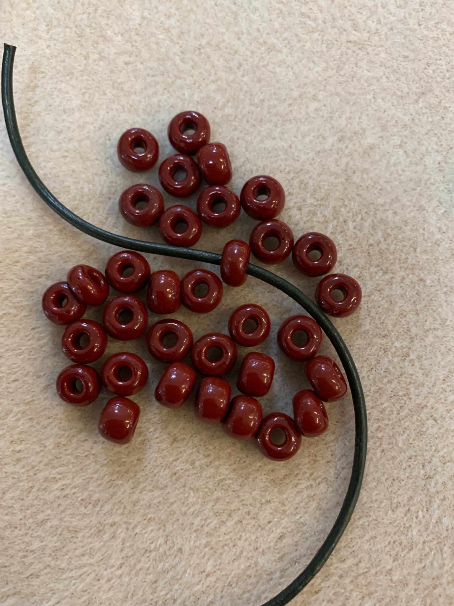 These are glass Mini Crow beads. Mini Crow beads refer to a particular size of bead (5 x 7mm wide with a 2.5 mm hole) used in traditional Native beadwork.
