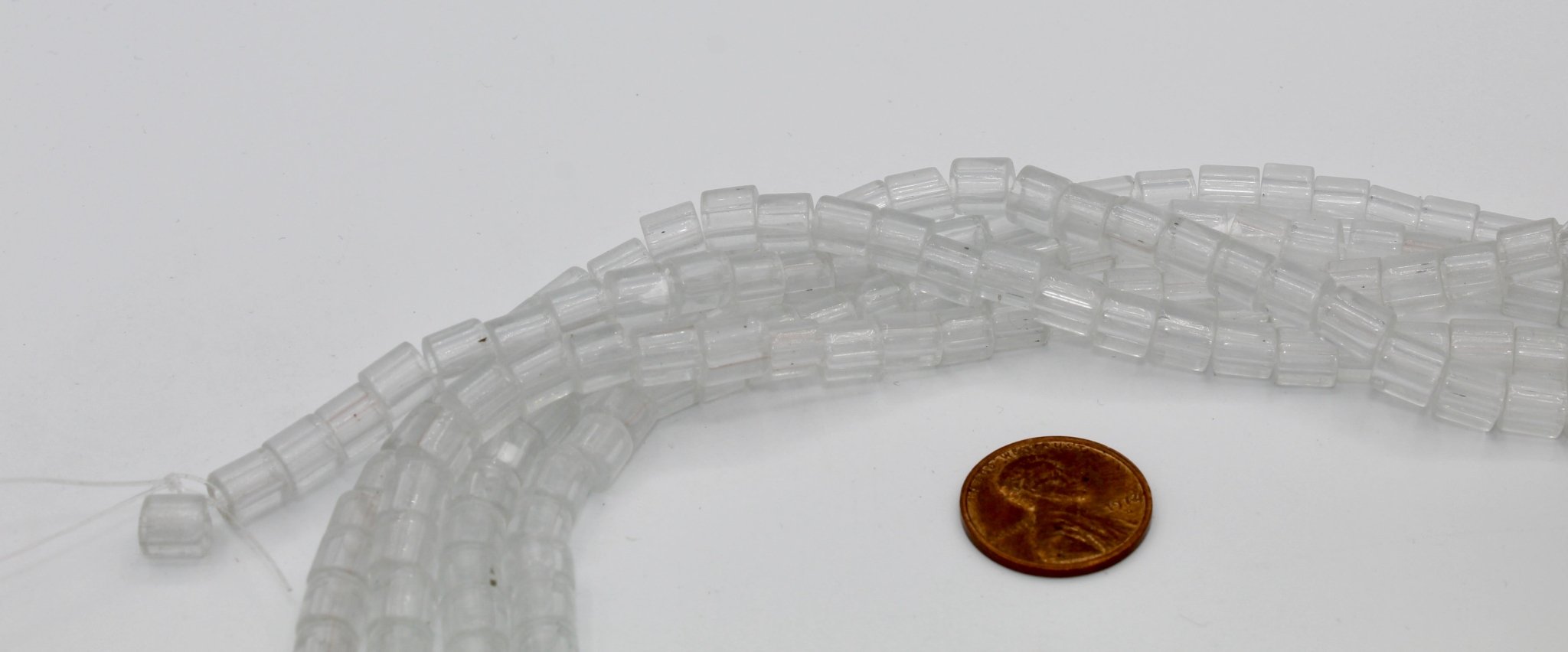 These glass tile beads are cylinder shaped and 6 x 5mm (1/4" x 1/5"). They are traditionally used for chokers, bracelets, necklaces, and spacers.