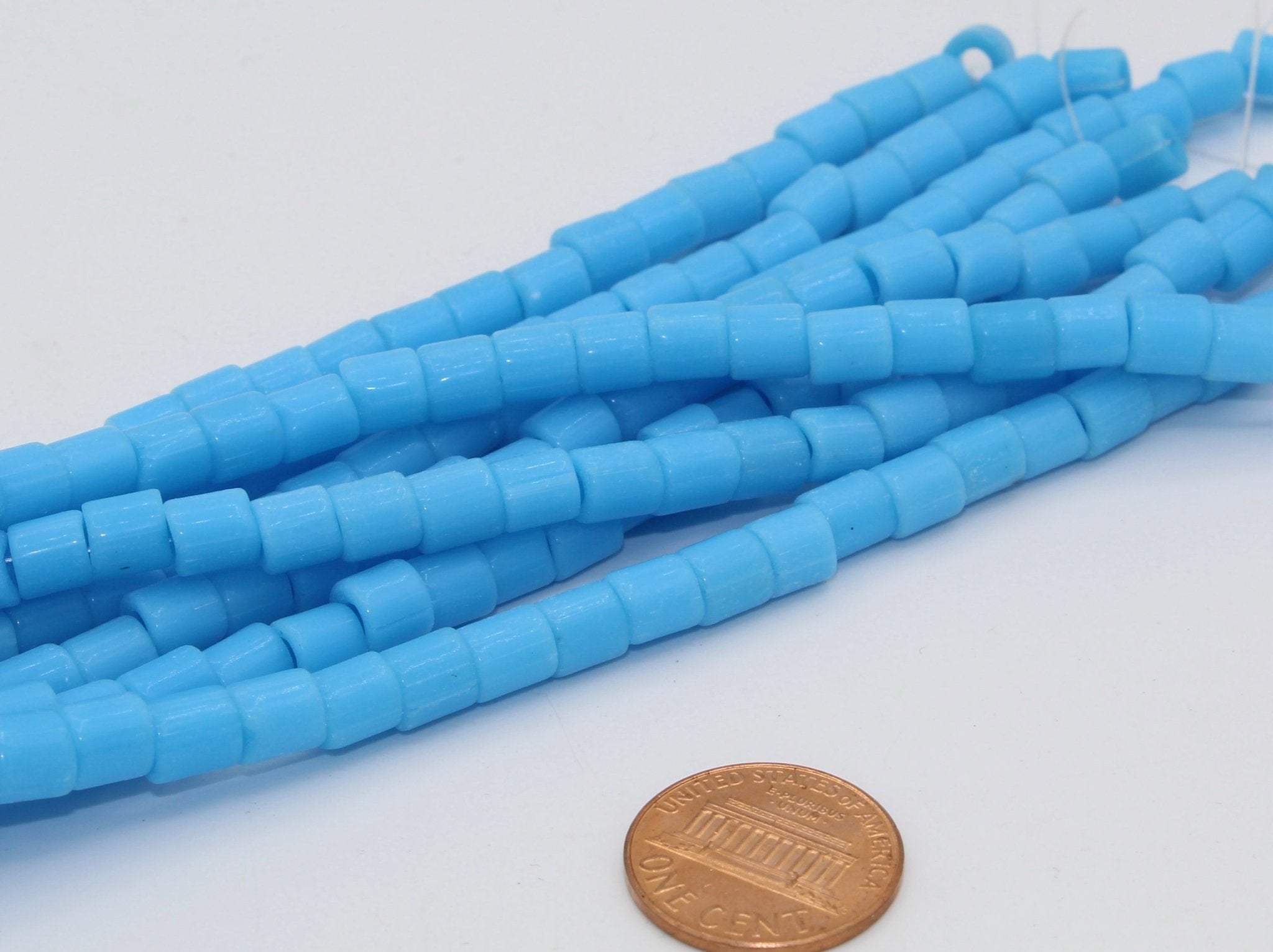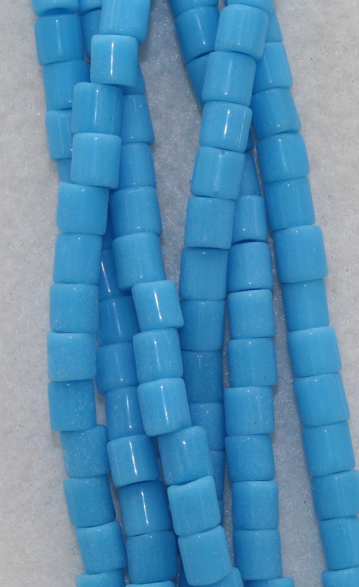 These glass tile beads are cylinder shaped and 6 x 5mm (1/4" x 1/5"). They are traditionally used for chokers, bracelets, necklaces, and spacers.