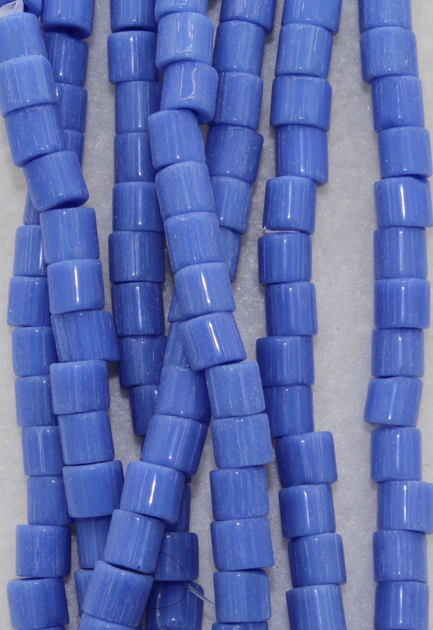 These glass tile beads are cylinder shaped and 6 x 5mm (1/4" x 1/5"). They are traditionally used for chokers, bracelets, necklaces, and spacers.