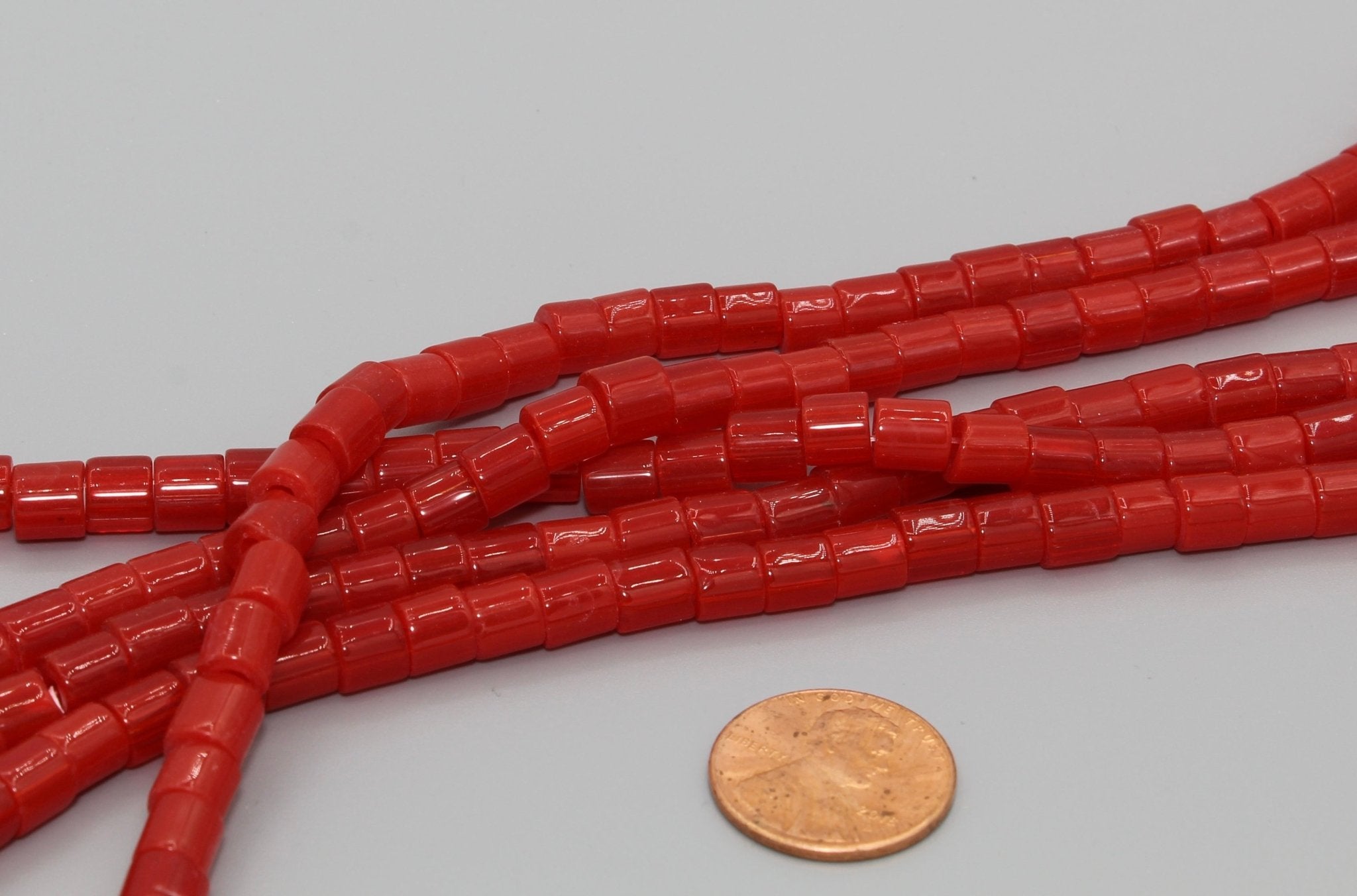 Cylinder Tile Beads - Red Transparent