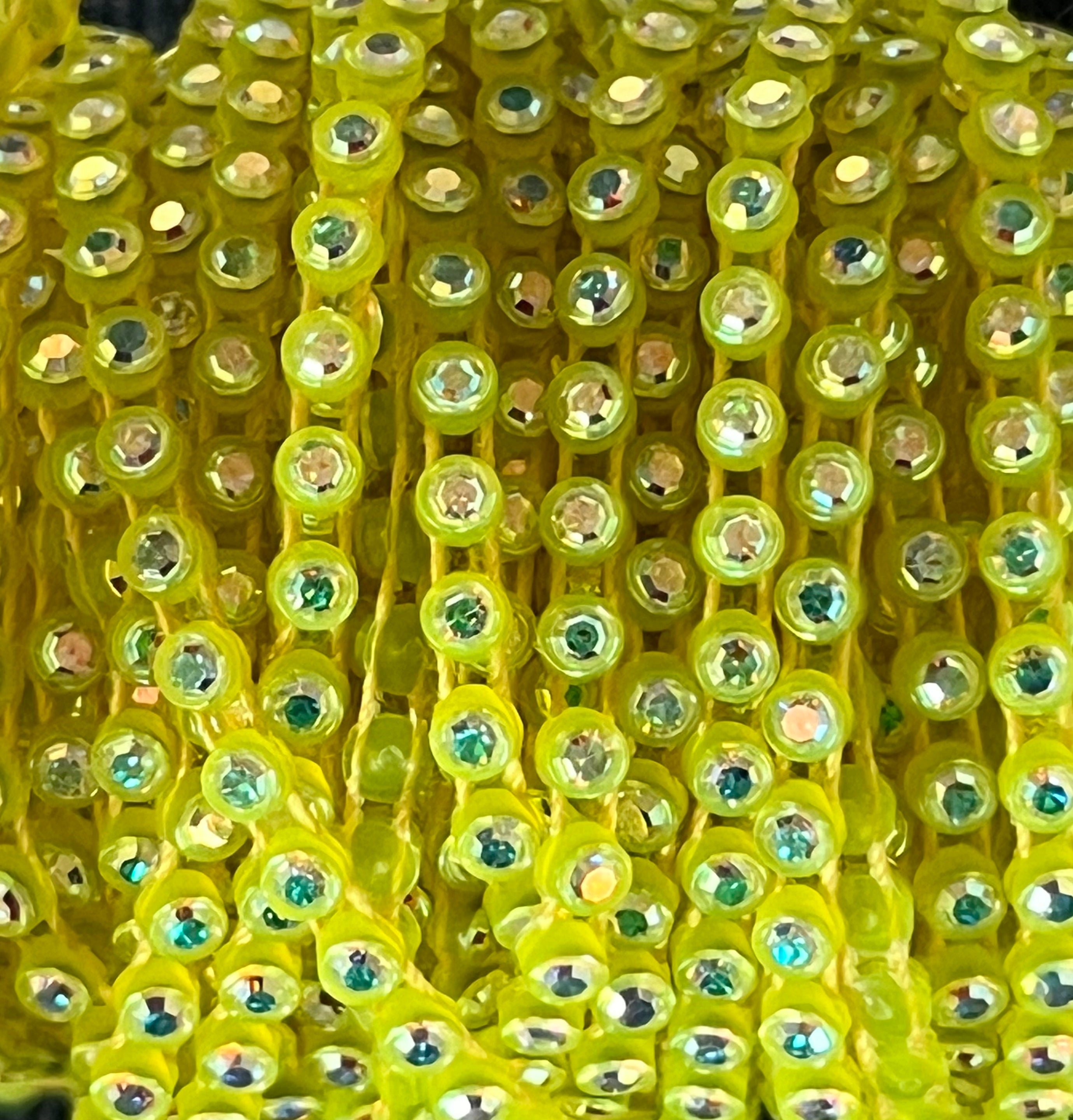 This crystal banding is size SS8 (3mm crystals). The crystals are crystal AB set in yellow banding.