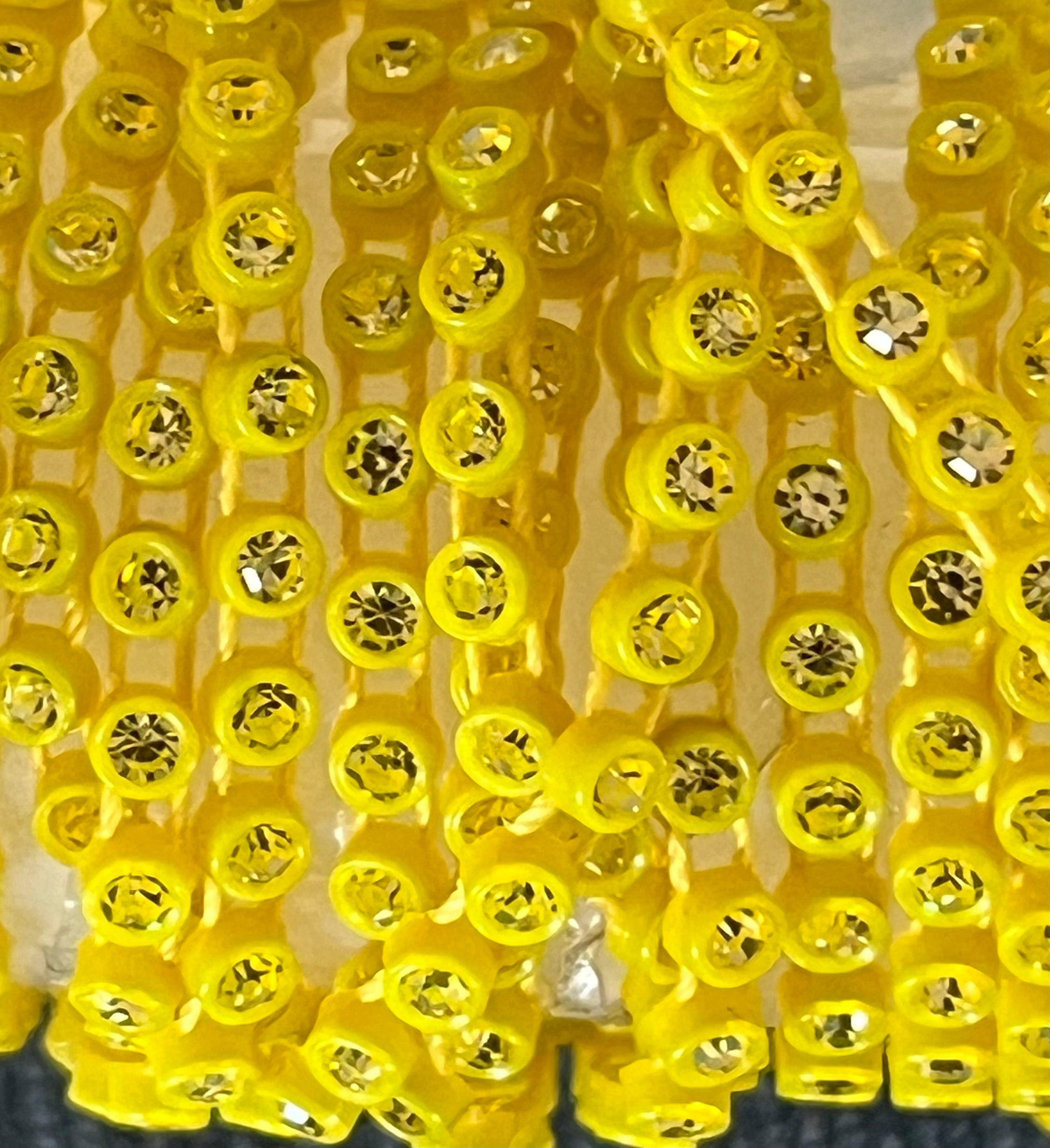 This crystal banding is size SS8 (3mm crystals). The crystals are clear set in bright yellow banding.