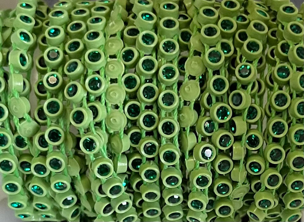 This crystal banding is size SS13 (3mm crystals). It has green crystals set in green banding.