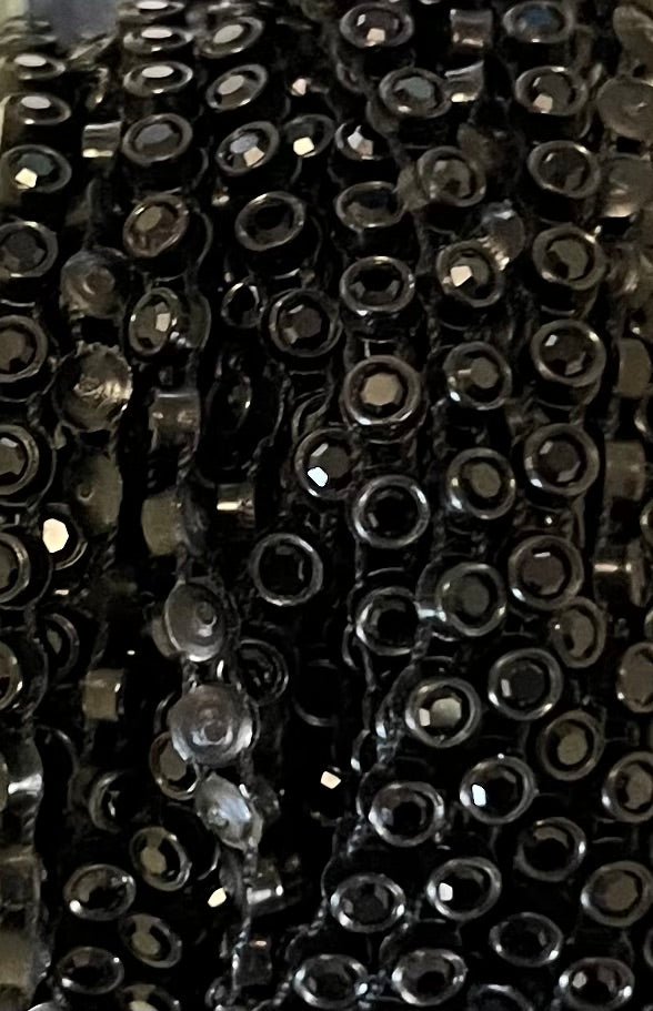 This crystal banding is size SS8 (3mm crystals). The crystals are black set in black banding.