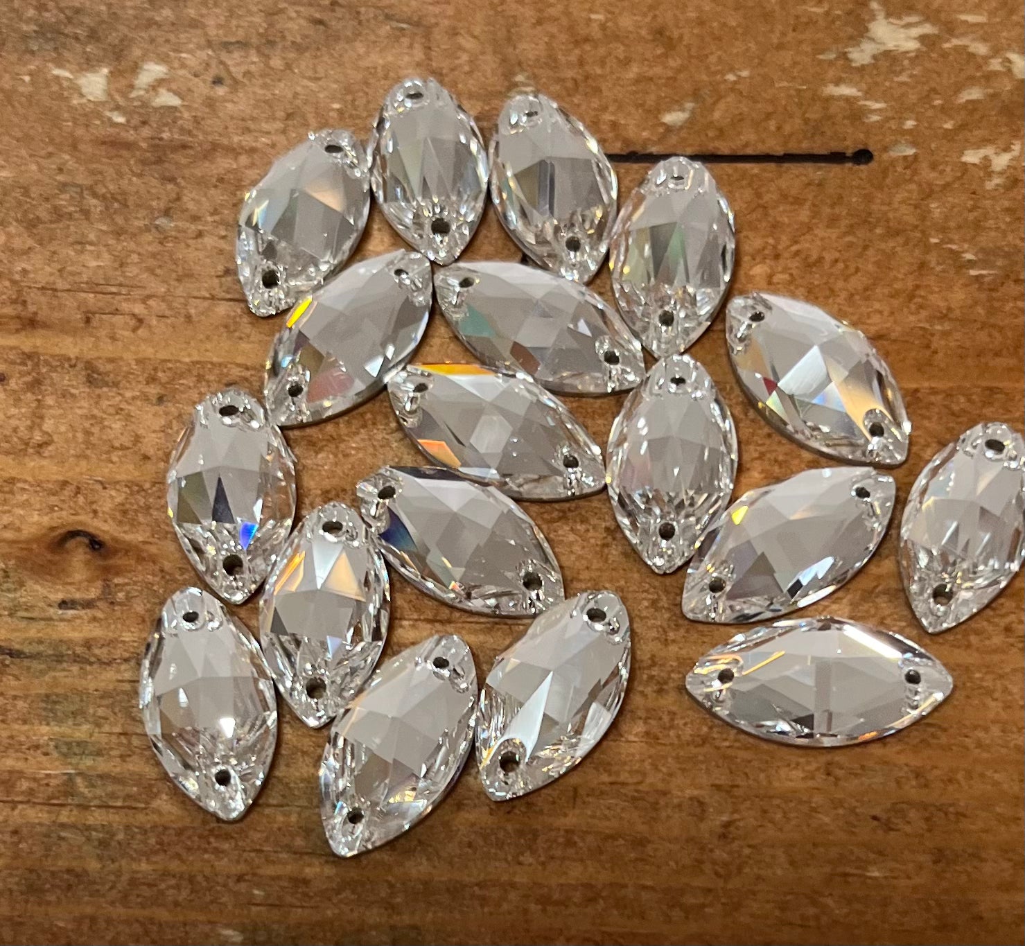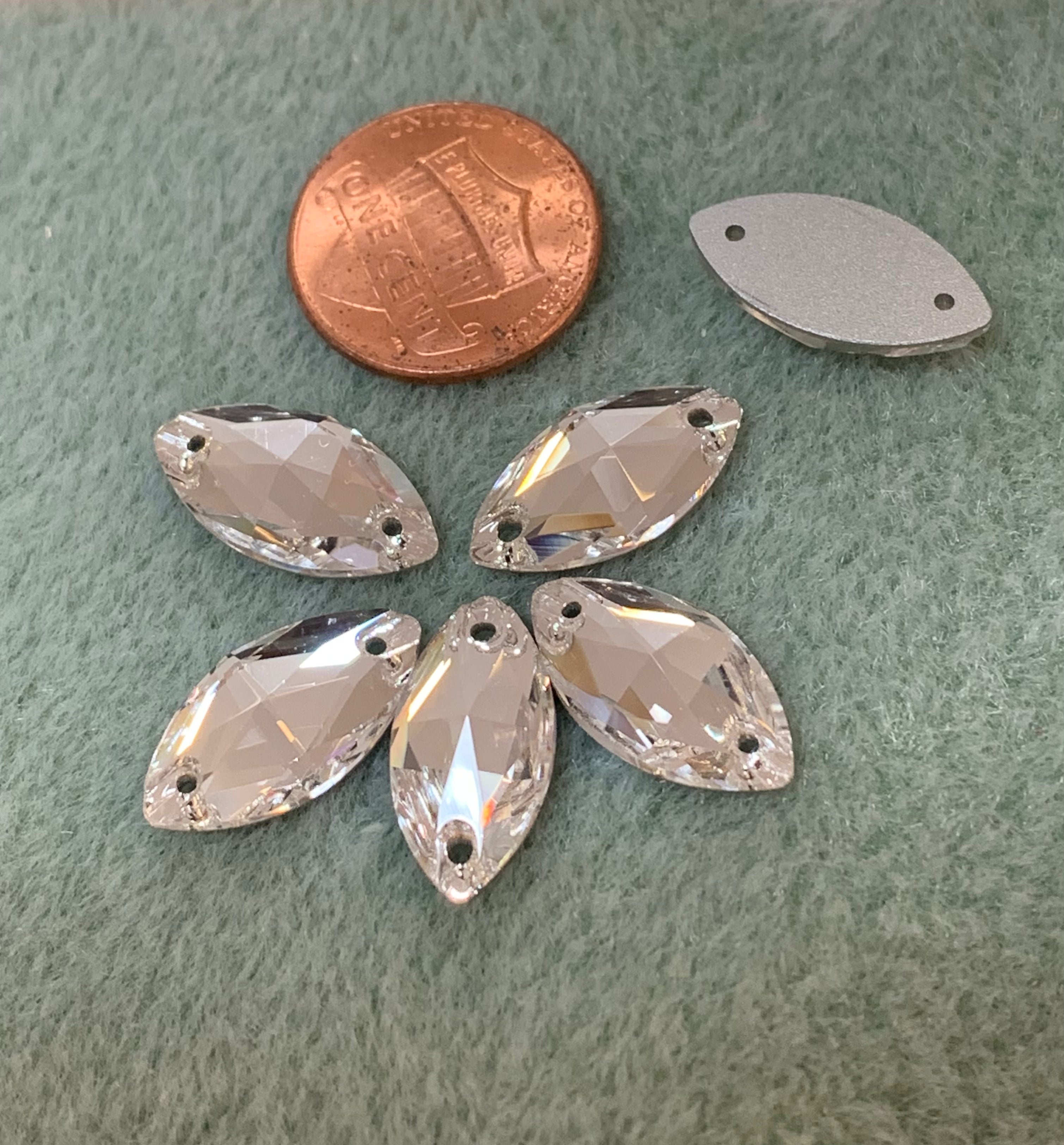 These Preciosa crystals are 18 x 9mm with 2 holes to sew onto bead foundation. These crystals have a silver foil backing and are often used in bead embroidered earrings.
