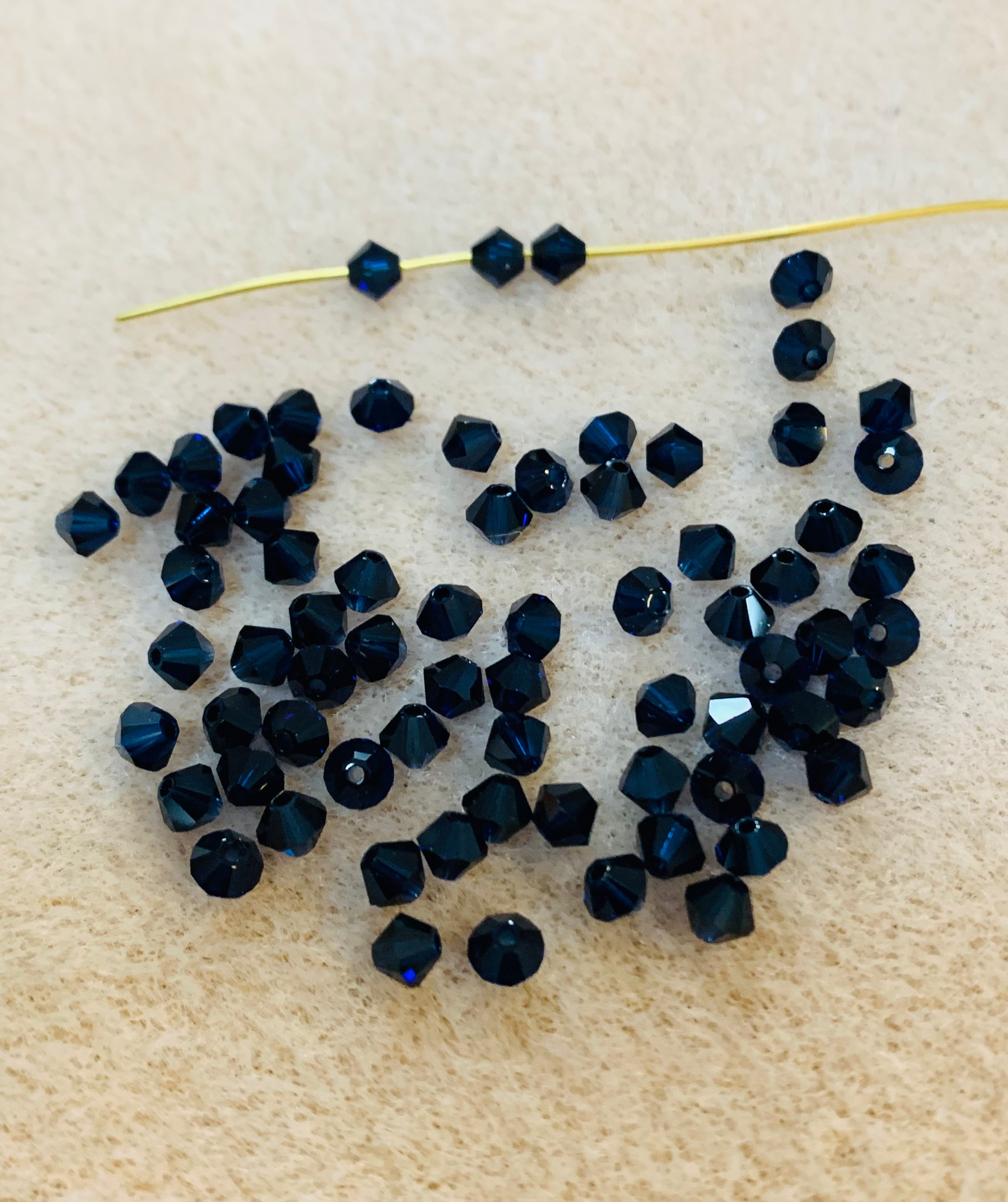 These Swarovski Crystal bicones are dark blue colored. They are sold in a 1/2 gross package (72 beads).