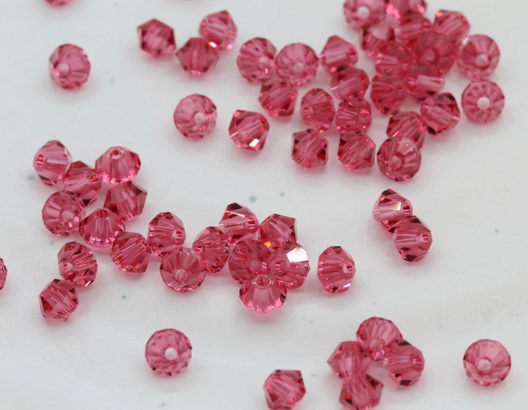 These Swarovski Crystal bicone beads are 3mm. They are sold in a 1/2 gross package (72 beads).
