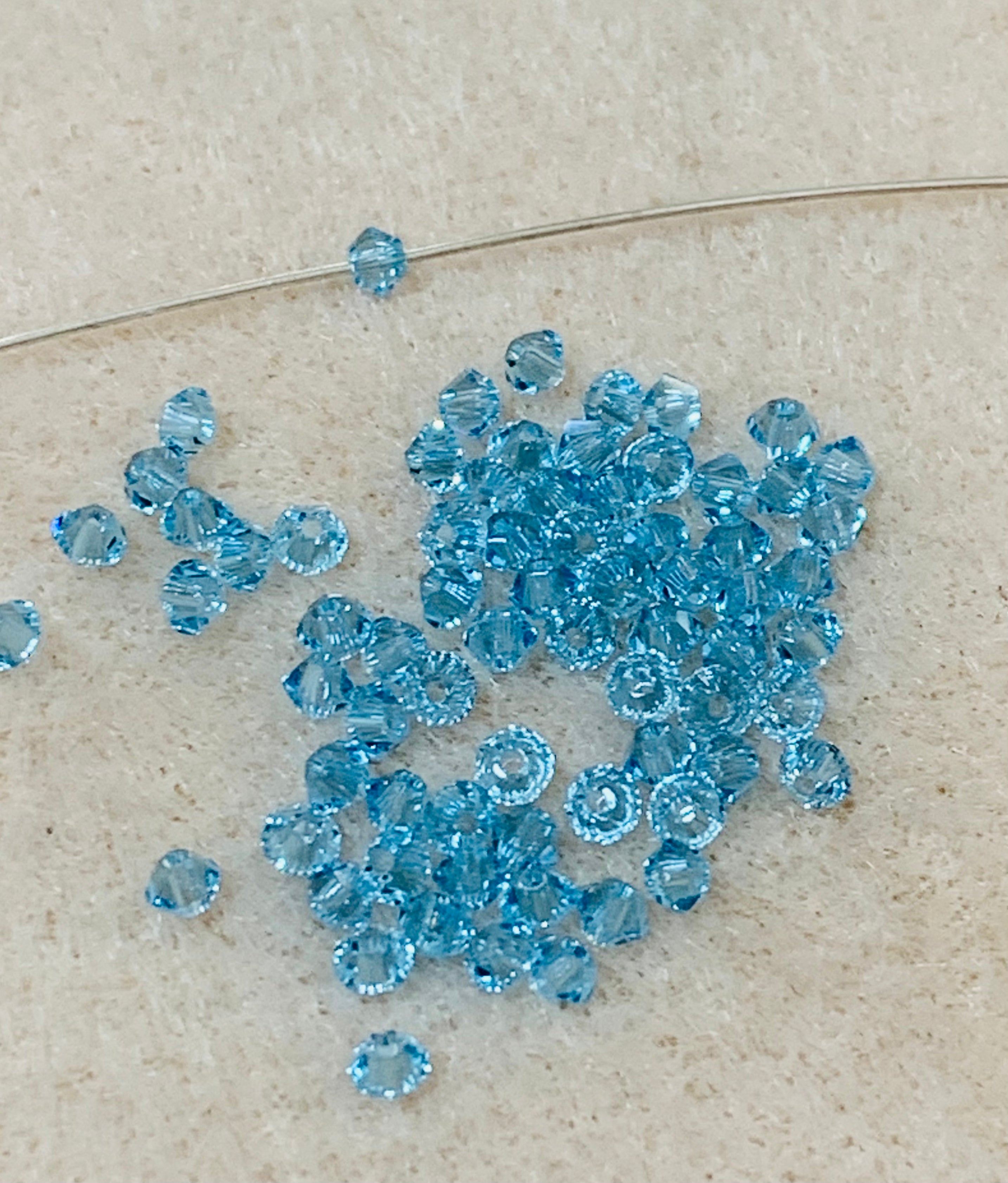 These Swarovski Crystal bicone beads are 3mm. They are sold in a 1/2 gross package (72 beads).