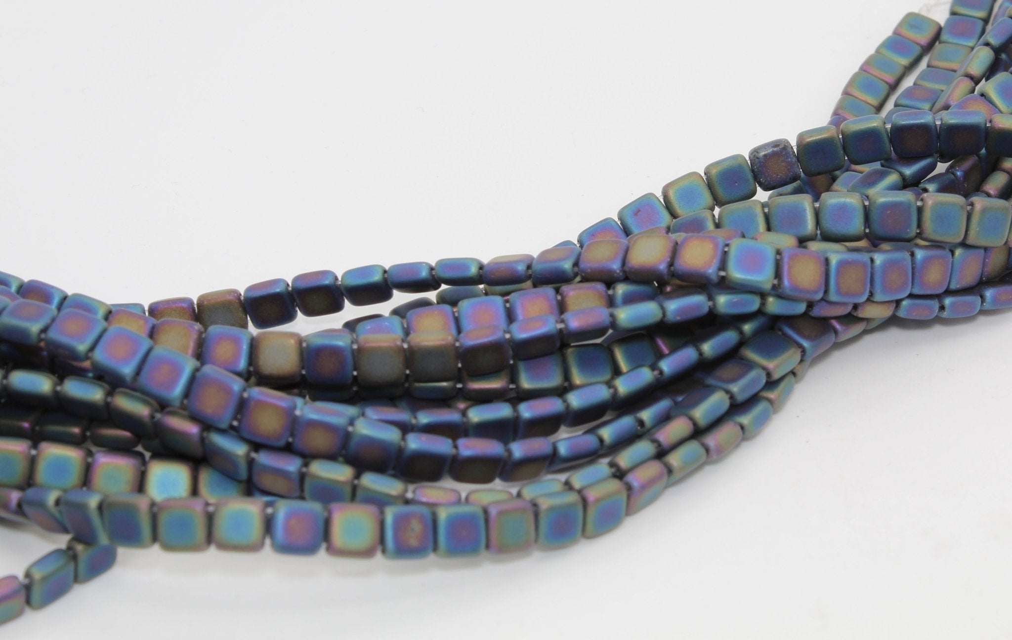 These Czech Mate Tile beads are 6mm square beads with two holes. They are ideal for wrap bracelets, bead embroidery and mosaic projects.