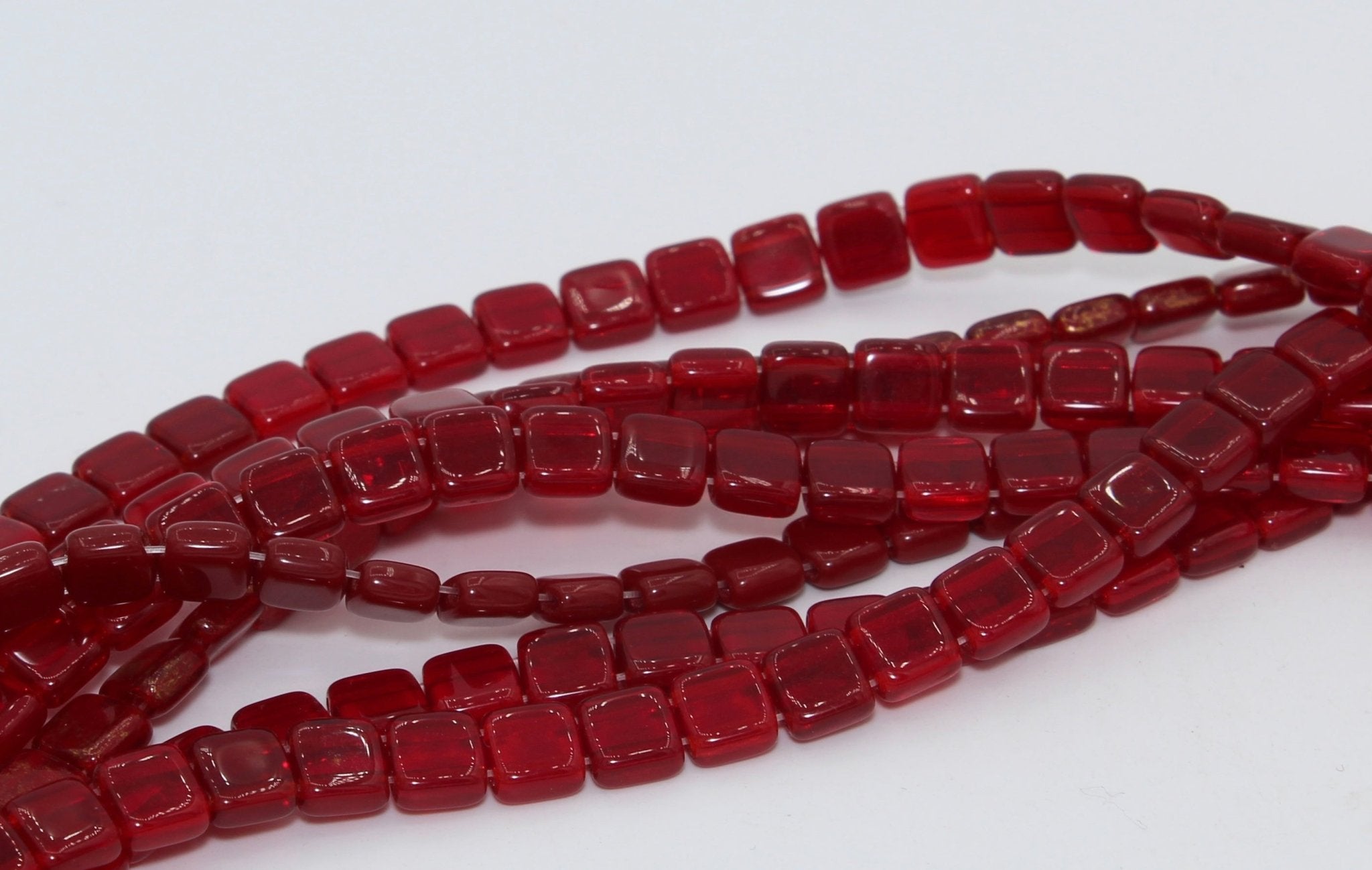 Dark Siam Ruby Czech Mate Tile Beads - 6mm