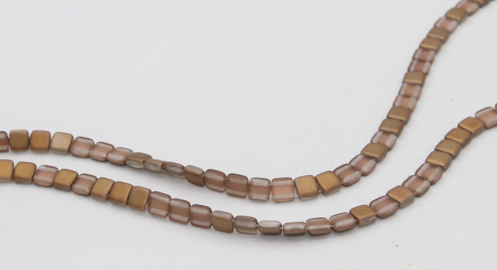 Matte Pink Gold Czech Mate Tile Beads - 6mm
