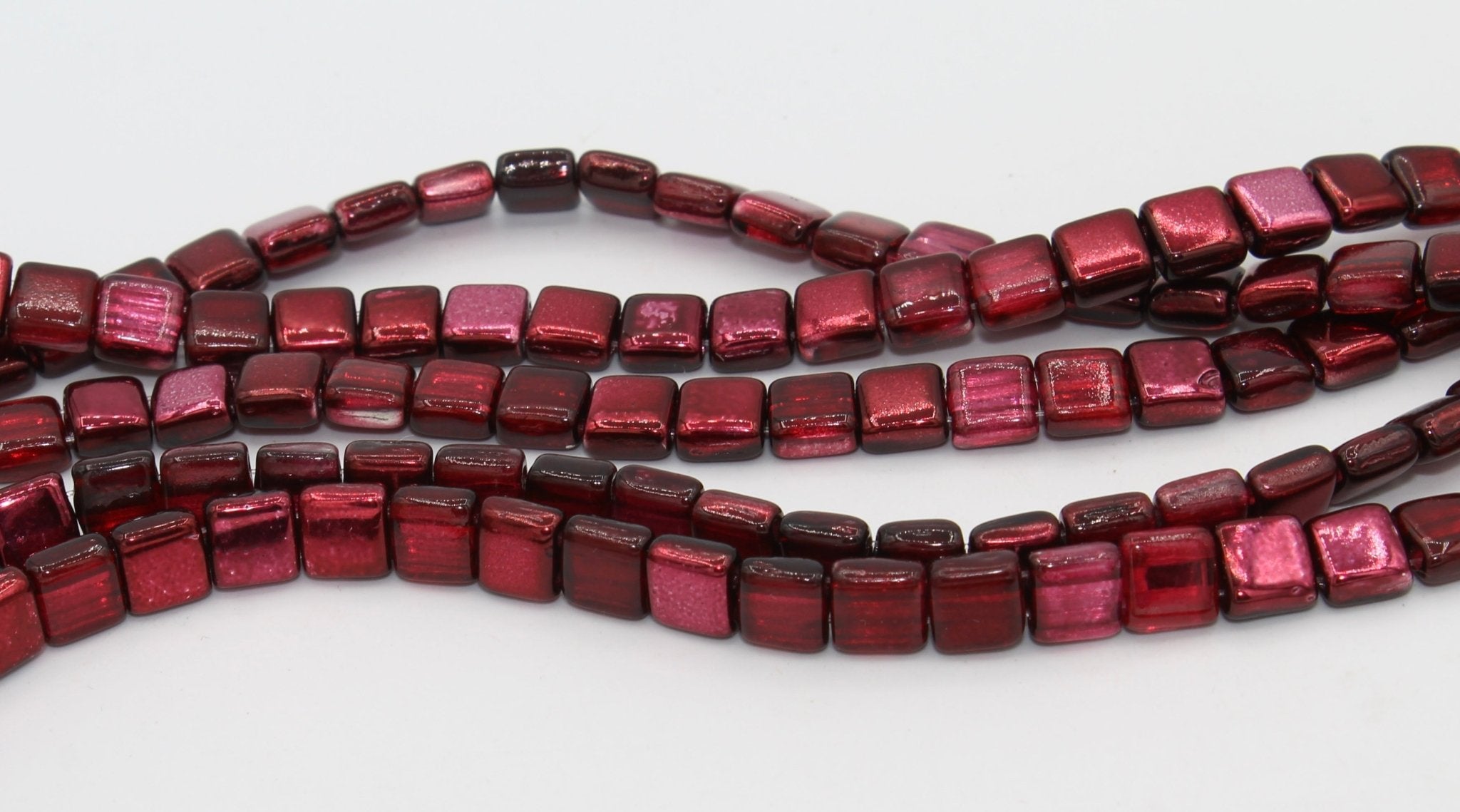 Mirror Cranberry Czech Mate Tile Beads - 6mm