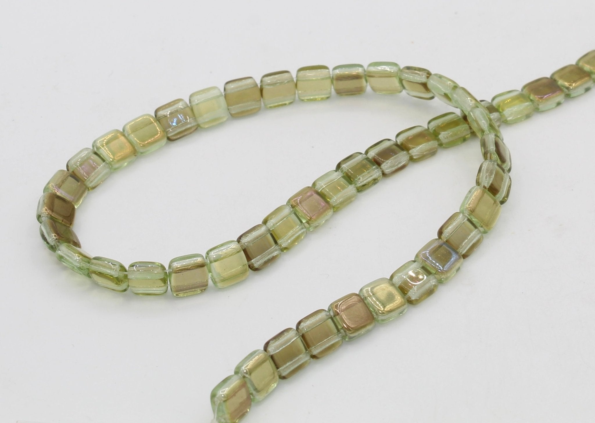 These Czech Mate Tile beads are 6mm square beads with two holes. They are ideal for wrap bracelets, bead embroidery and mosaic projects.