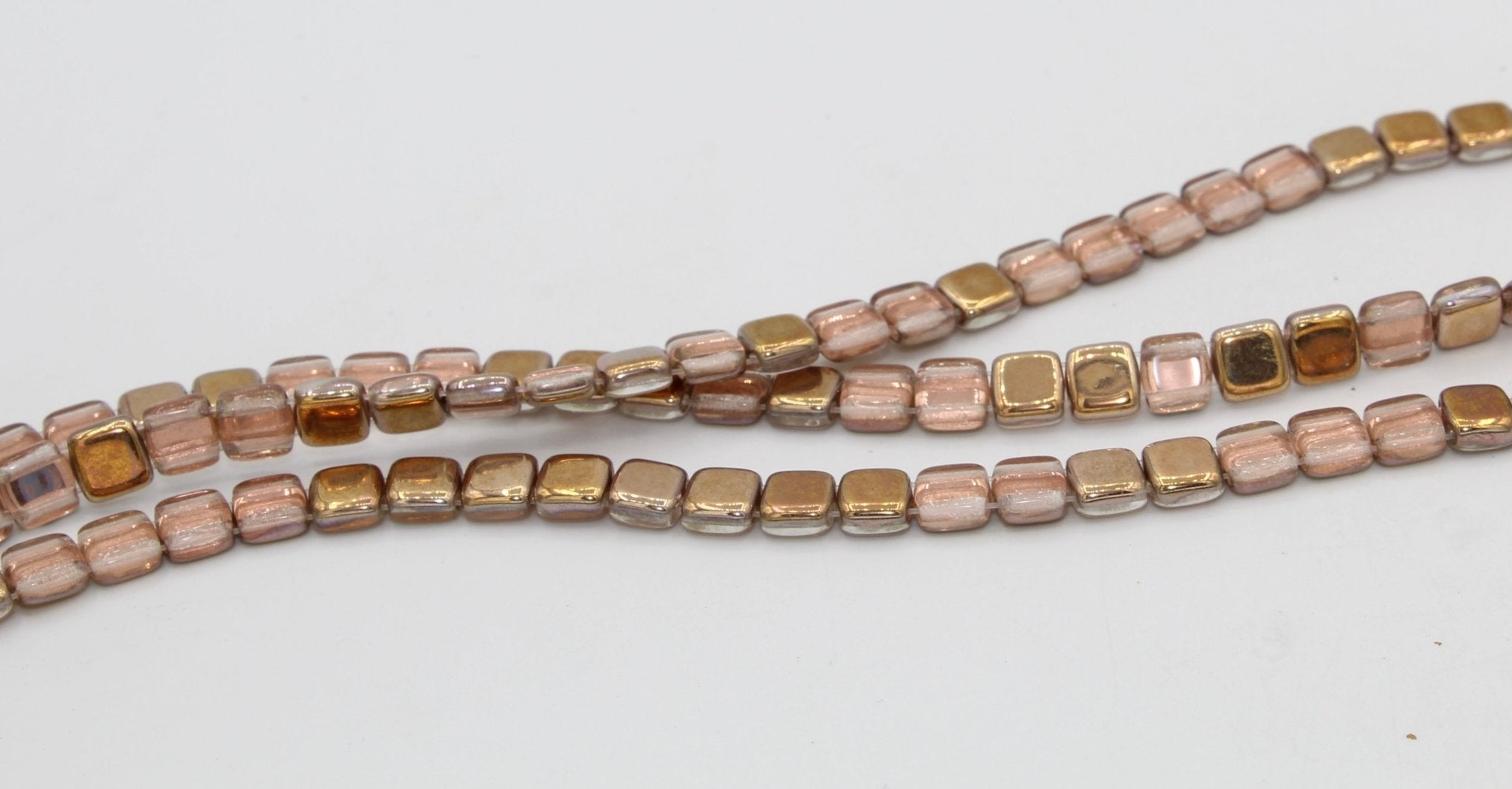 Pink Gold Czech Mate Tile Beads - 6mm