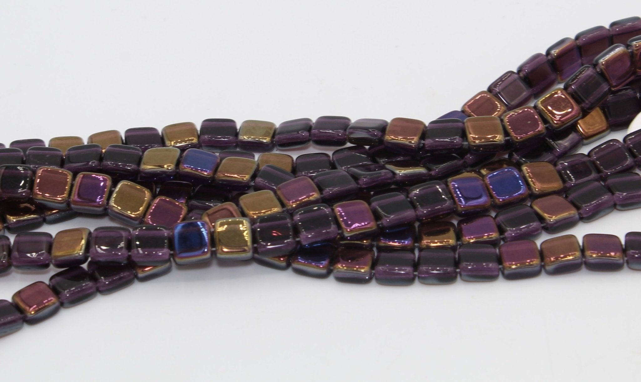 These Czech Mate Tile beads are 6mm square beads with two holes. They are ideal for wrap bracelets, bead embroidery and mosaic projects.