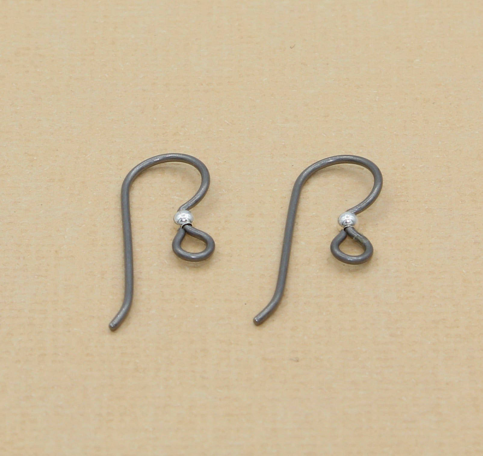 These ear wires are niobium wire with a sterling silver ball embellishment. They are 24mm (7/8”) long and made with 20 gage wire. The loop opens and closes with pliers to attach a headpin.