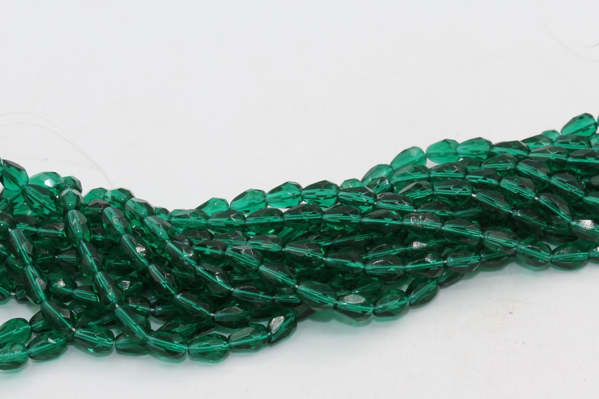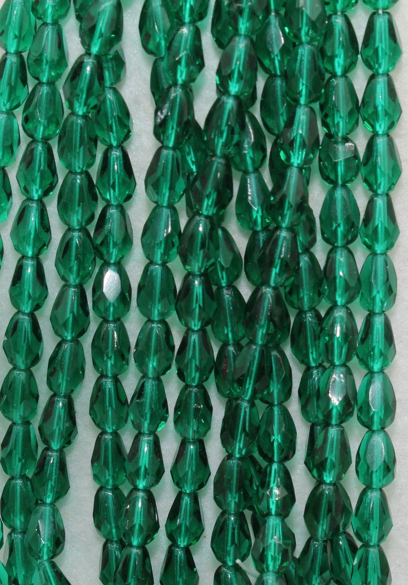 Emerald - Faceted Glass Teardrops - 7 x 5mm
