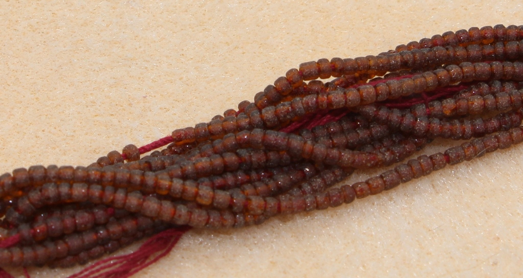 Garnet is usually a deep red color, though more expensive forms can present in peach, green and clear. Hessonite garnet is a deep brownish red color.