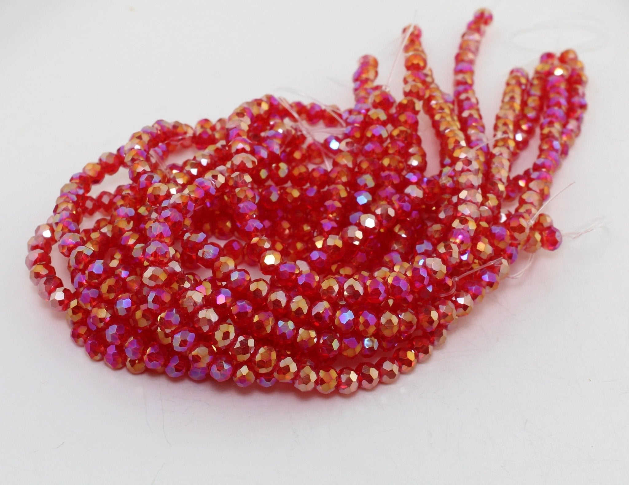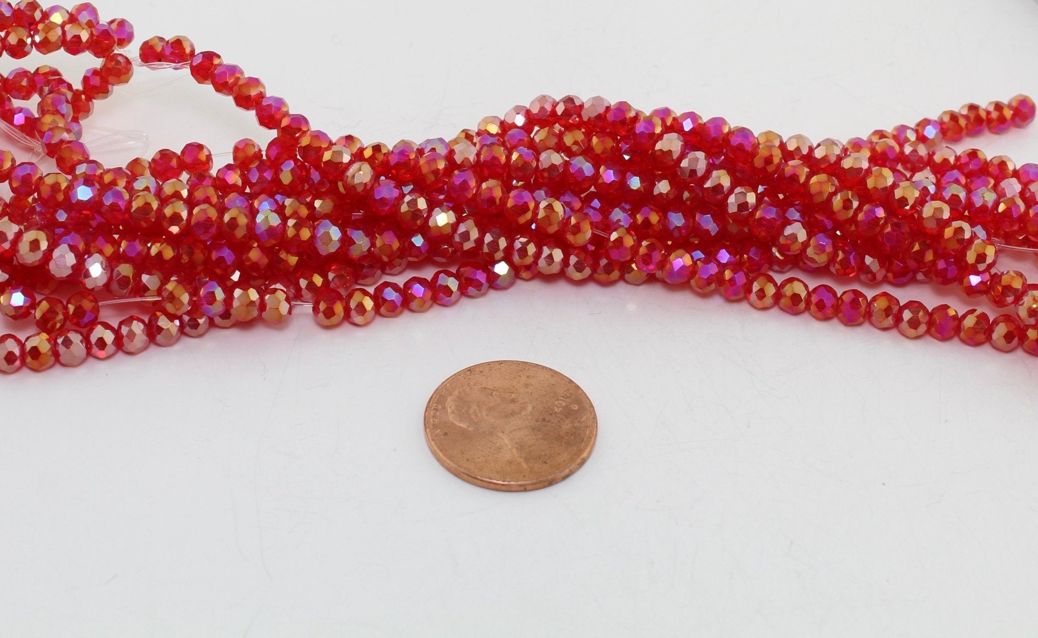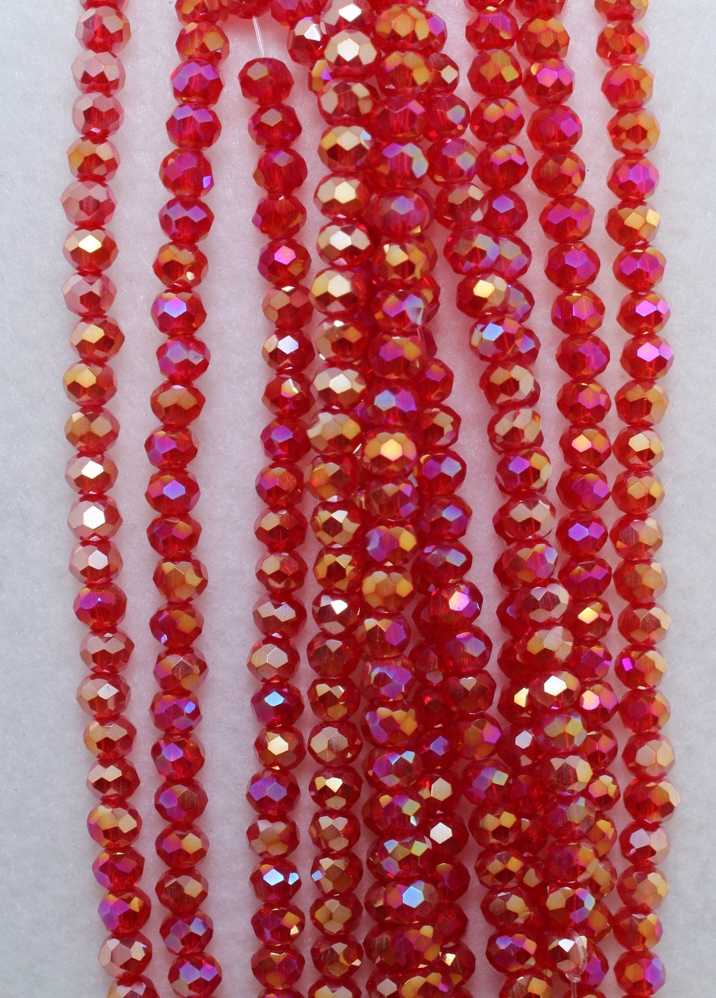 Transparent Red AB - 3 x 4mm Faceted Rondelles