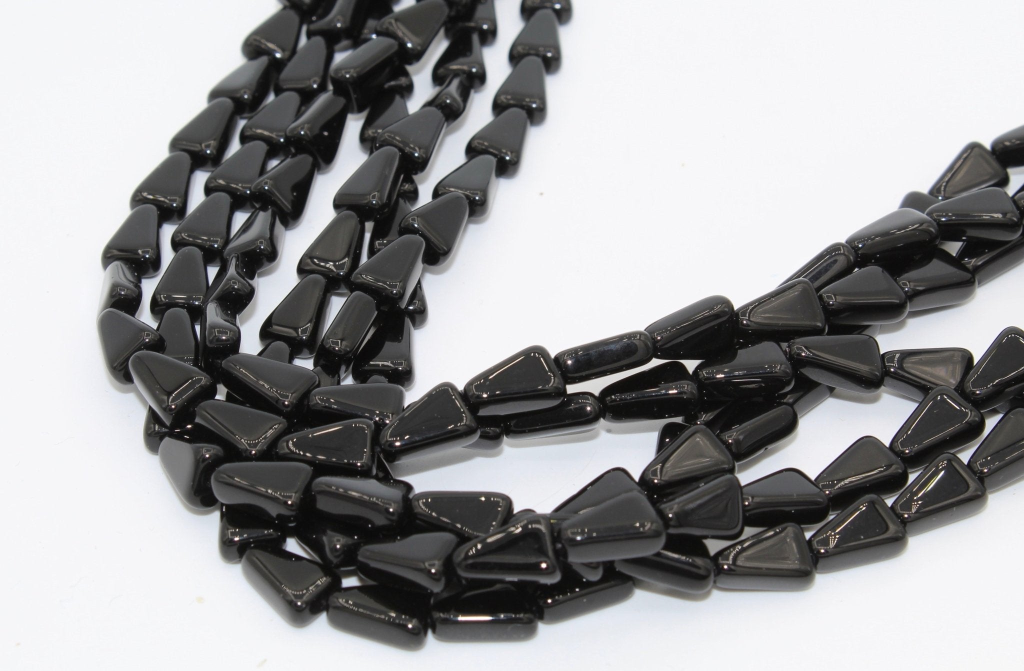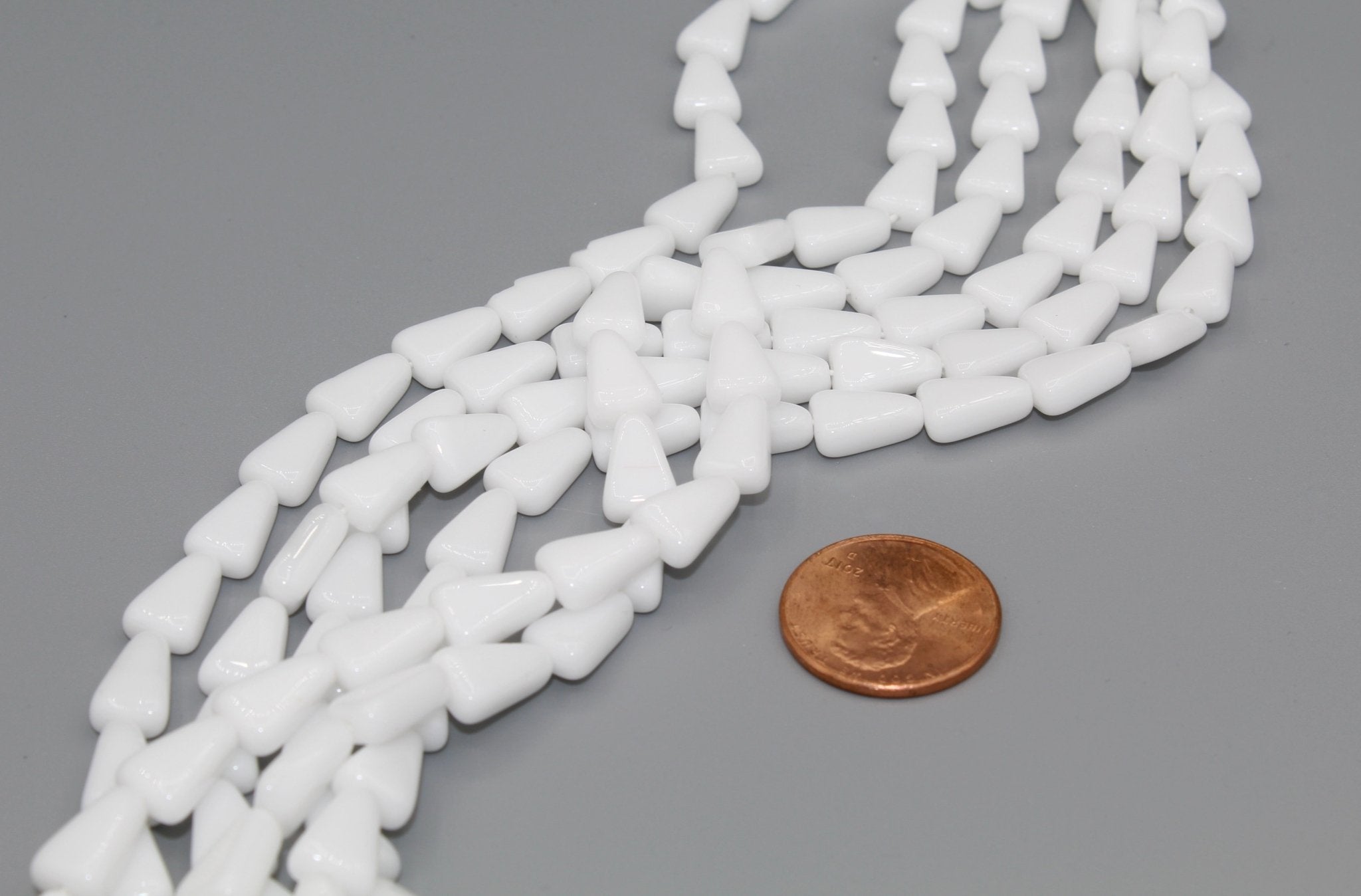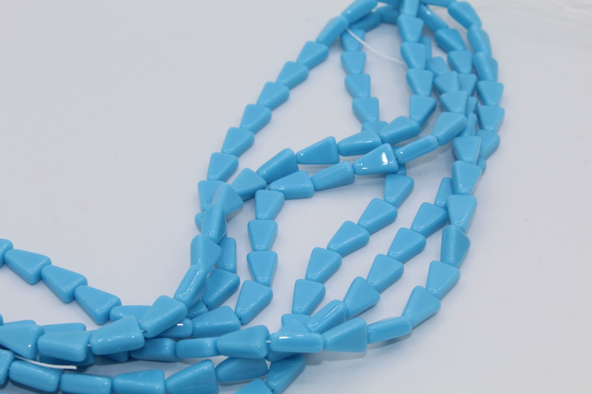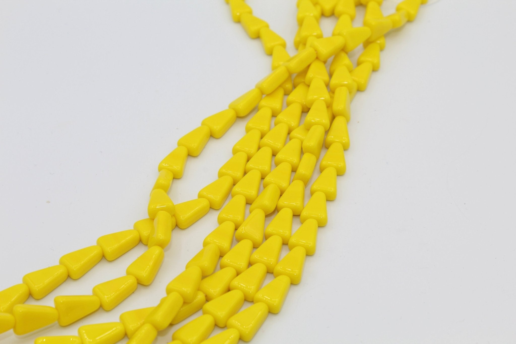 Our glass triangle beads are 10 x 7mm (.4" x .25") and have a hole running vertically. Triangle beads are often strung to create beaded earrings, necklaces and bracelets. They are also used in bead embroidery and mosaics. They come in a variety of colors most commonly used in Native American and western jewelry.