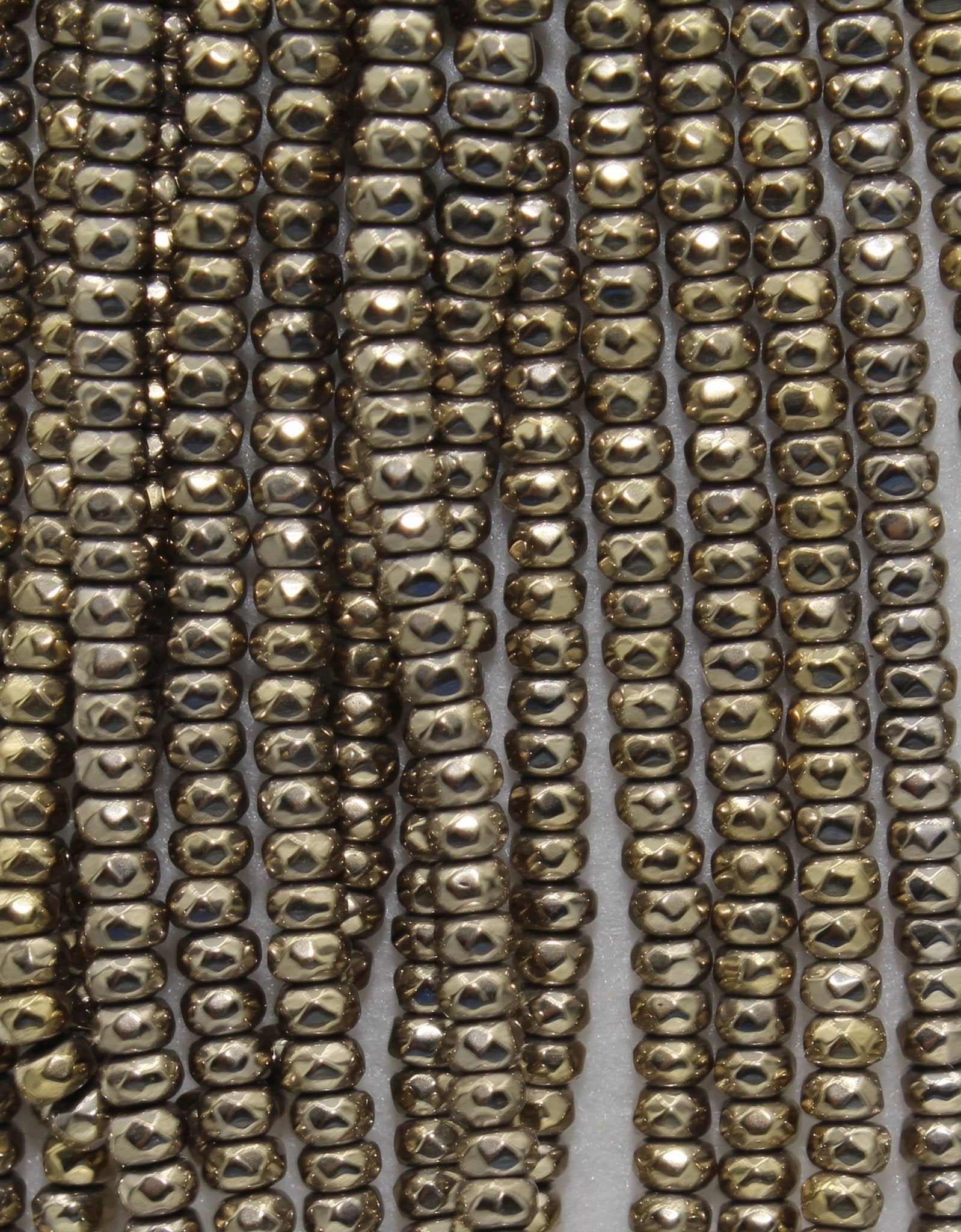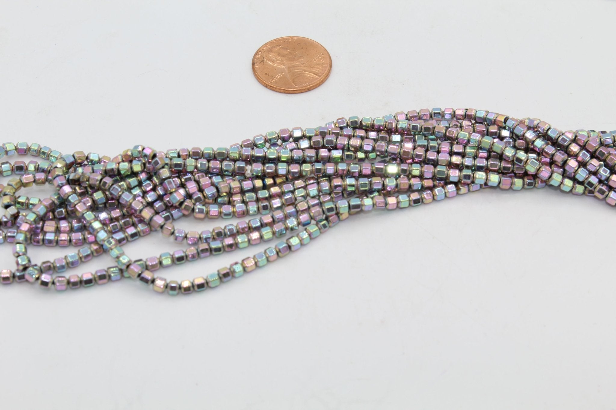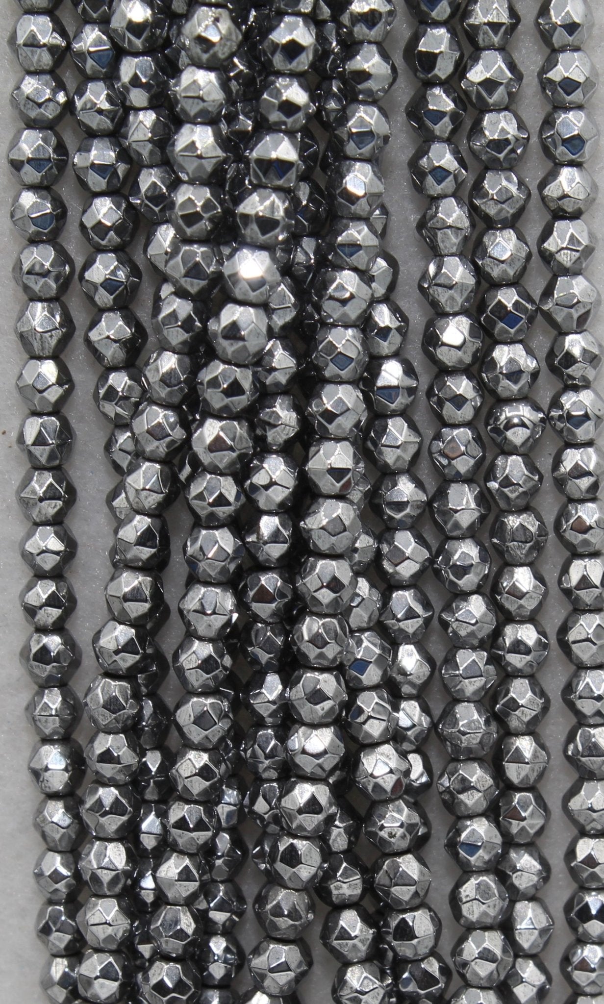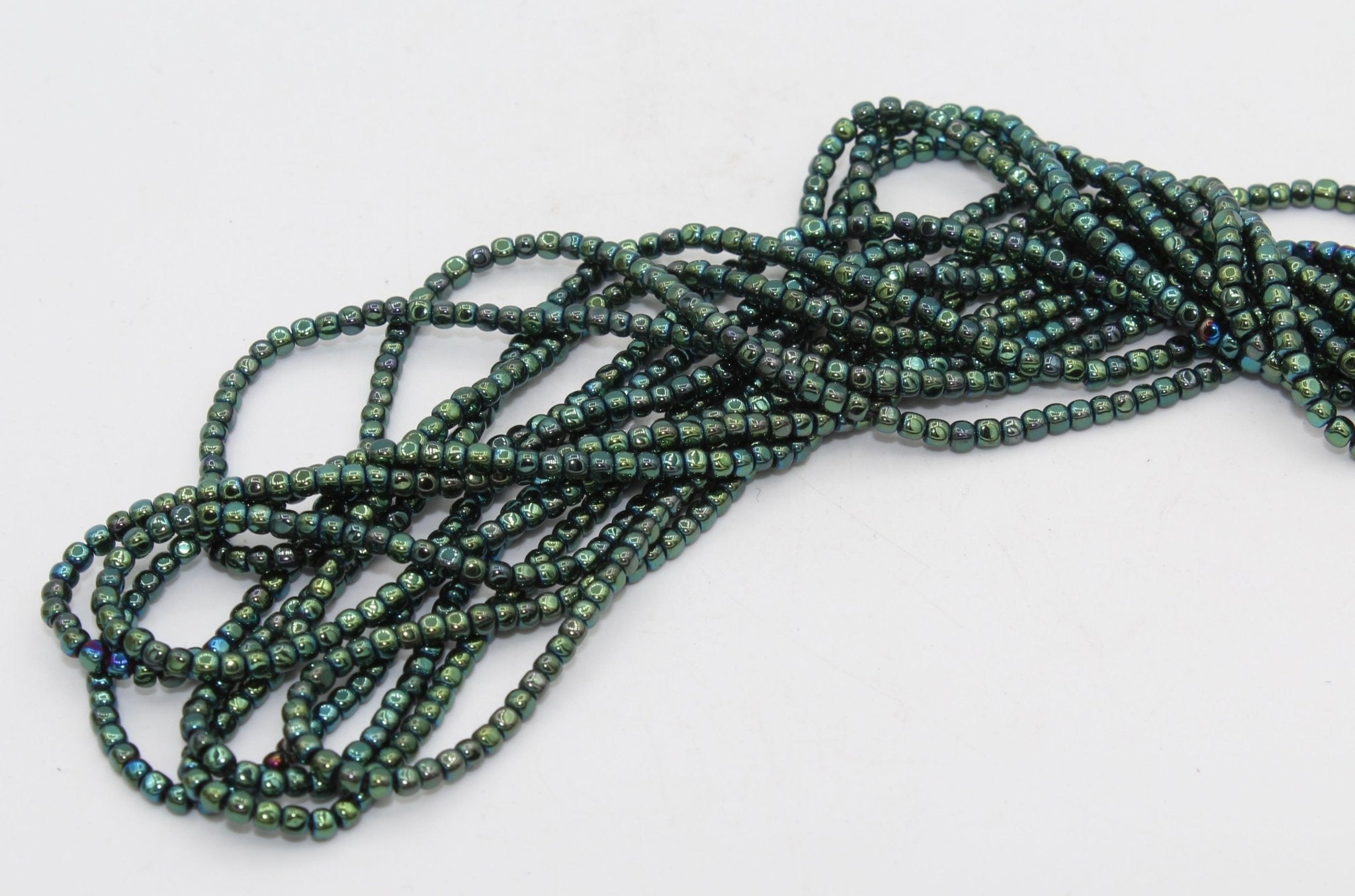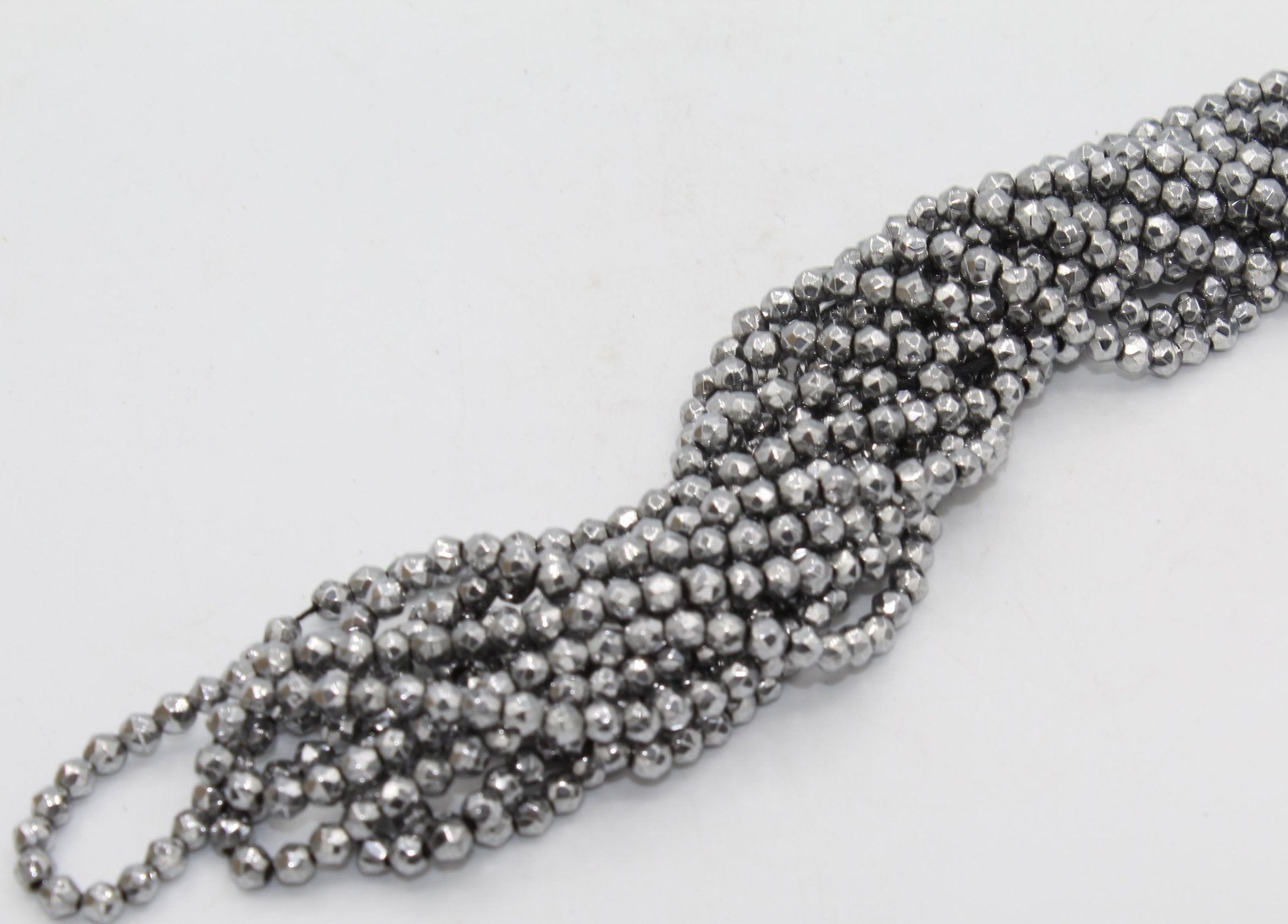 Hematite is a form of Iron Oxide. It can range in colors from black, silver-steel to reddish brown. It is often coated with metallic or AB finishes.