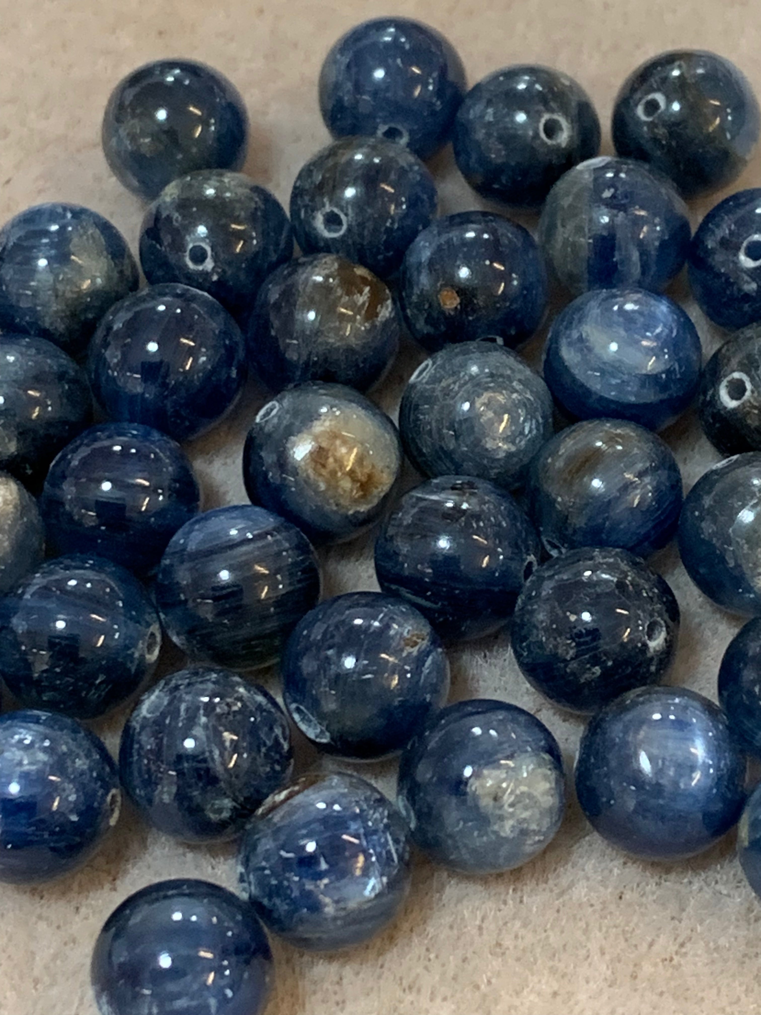 These high grade Kyanite beads are deep blue-gray and are 10mm (2/5”) in diameter. They are sold individually.