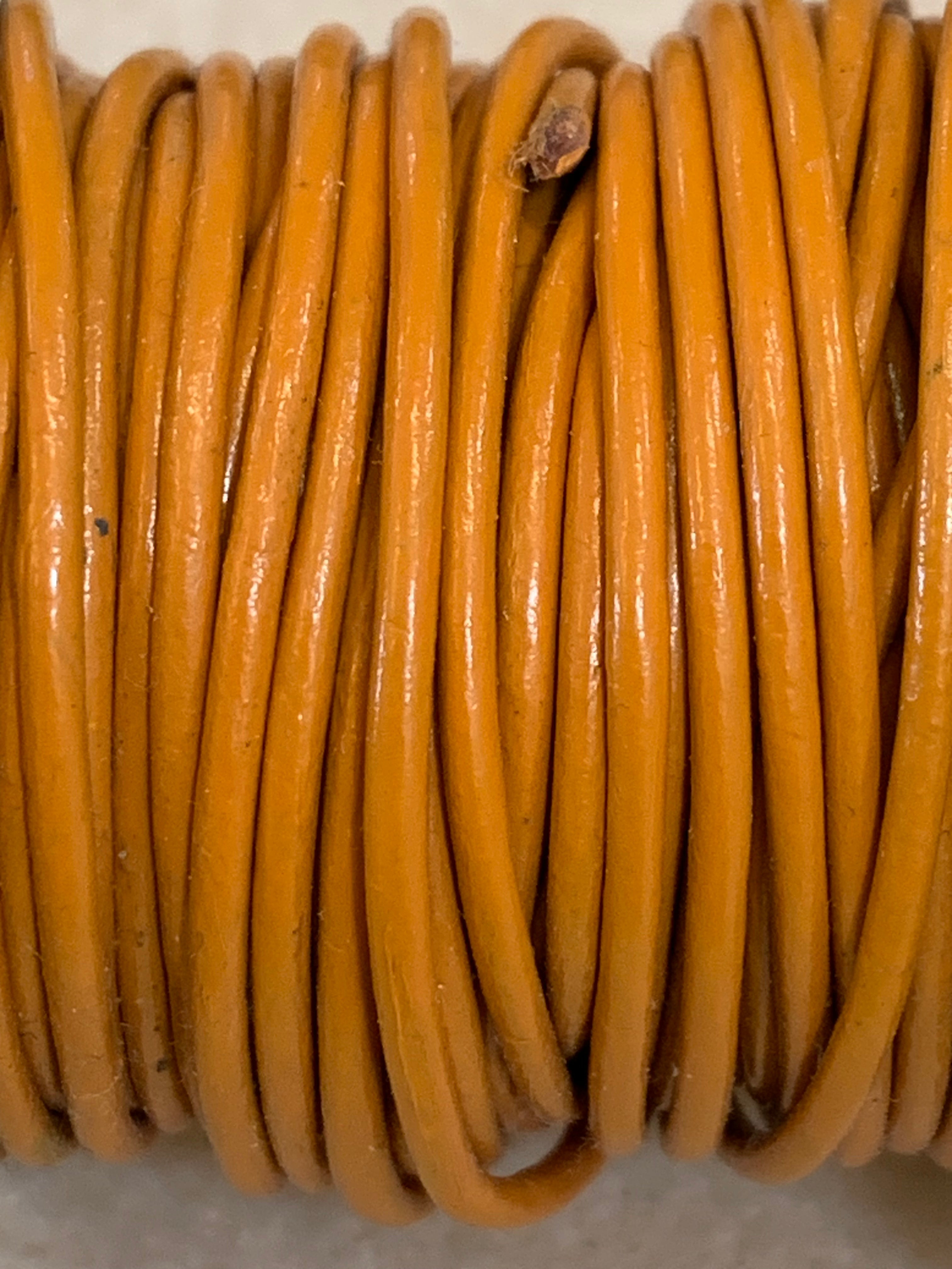This leather is 1.5mm in diameter and sold by the spool. Each spool is approximately 33 feet (10 meters) long.