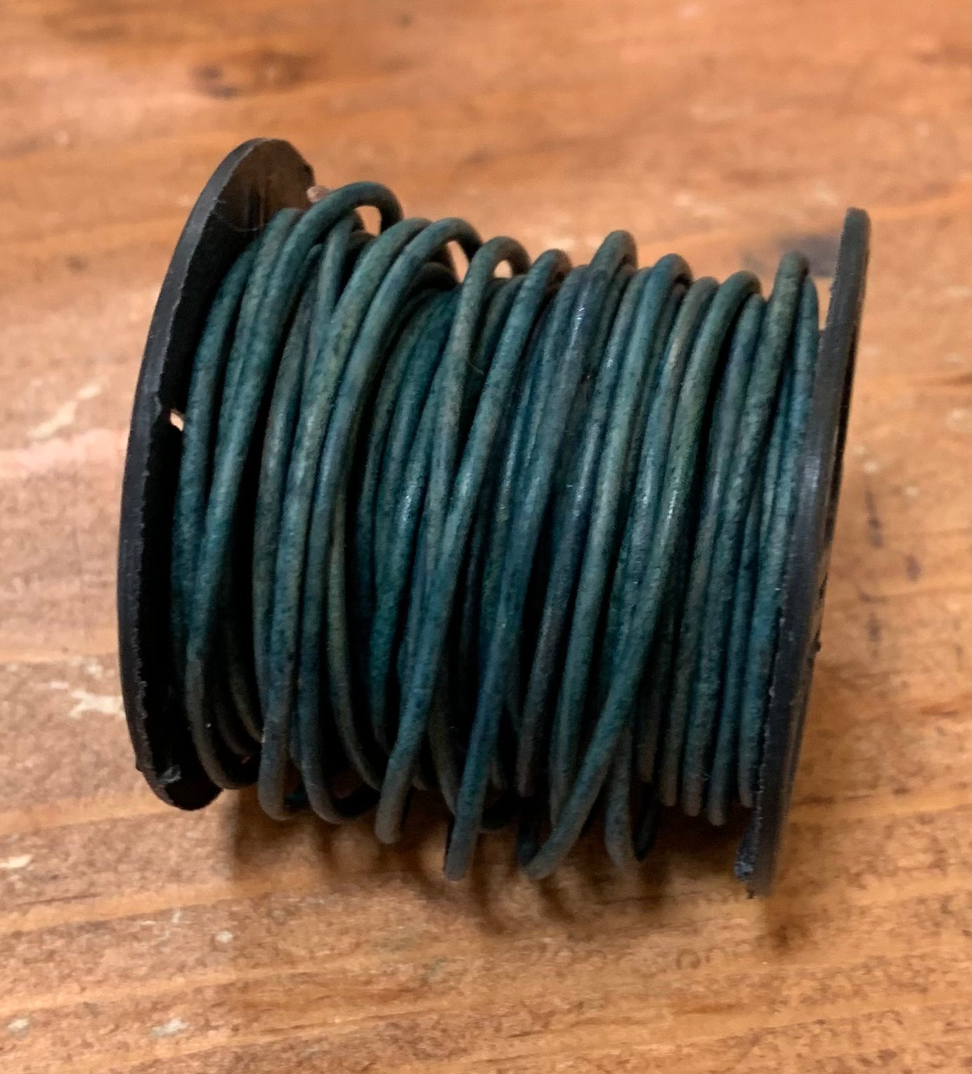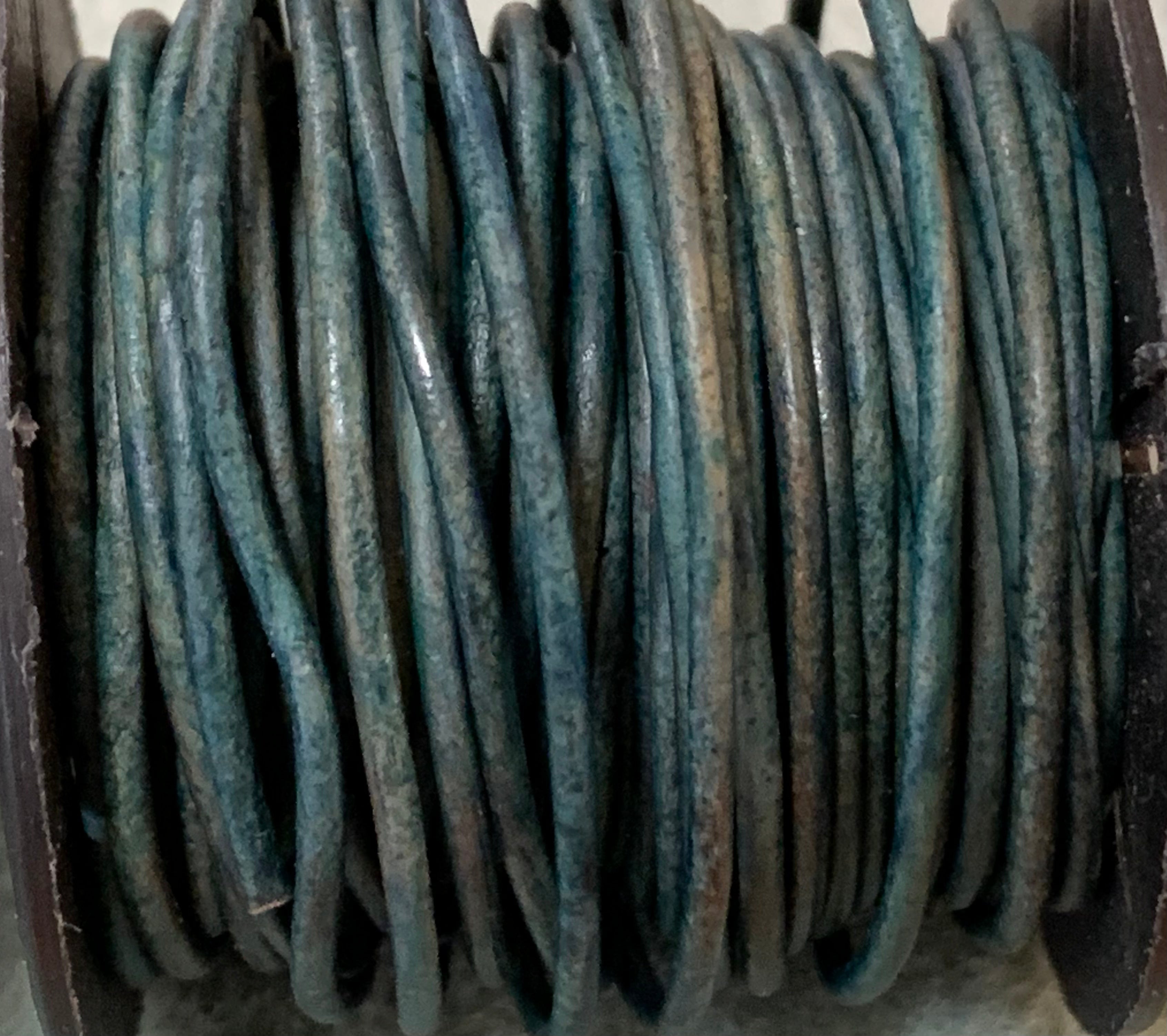 This leather is 1.5mm in diameter and sold by the spool. Each spool is approximately 33 feet (10 meters) long.