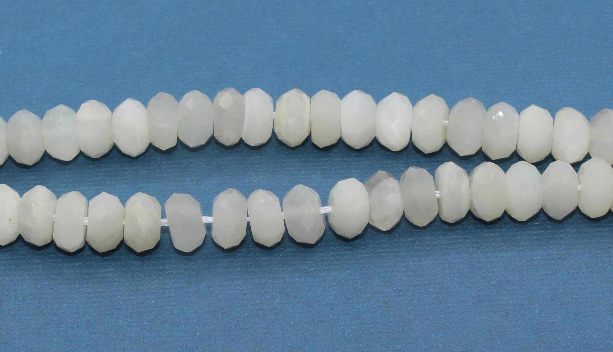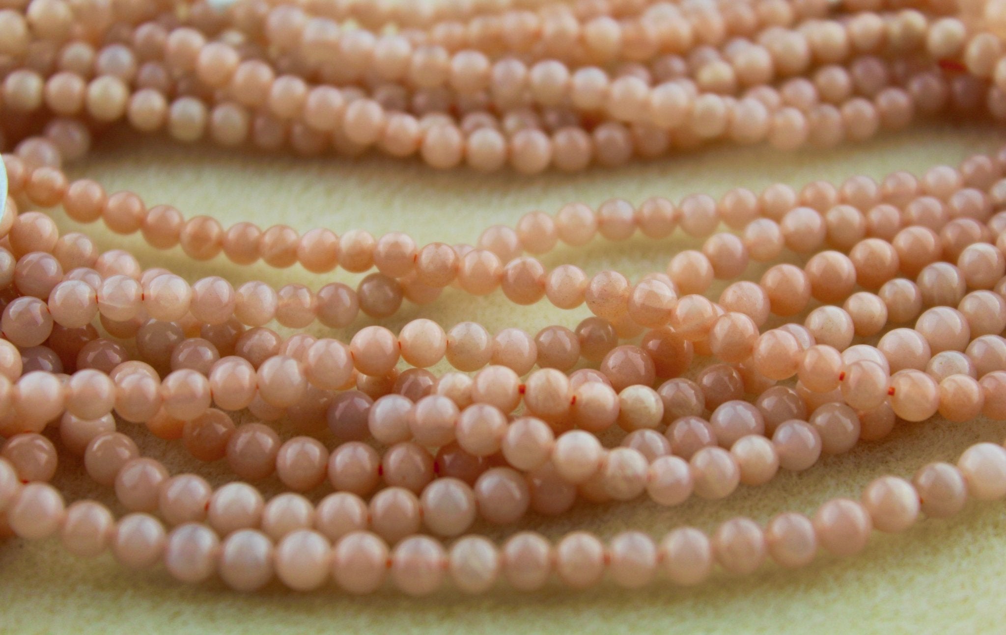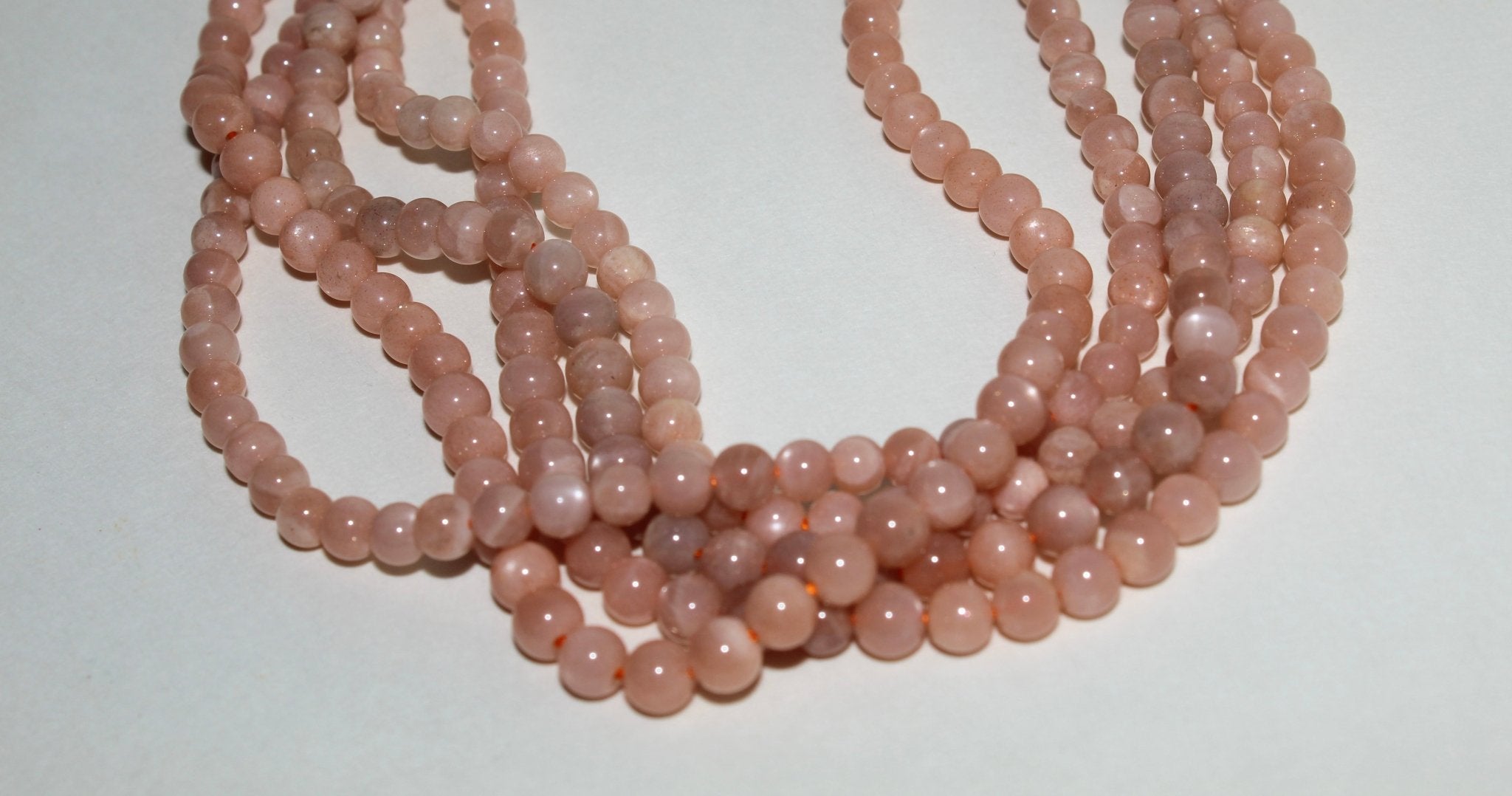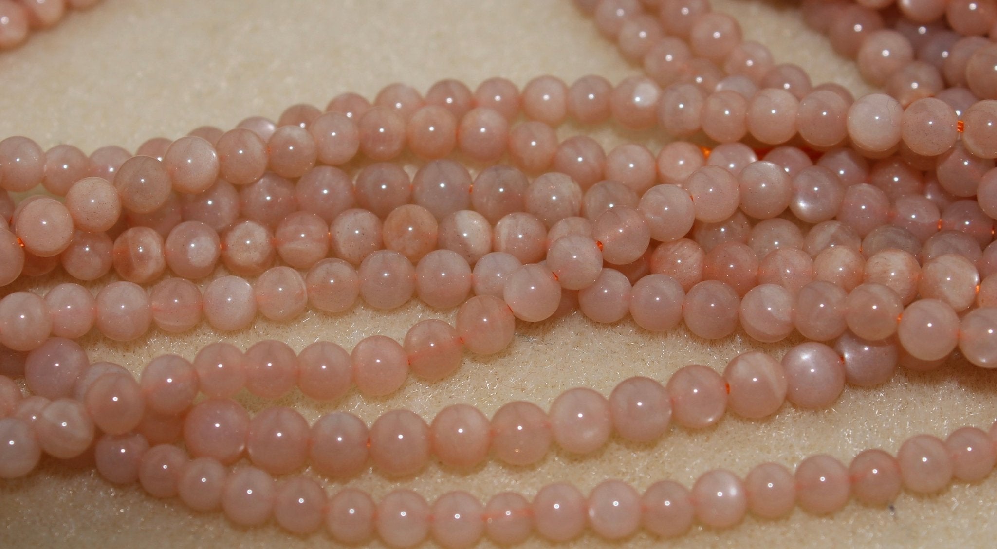 Moonstone occurs in a variety of colors, but most commonly appears as white, clear, gray and peach. It is a feldspar, and is known for its moon-like shimmer when held to the light.